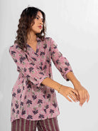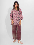Pink Texture Pure Cotton Back Pleated Co-ord Set