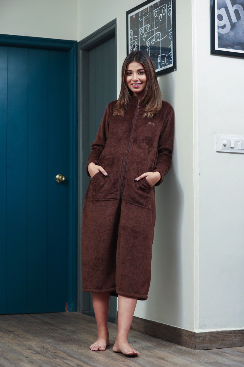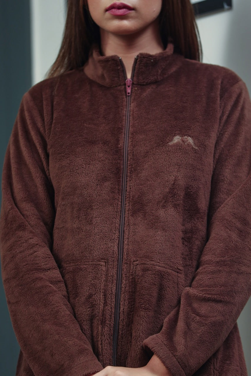 Mini Zip-Front Brown Super Soft Woollen Dress
