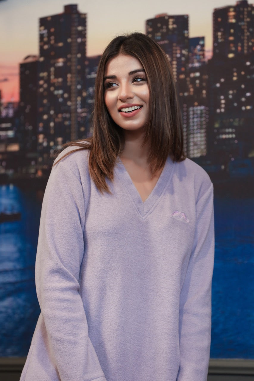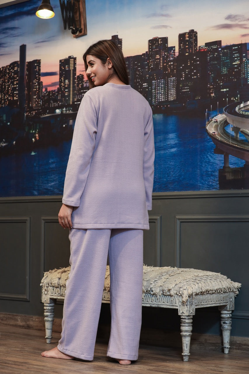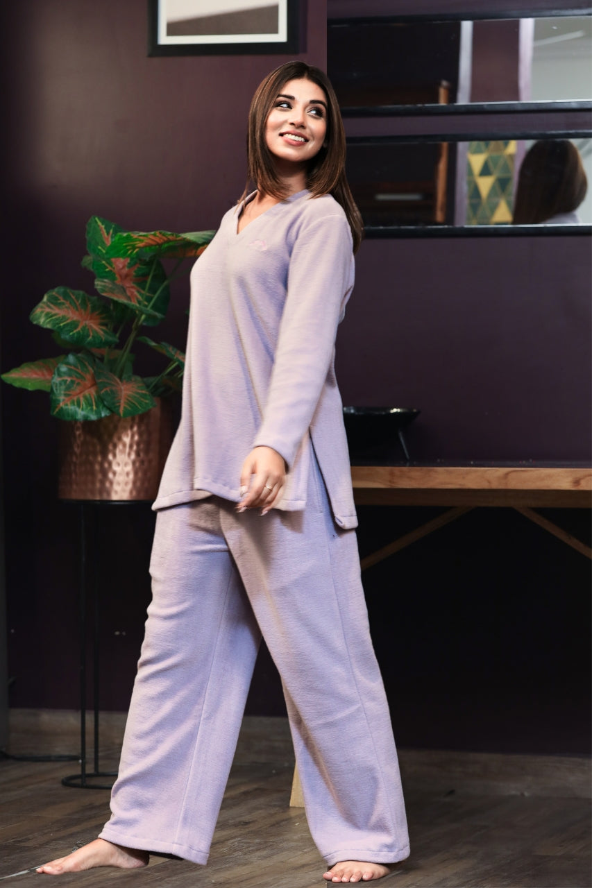 V neck Super Soft Lavender woollen Lounge Wear Set