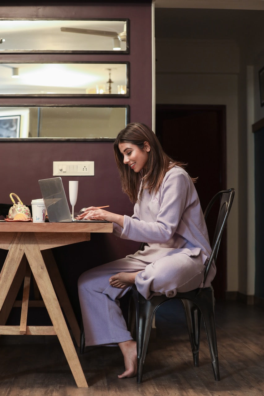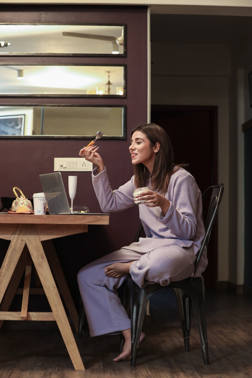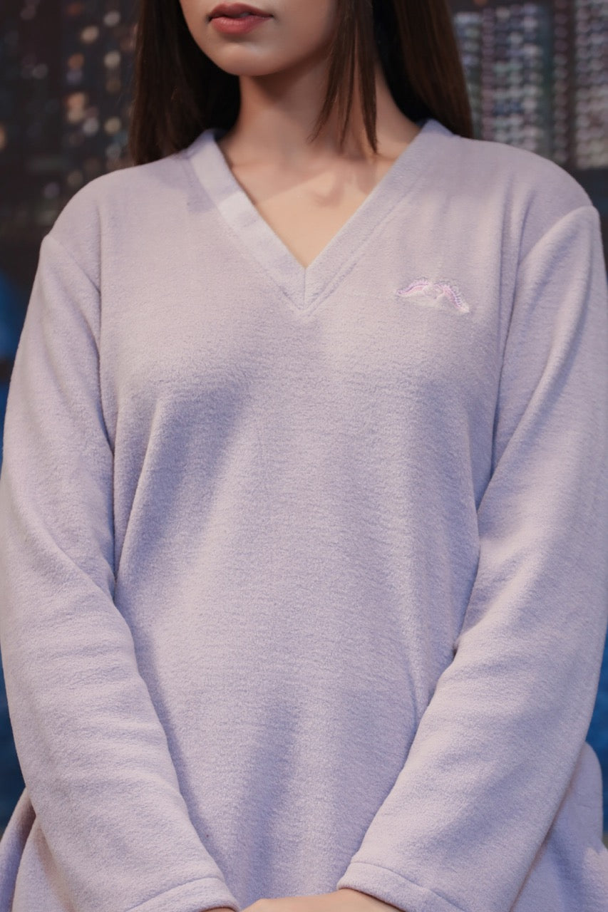 V neck Super Soft Lavender woollen Lounge Wear Set
