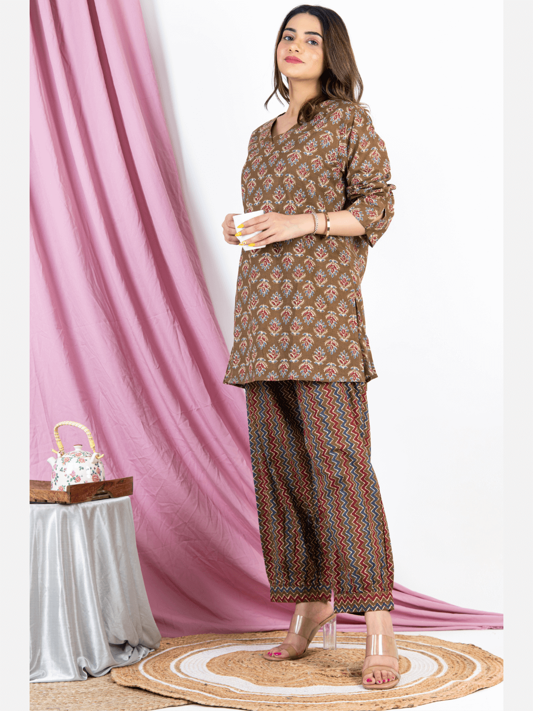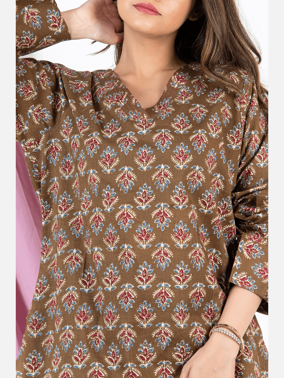 Wine Mocha Pure Cotton V-Neck Midi with Shrug