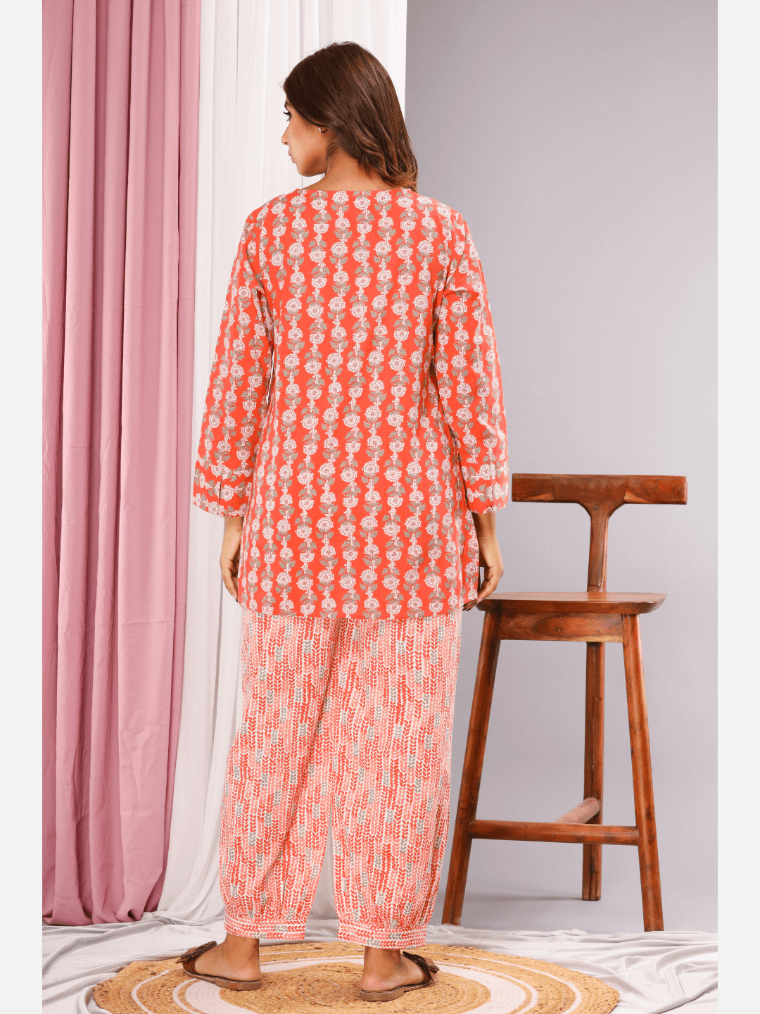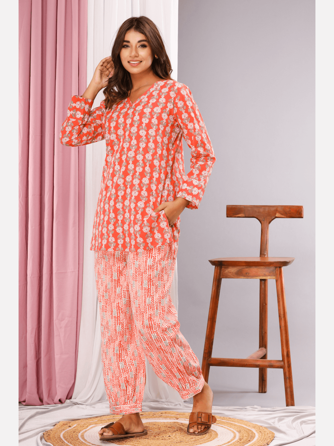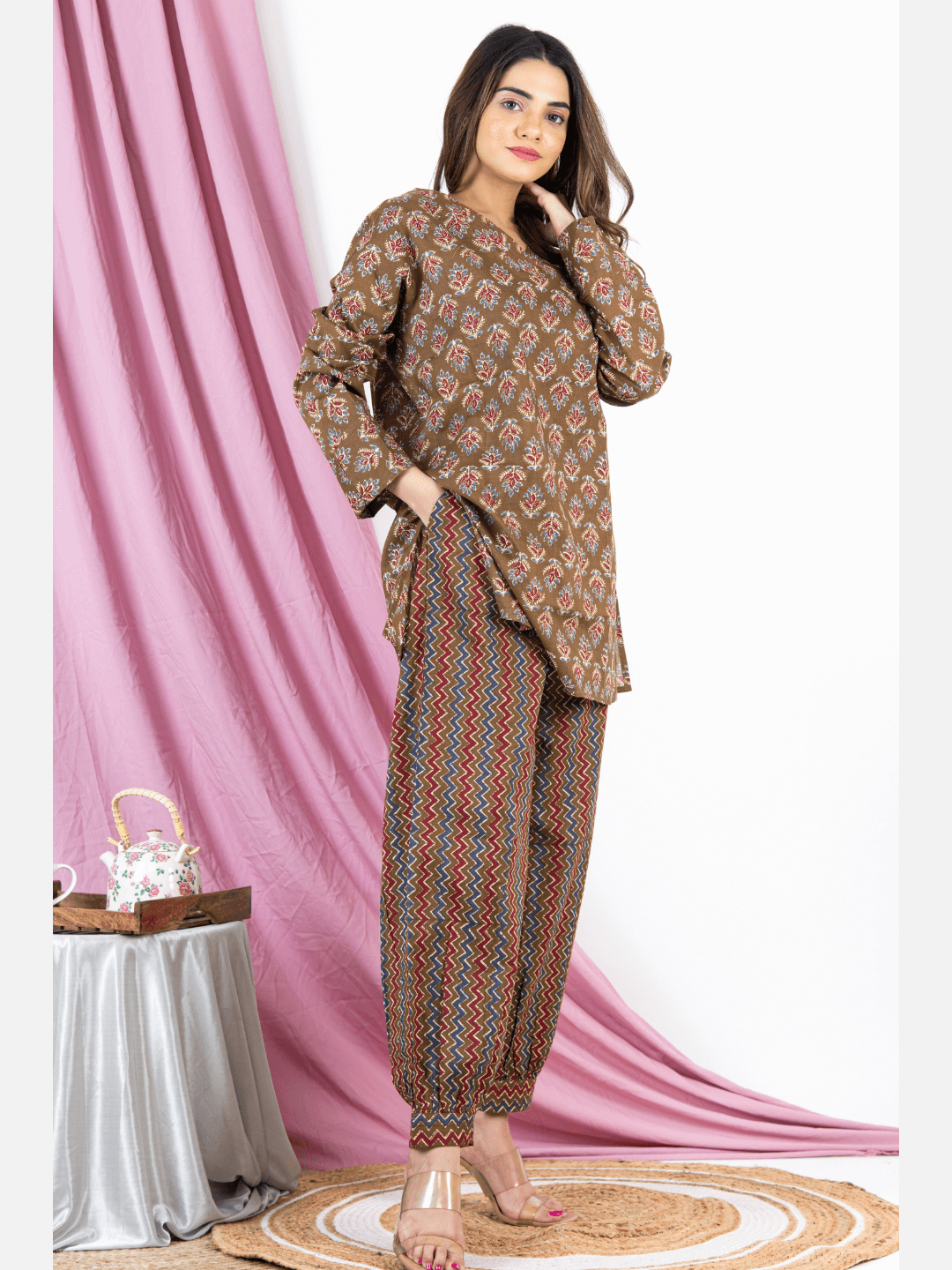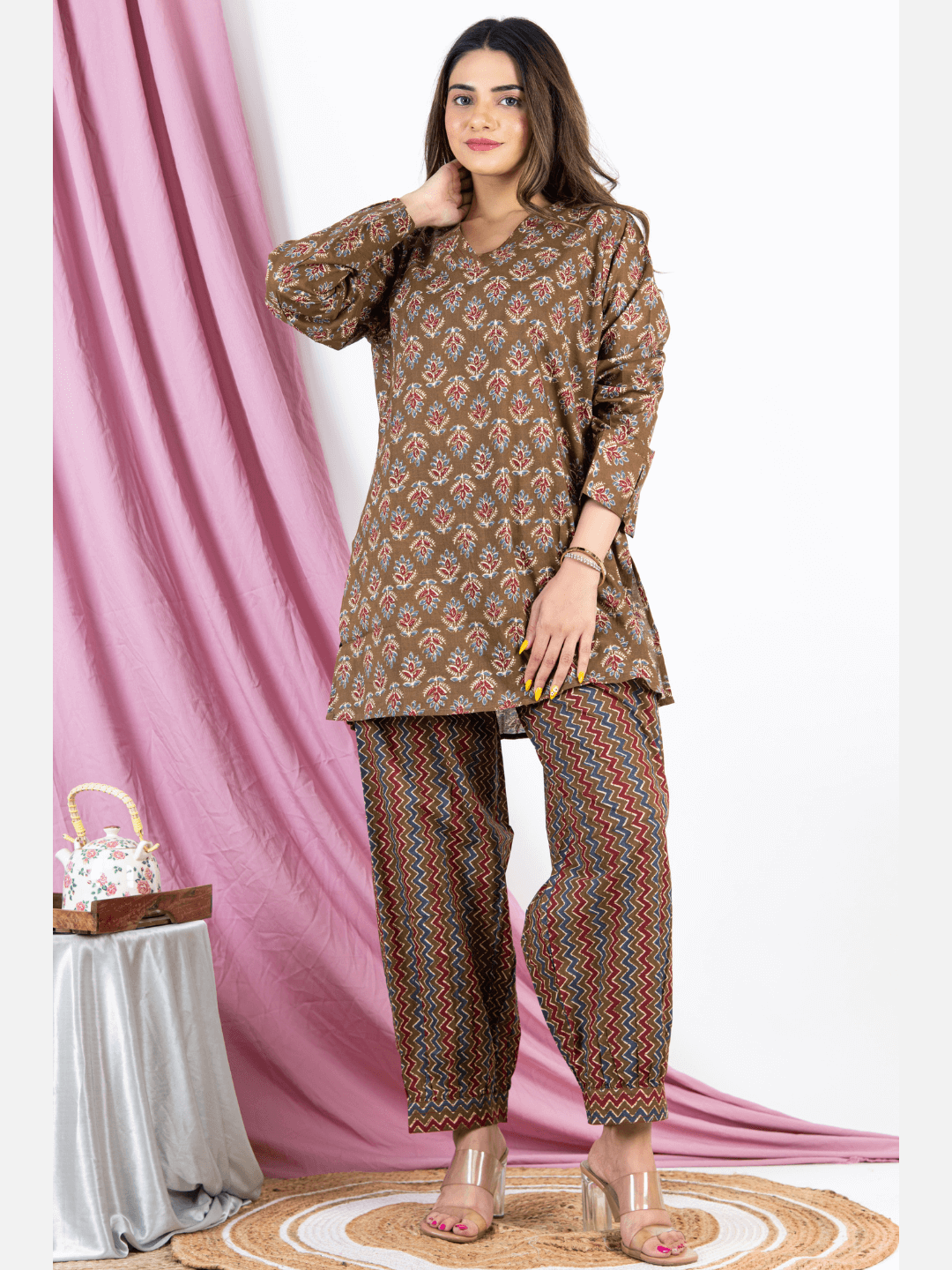 Tropical Raven's Wing Floral V-Neck Patiala Co-Ord Set