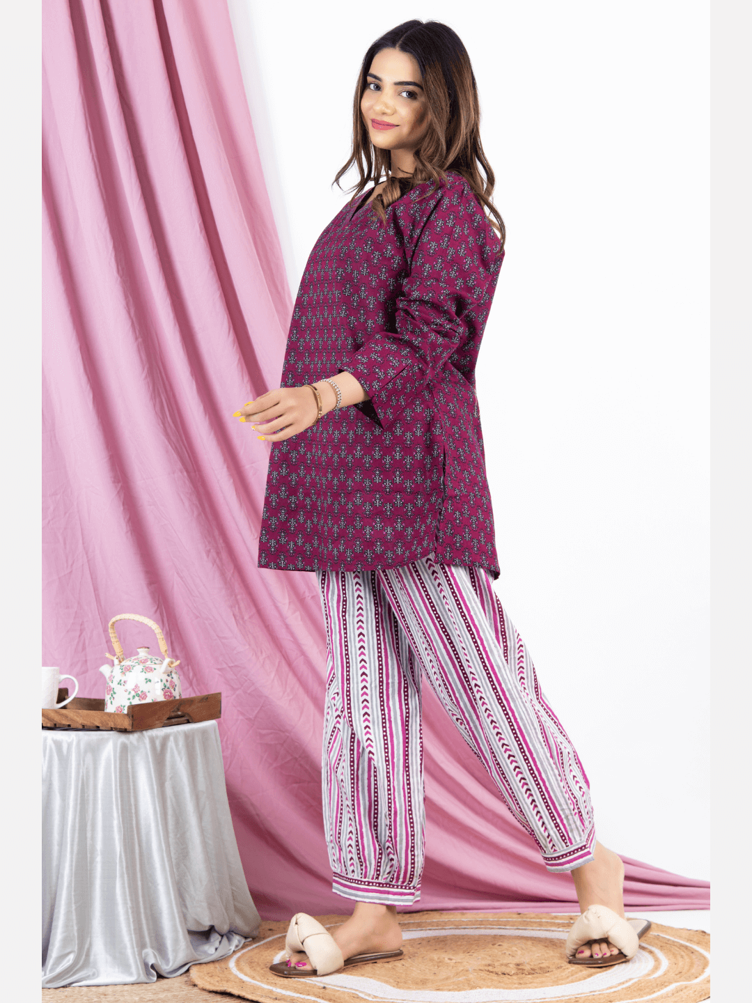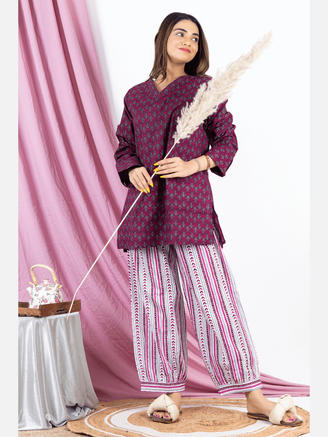 Tropical Royal Plum Short Sleeve Co-Ord Set