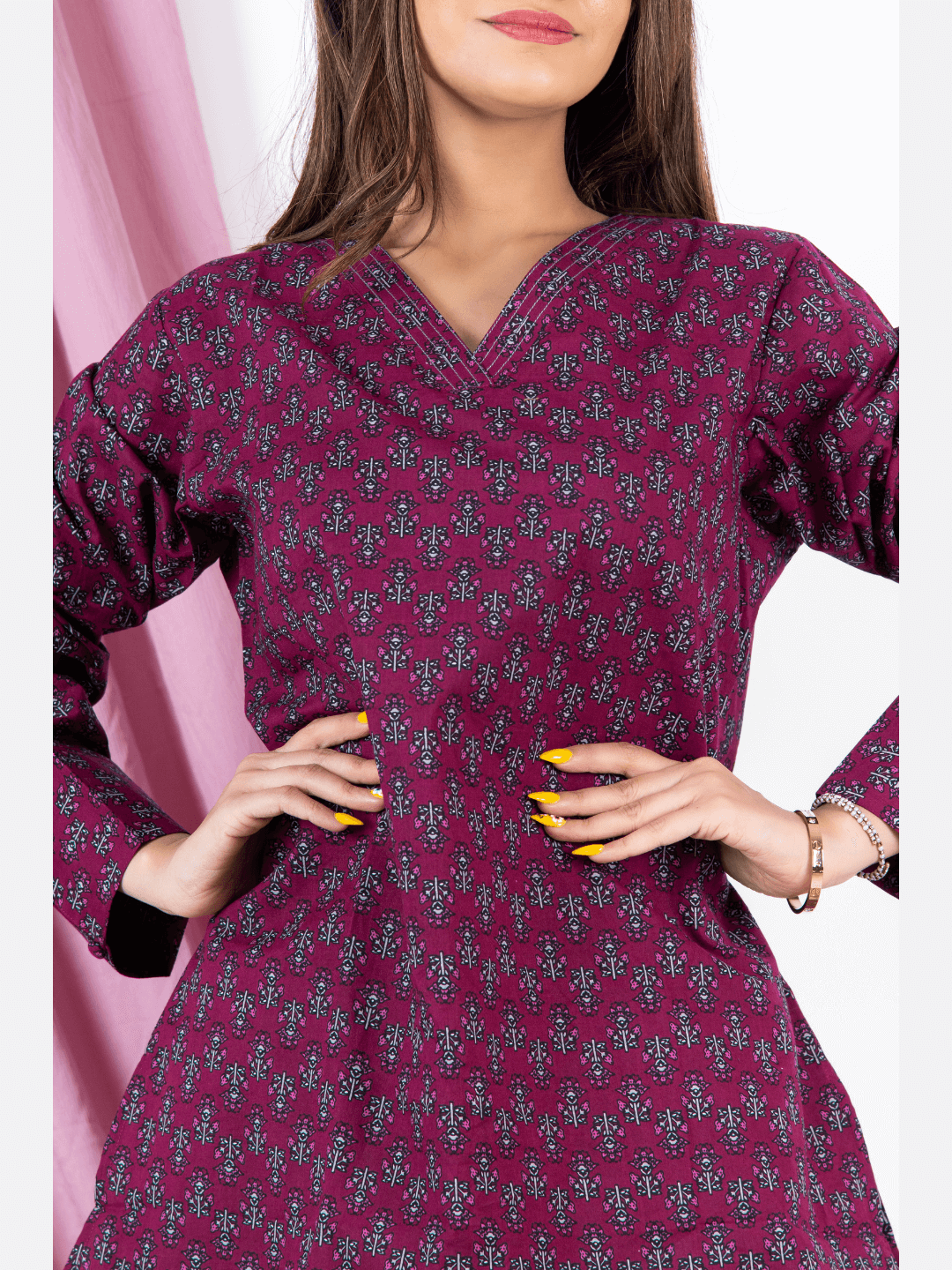 Wine Classic Pure Cotton V-Neck Night Maxi