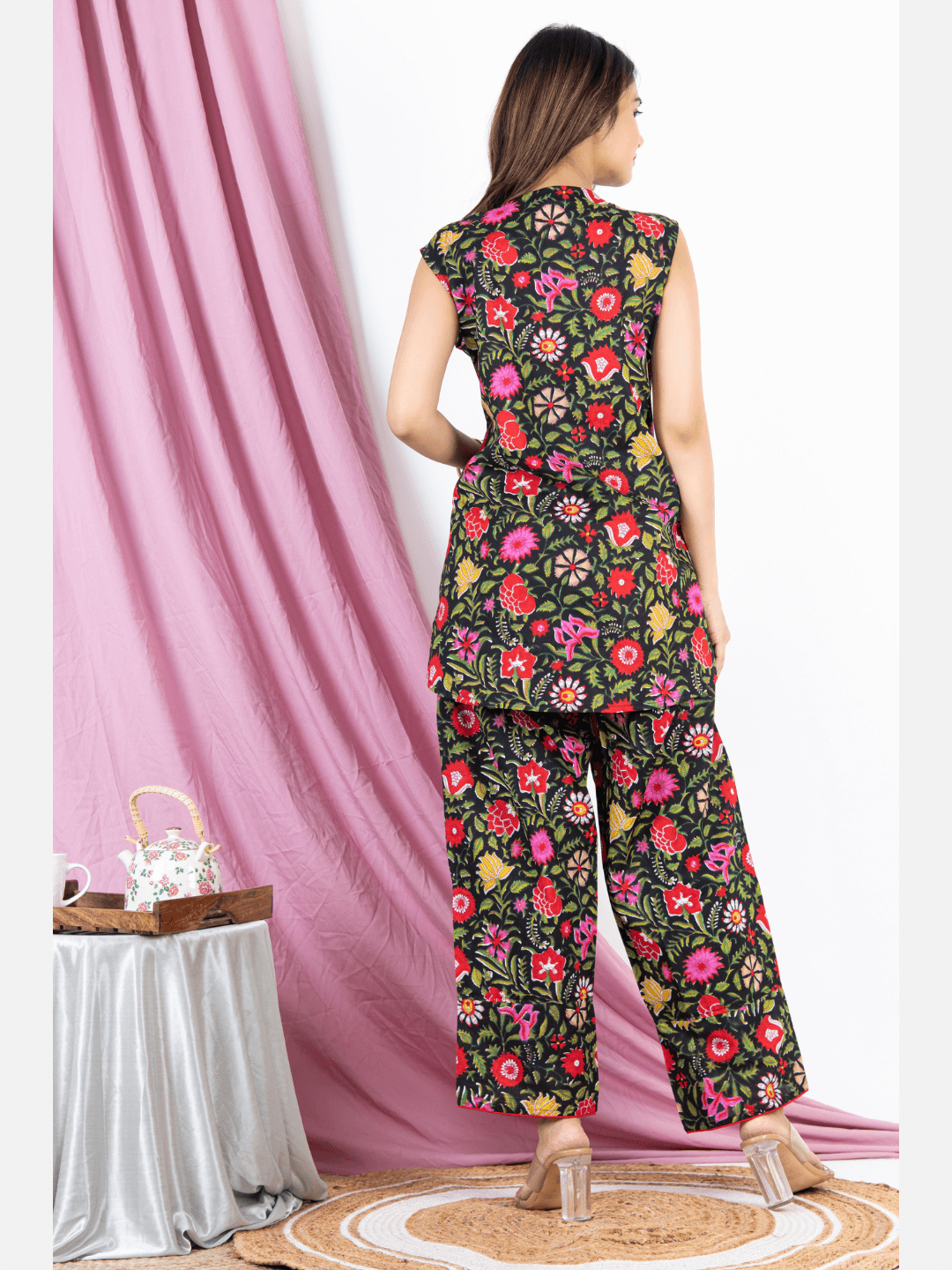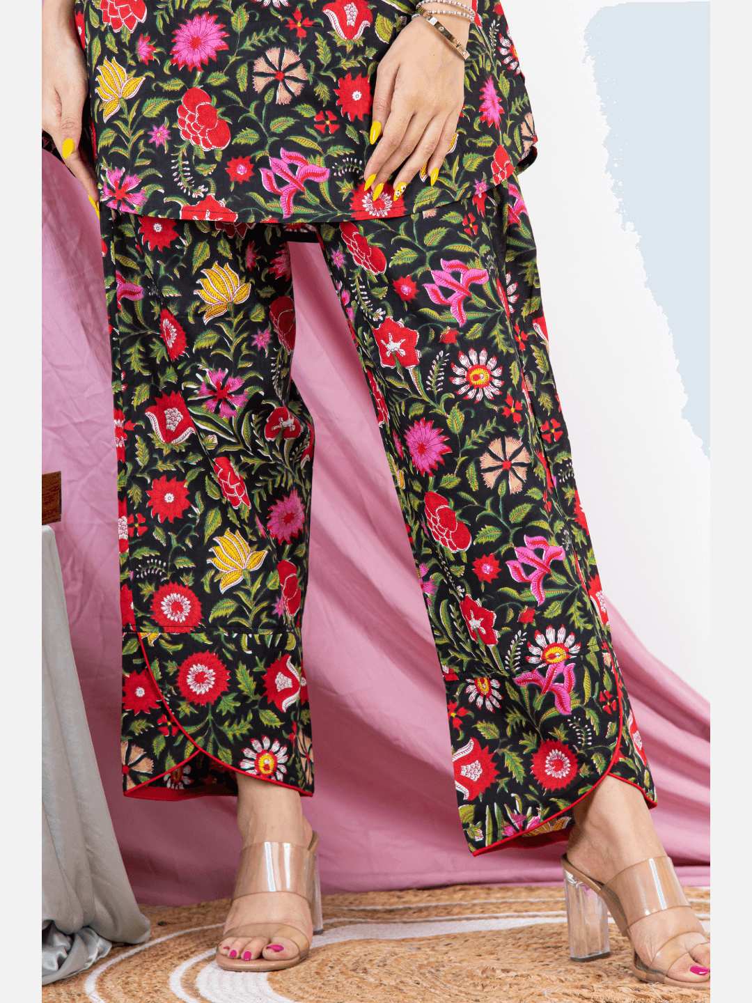 Tropical Noir Bloom Short Sleeve Co-Ord Set