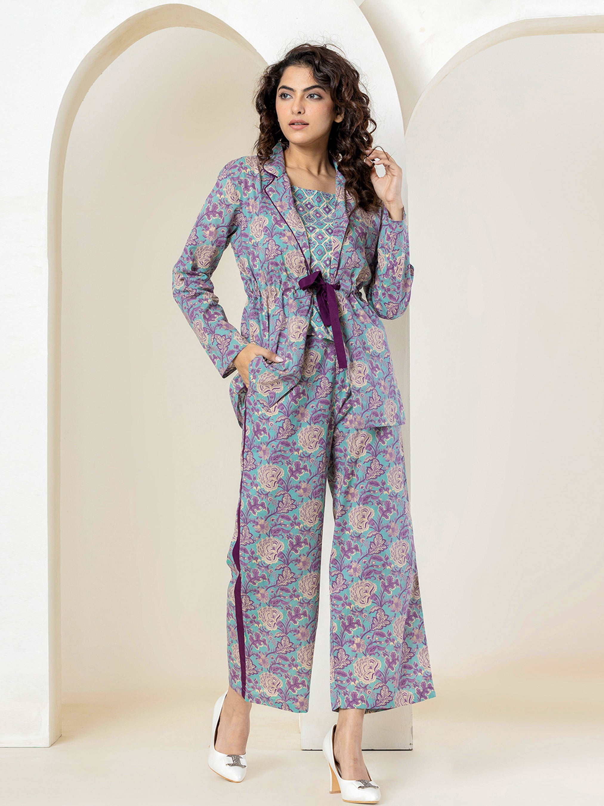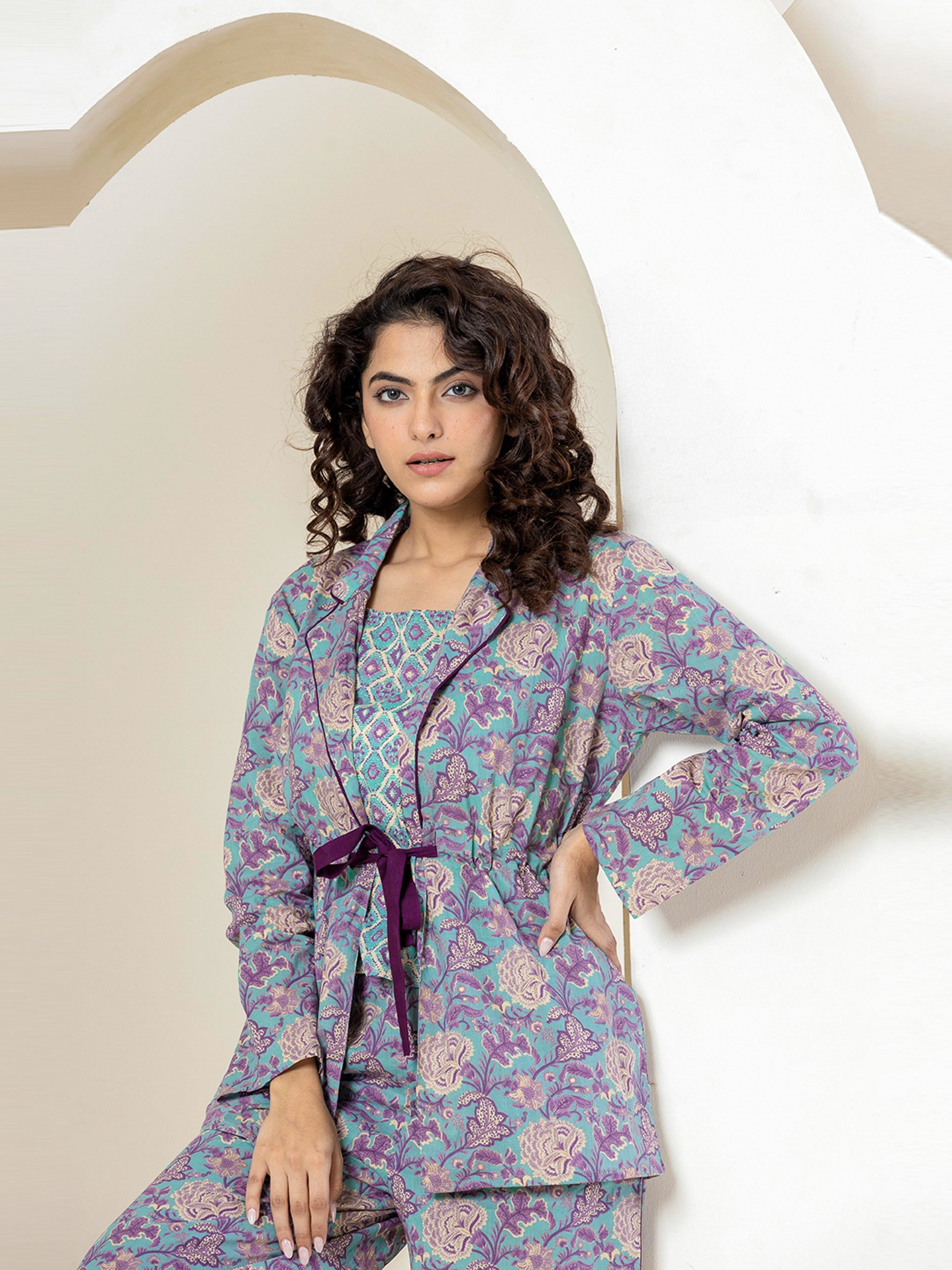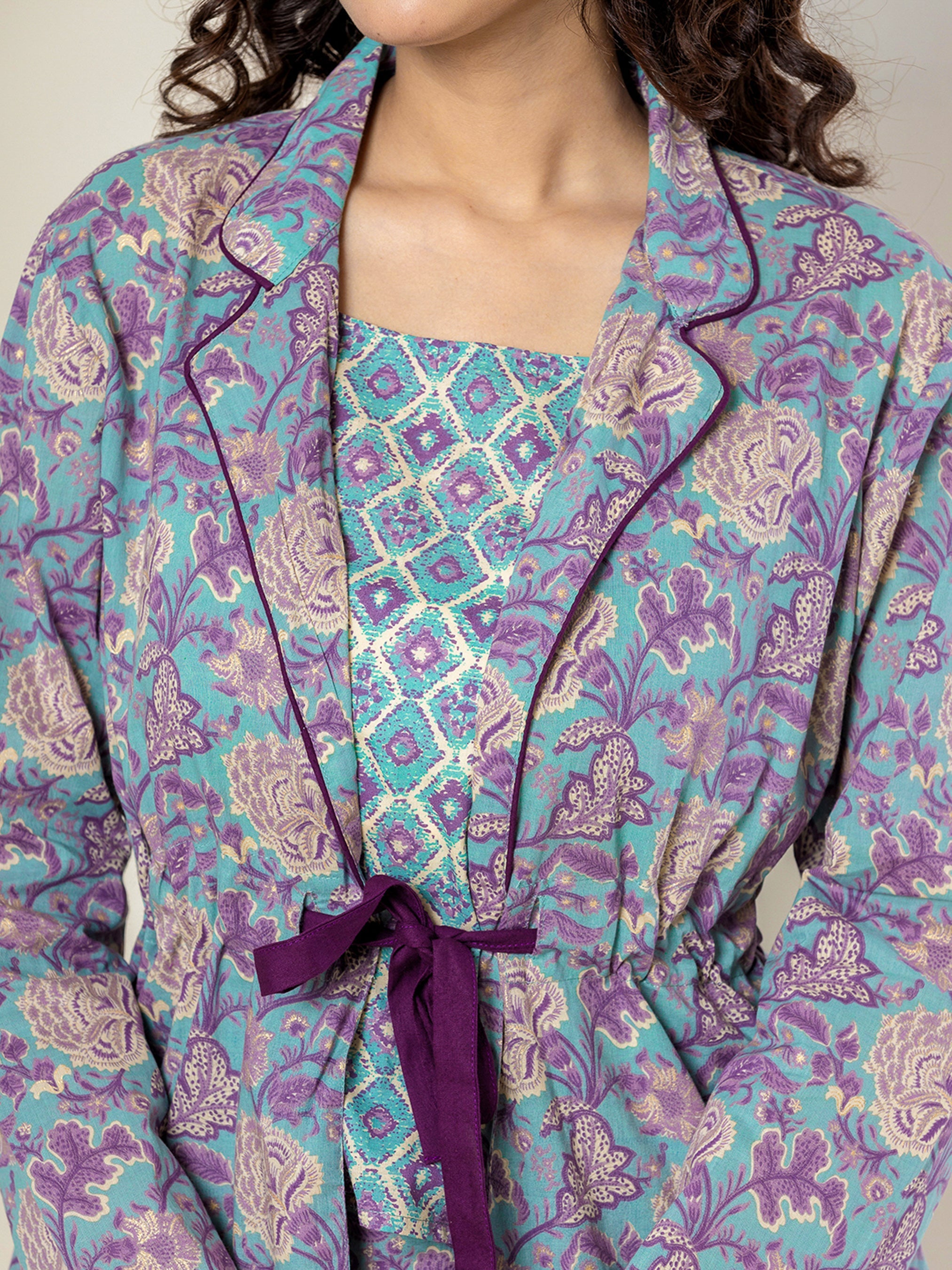 Front belt Cyan Purple Pure Cotton Jacket set of 3