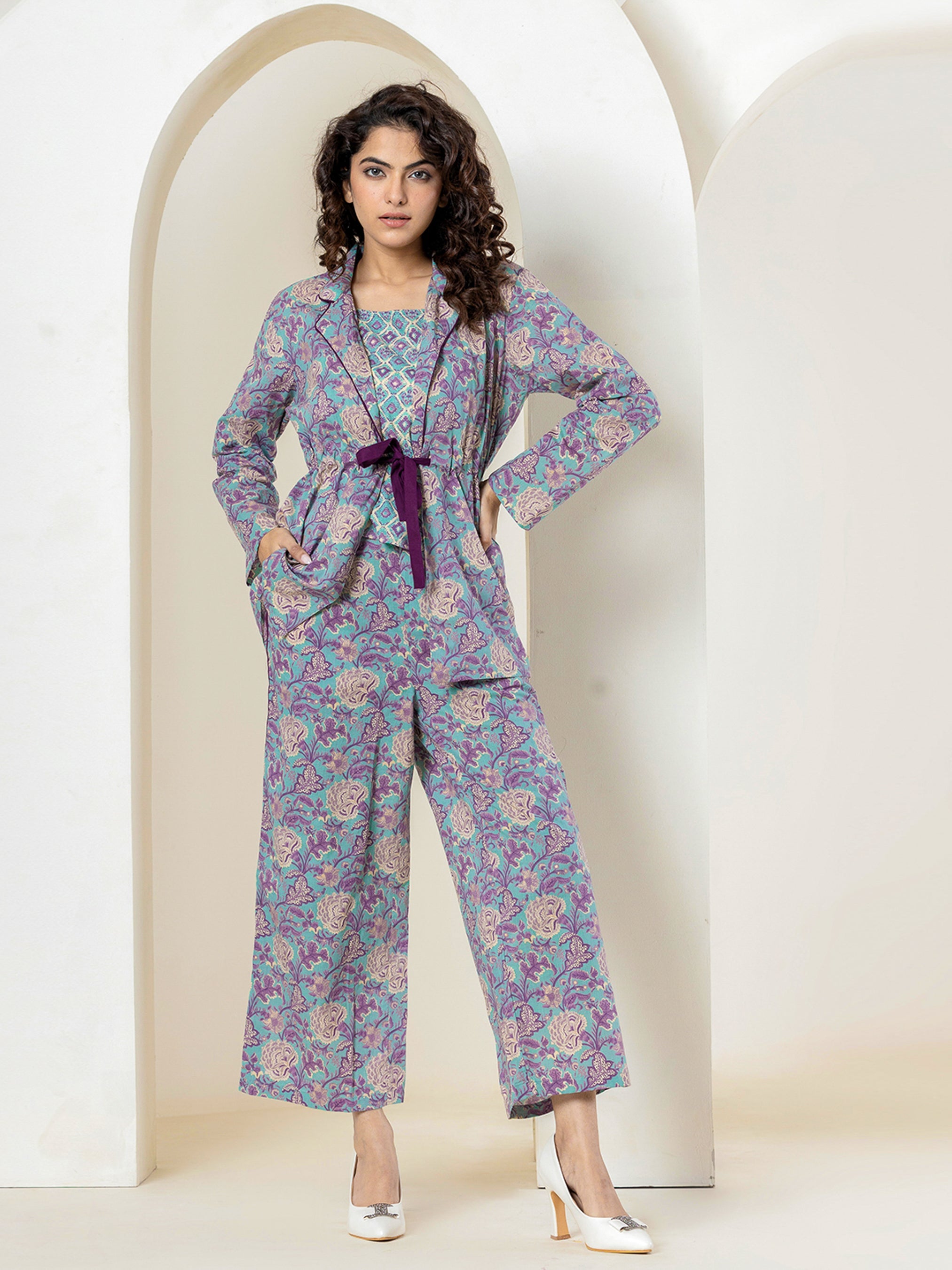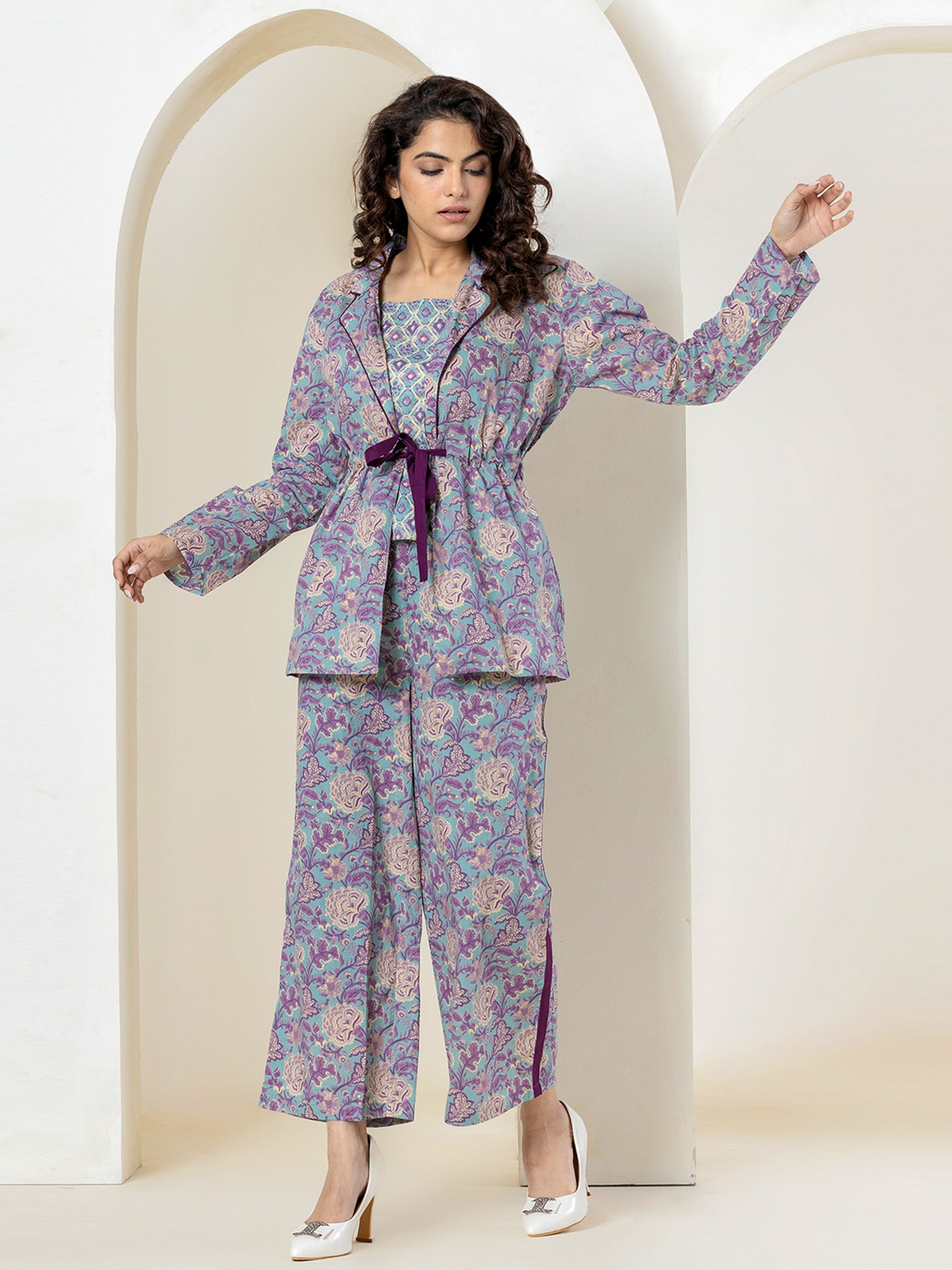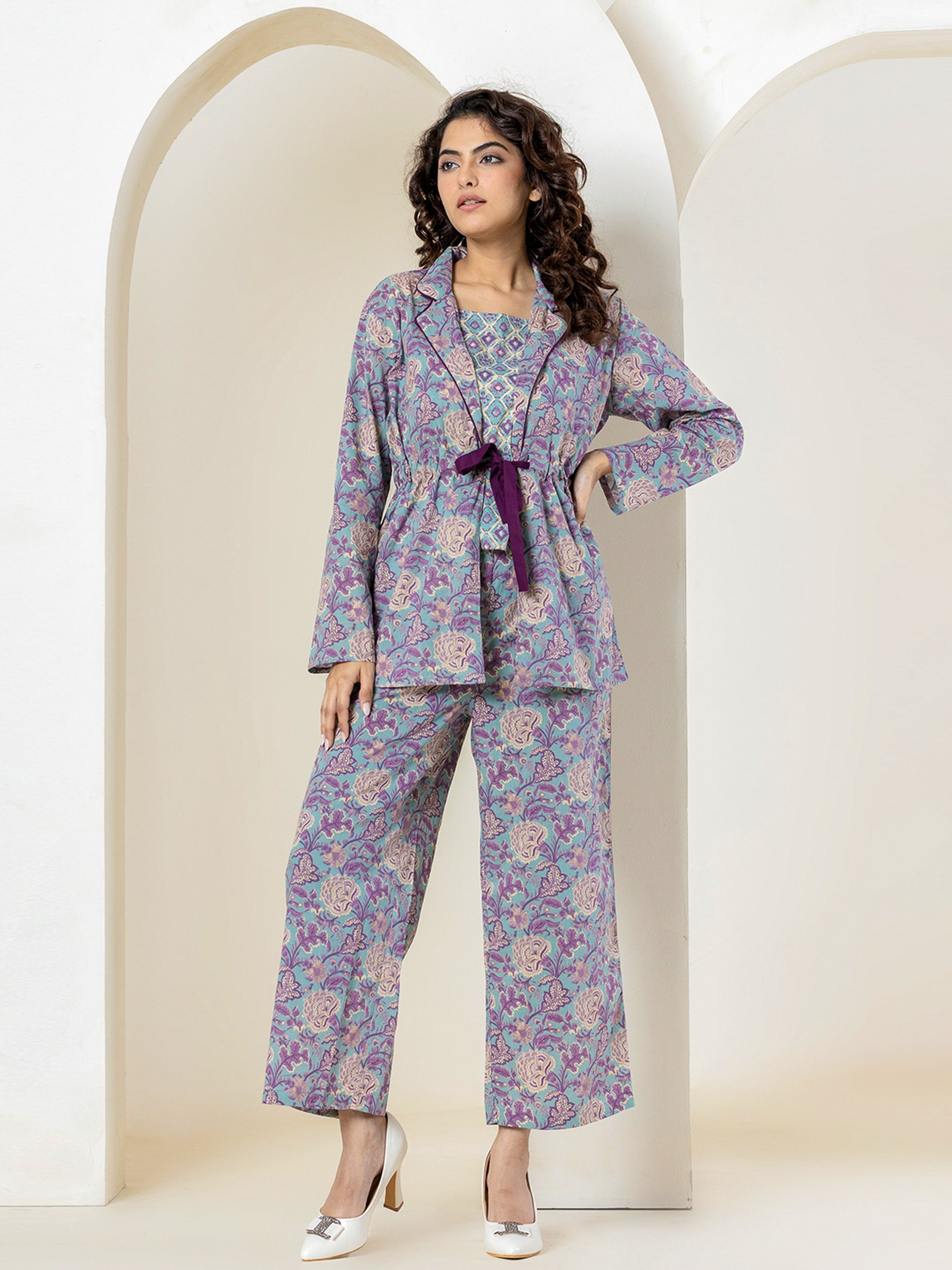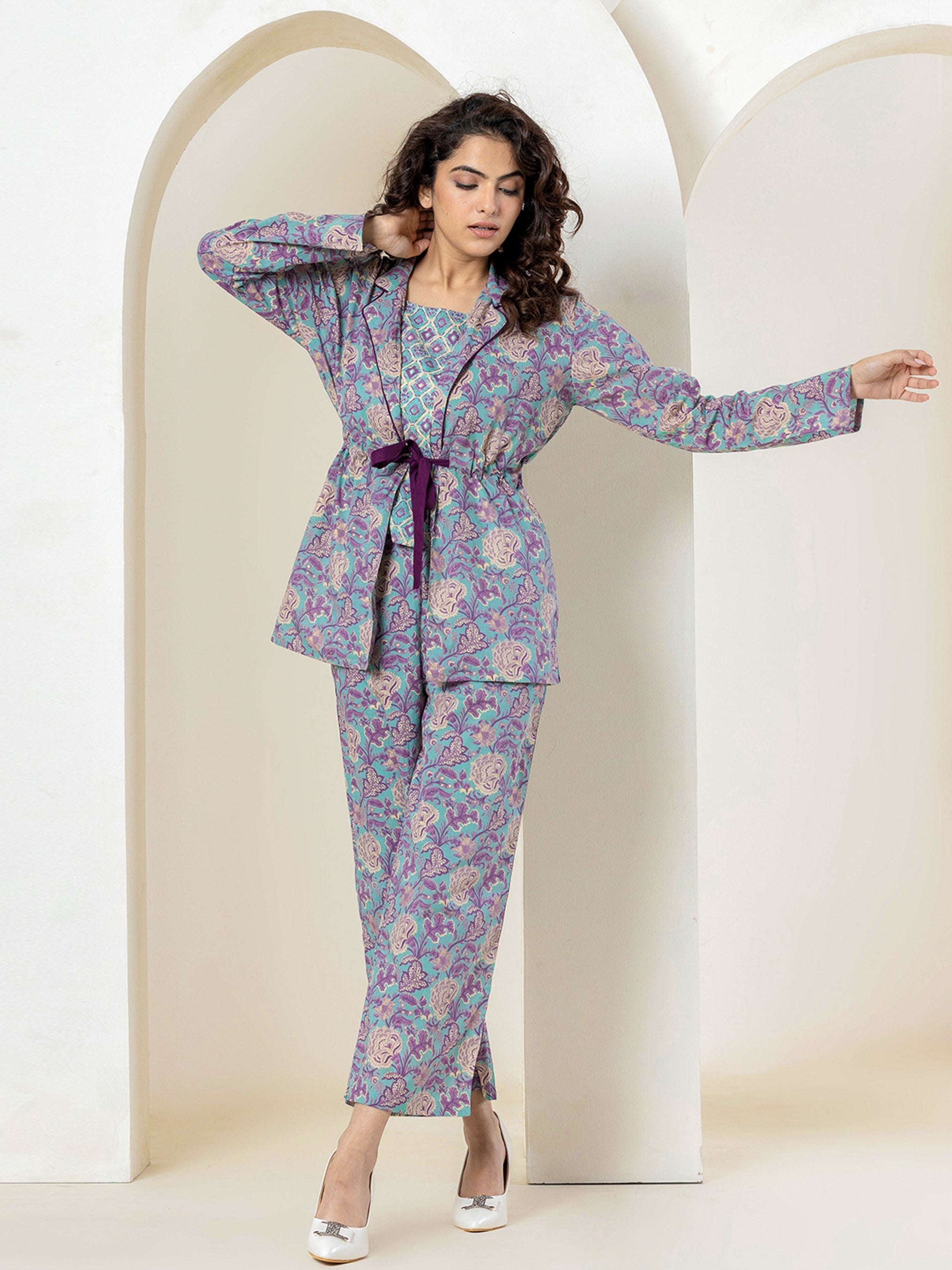 Front belt Cyan Purple Pure Cotton Jacket set of 3