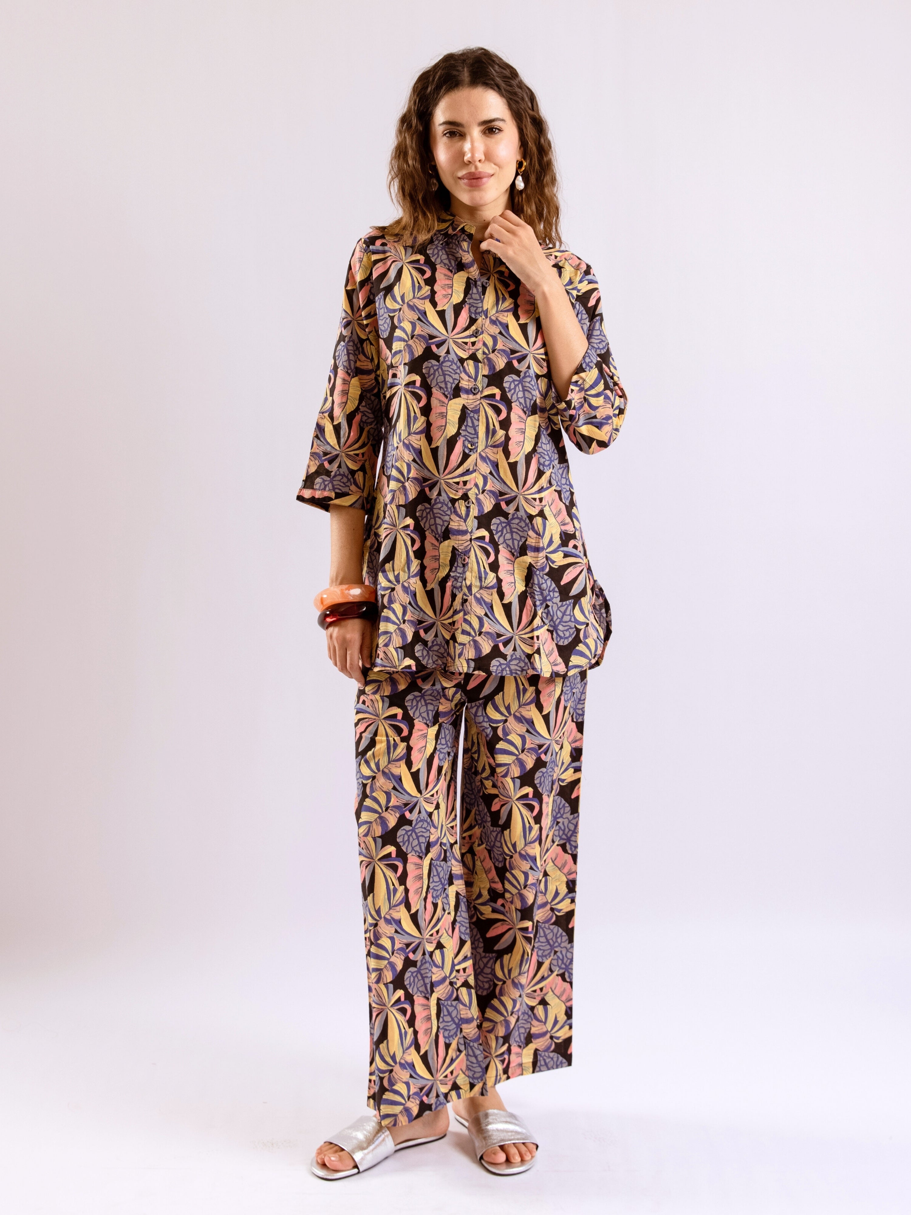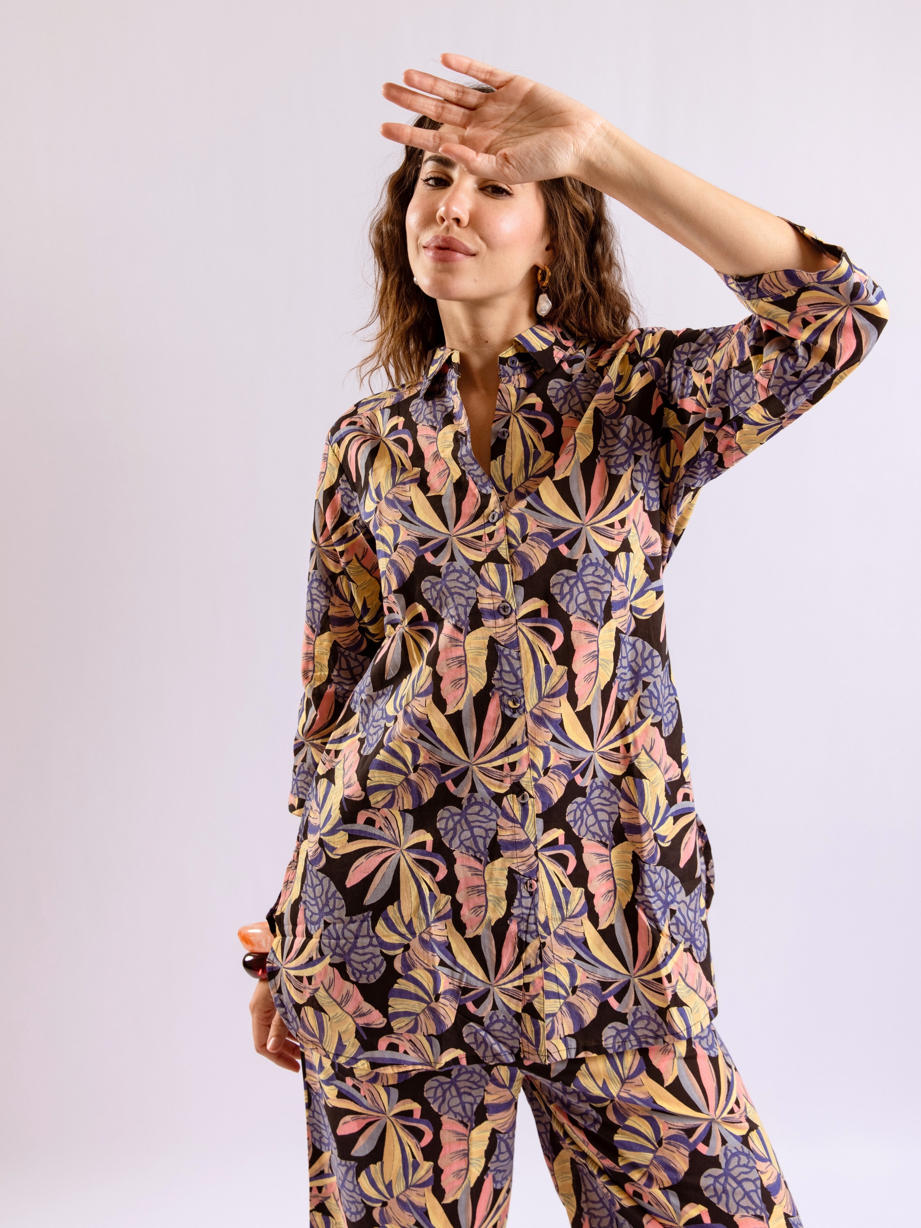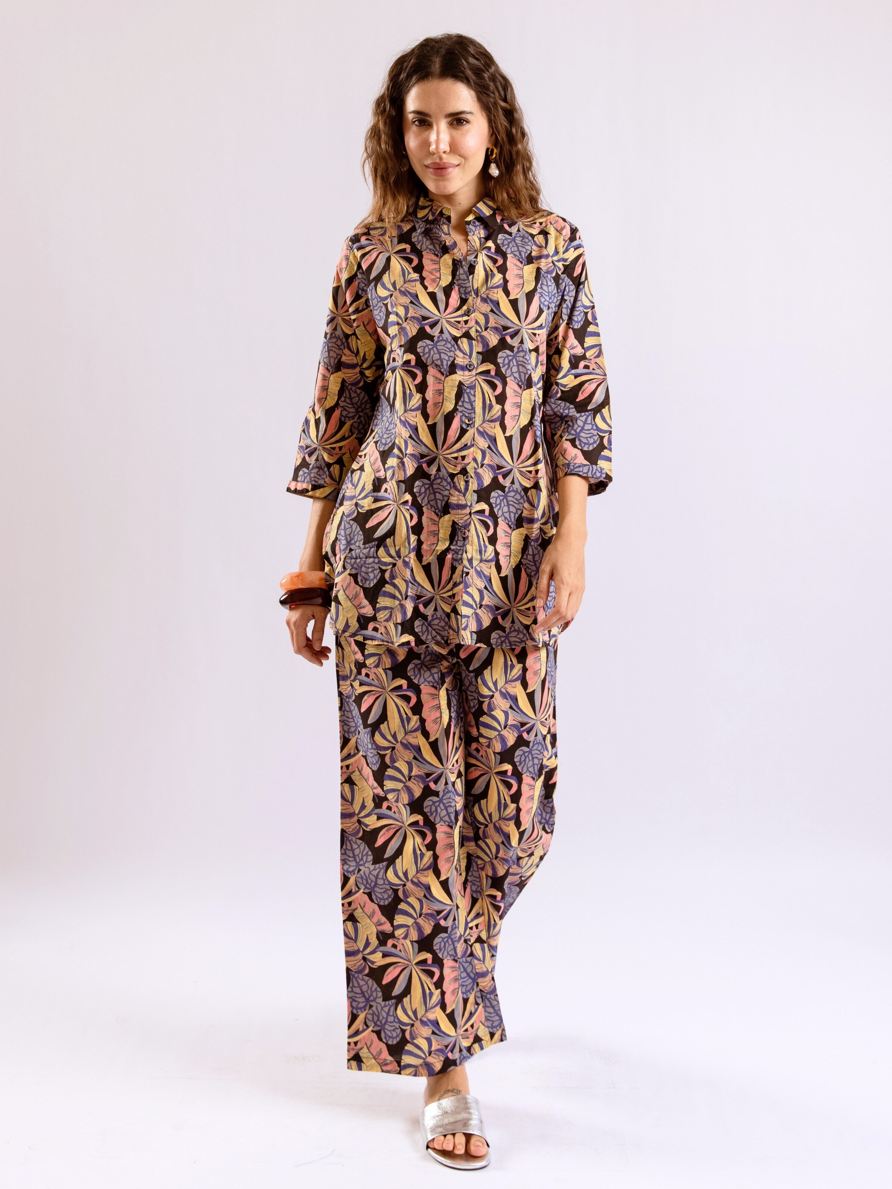 Tropical Noir Flower Collared Shirt Co-Ord Set