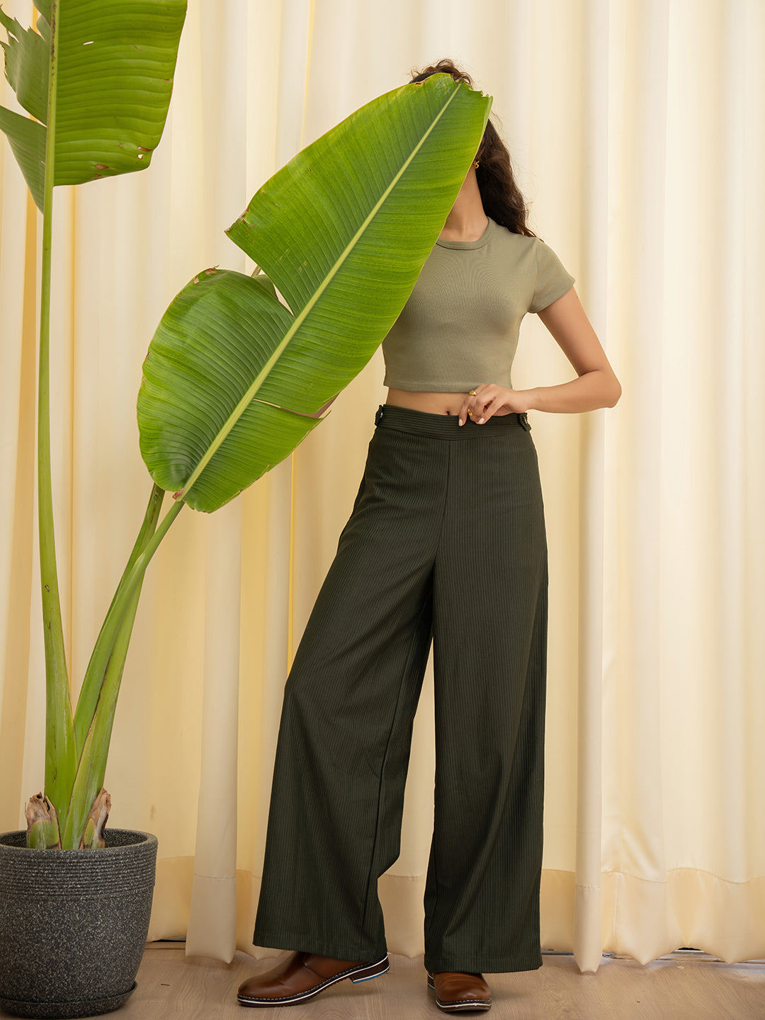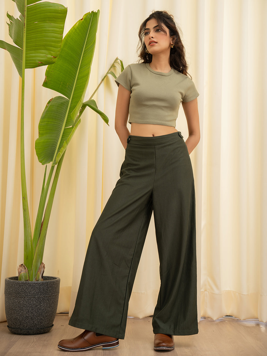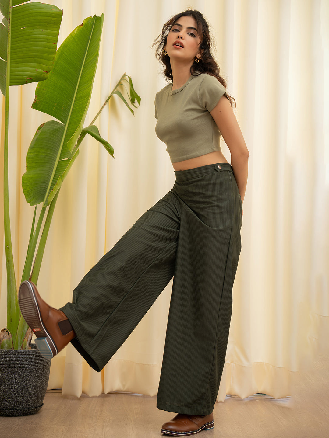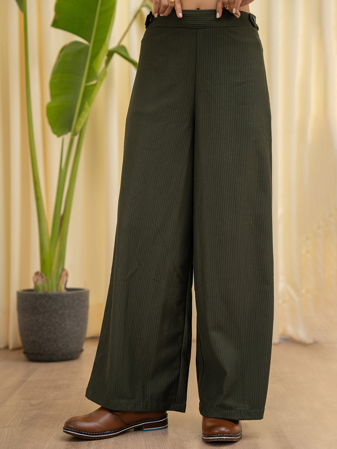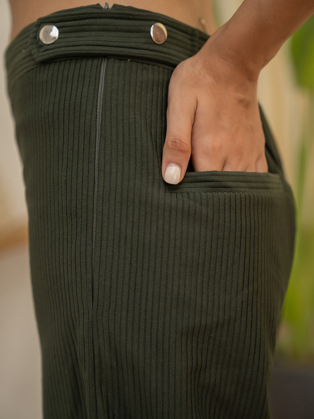 Corduroy Dark Green High Waist Pants