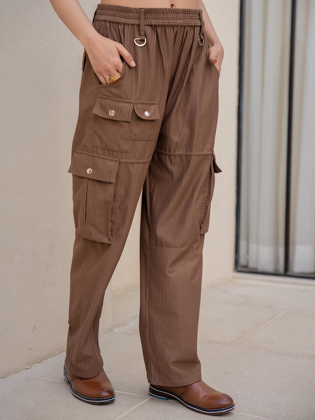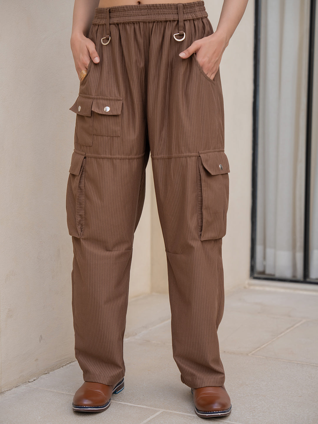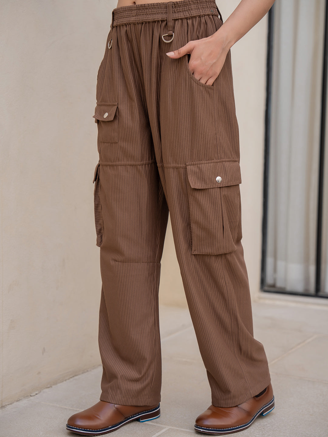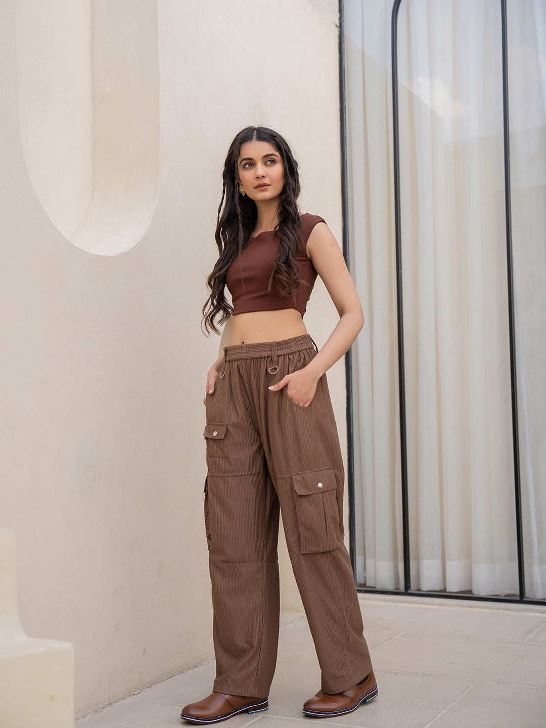 Designed keeping in mind the style quotient of the generation, are these Corduroy utility cargo jeans. They are crafted in a breathable cargo-style frame and patch pockets for a contemporary twist. Look chic with a crop top and chunky sneakers.