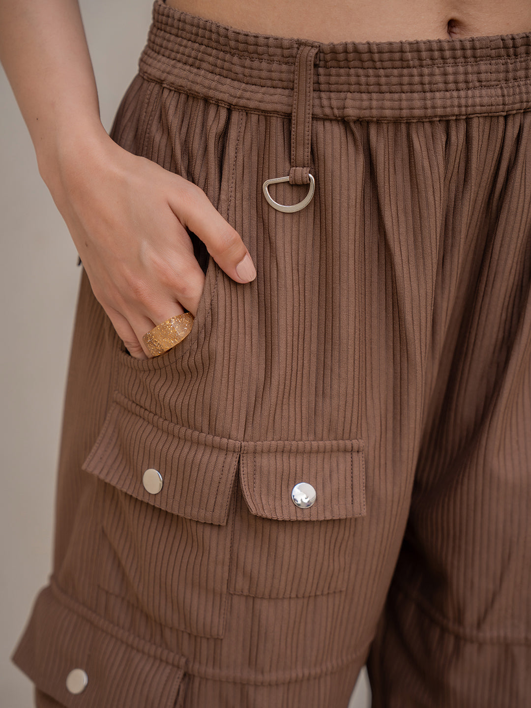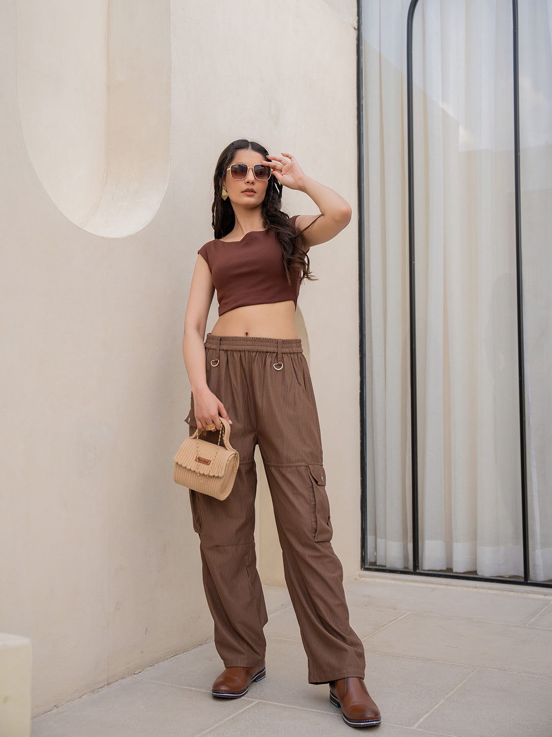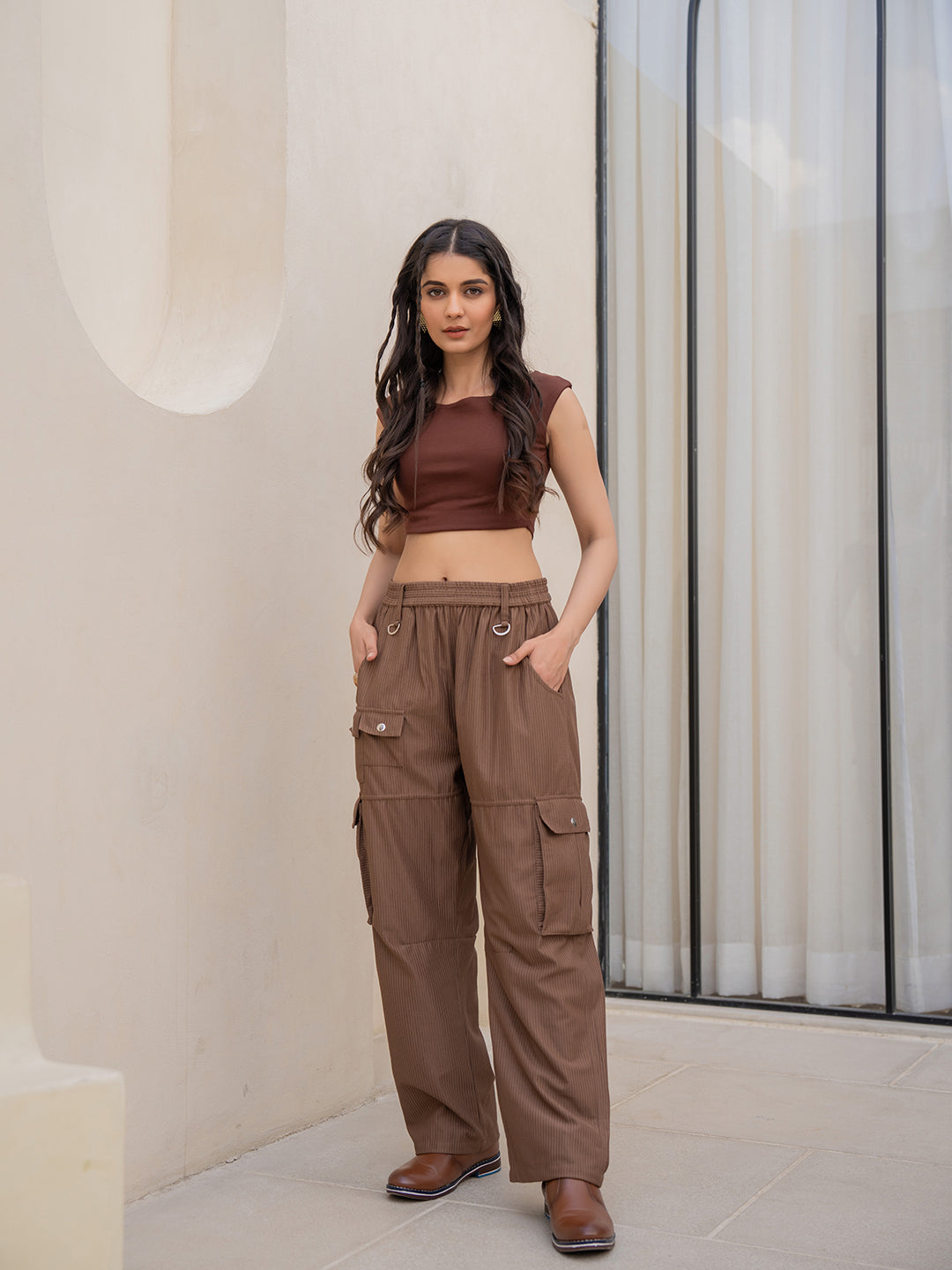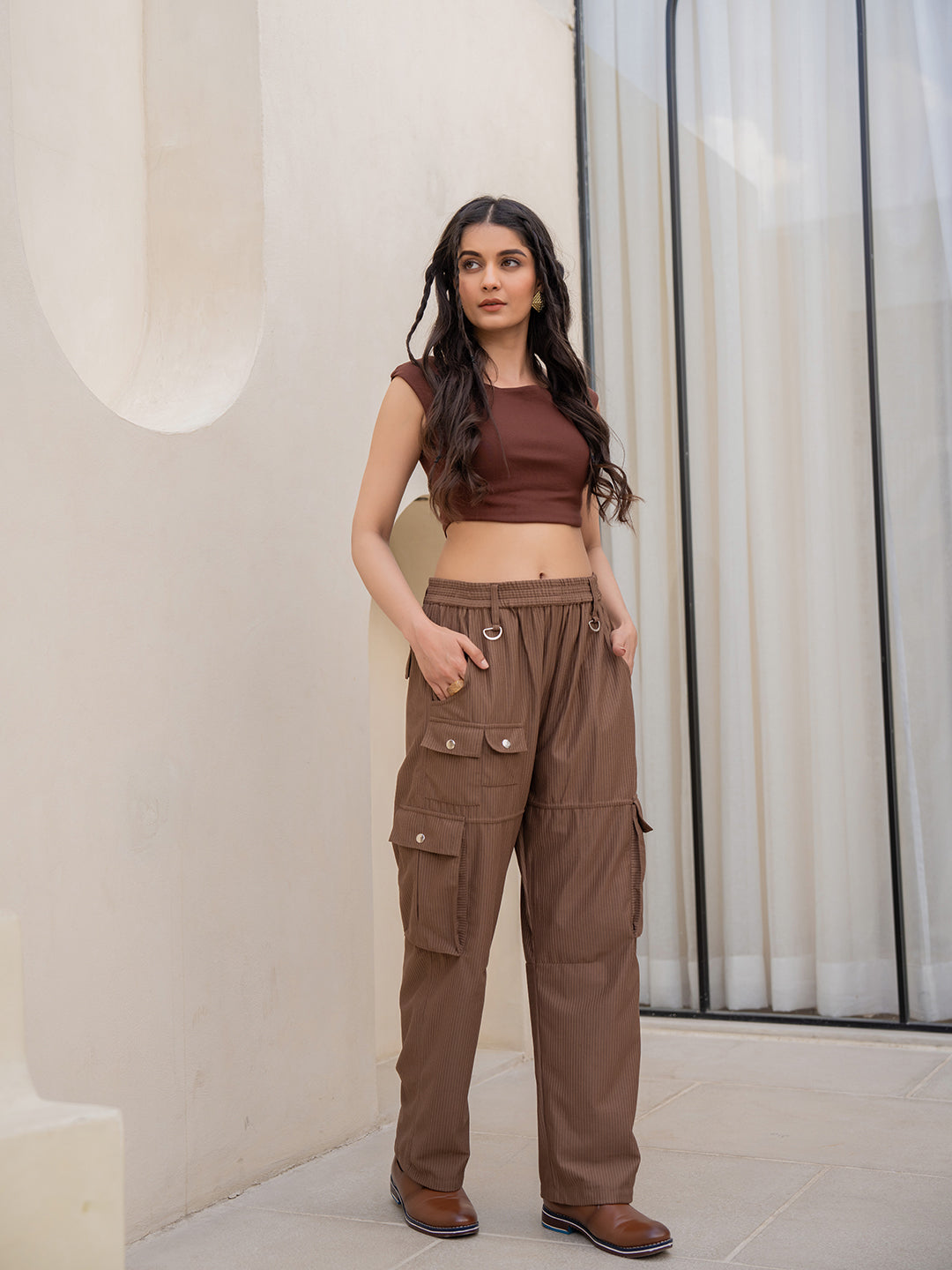 Designed keeping in mind the style quotient of the generation, are these Corduroy utility cargo jeans. They are crafted in a breathable cargo-style frame and patch pockets for a contemporary twist. Look chic with a crop top and chunky sneakers.