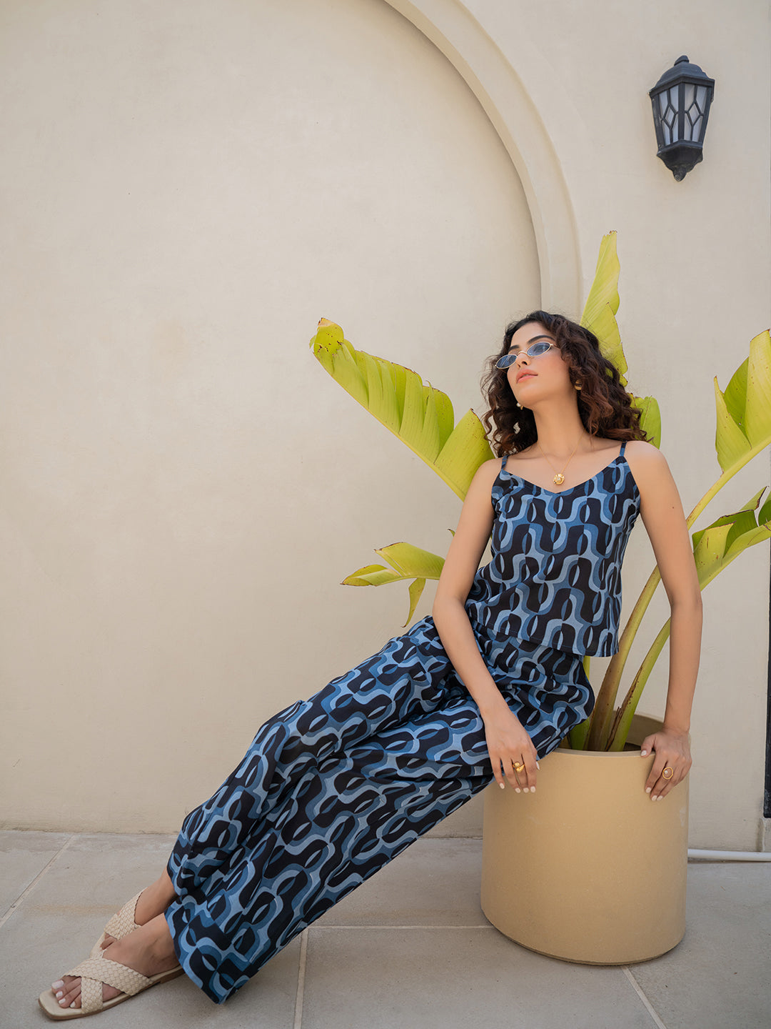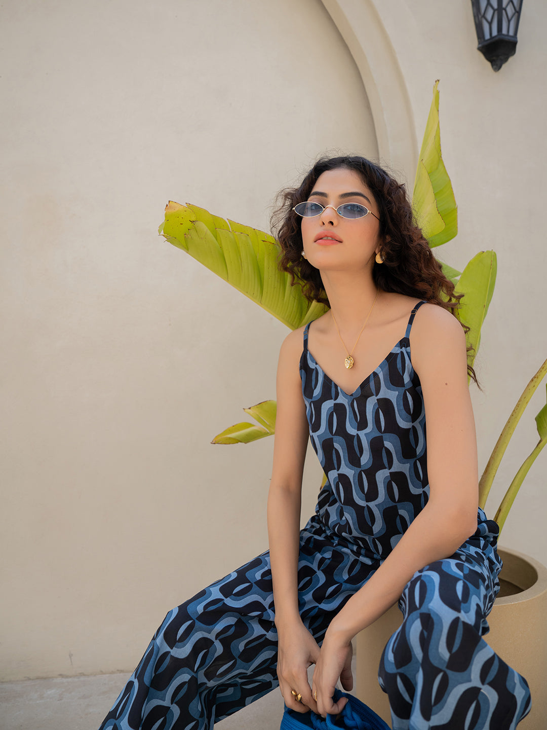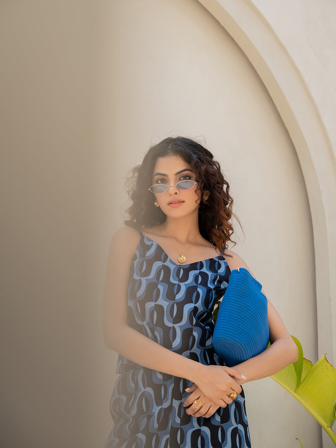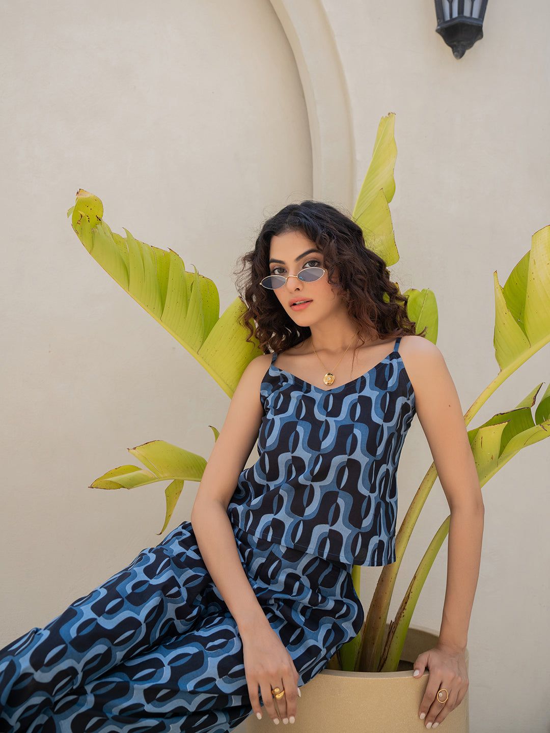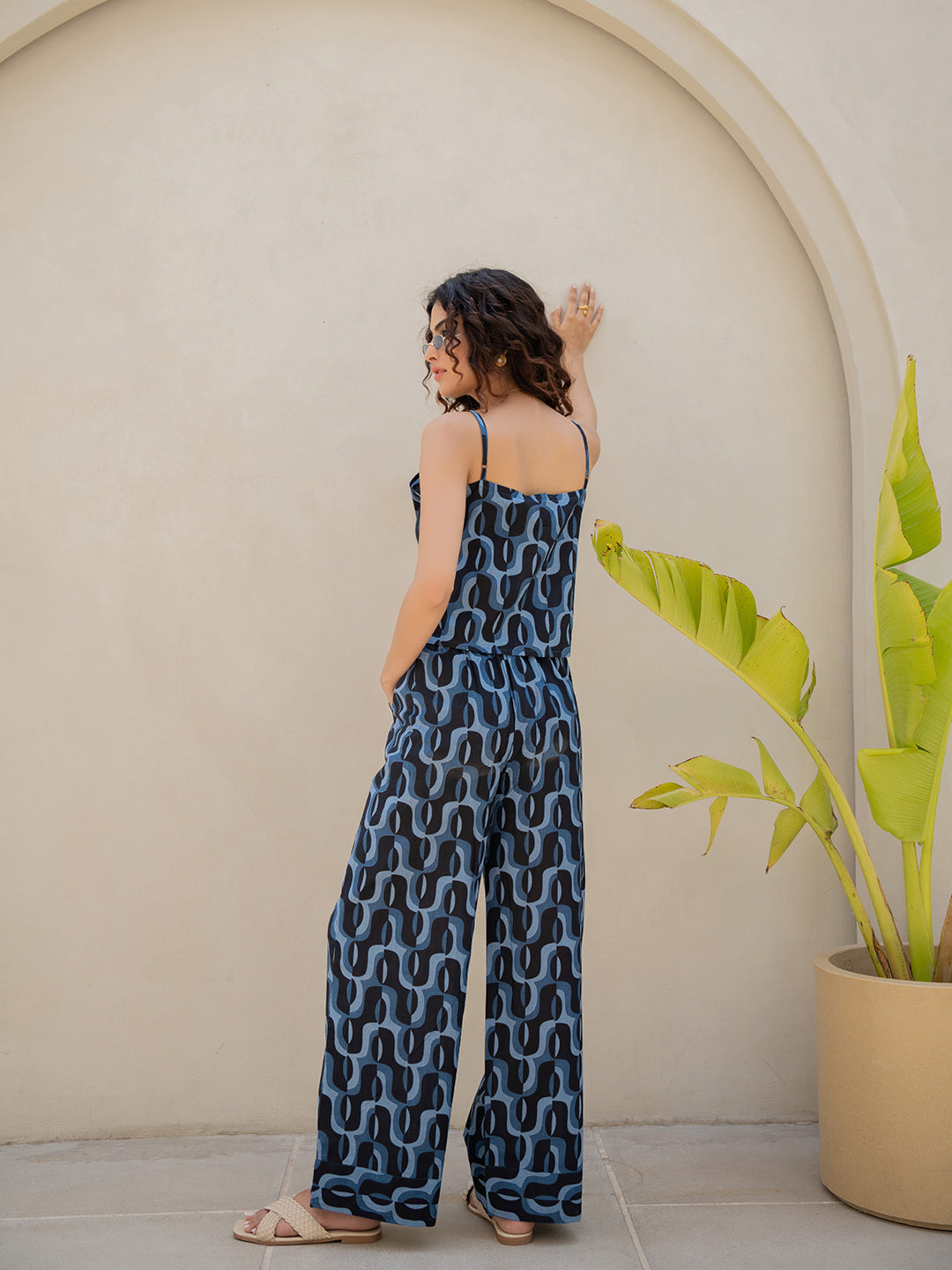 Abstract Navy Nirvana Blue Spaghetti Top