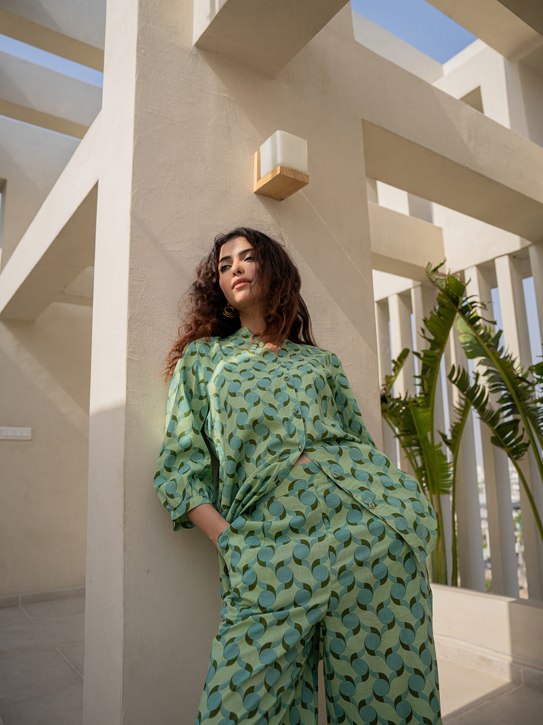 An ideal choice for your loungewear wardrobe, the Cotton Set comes in a soothing color palette. The hand block-printed pattern of the breezy Cotton top complements the matching Pants perfectly.