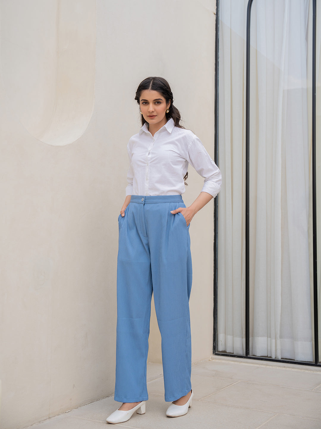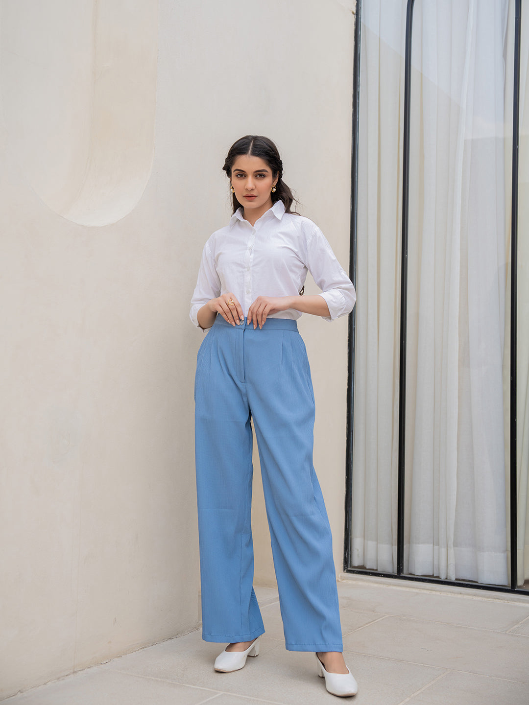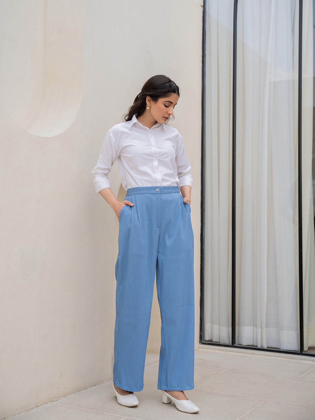 Experience the perfect blend of elegance and comfort with our front Pleated Formal Trousers. Designed for the modern fashionista, these trousers feature a timeless pleated front for a classic touch of elegance. This color adds a contemporary flair, perfect for any formal occasion. Pair them with a crisp shirt and Heels for a refined ensemble that exudes confidence and style.