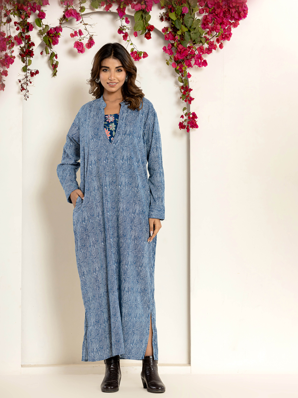 Blue Prosecco deep V neck block print 2 - piece Pure Cotton set