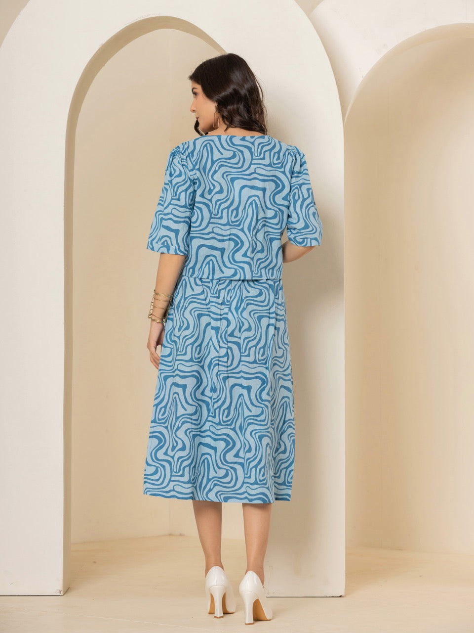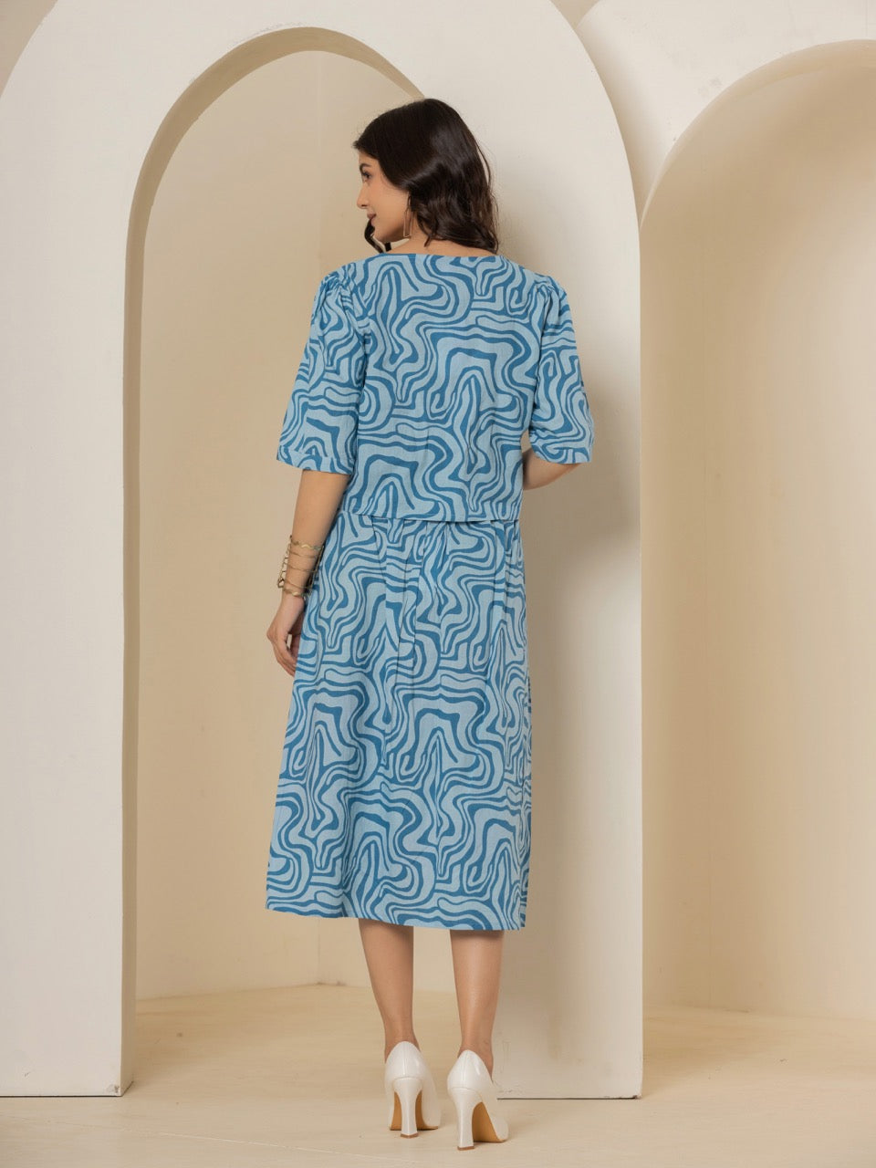 Fluid Wave Ocean Breeze Blue Midi Skirt Set