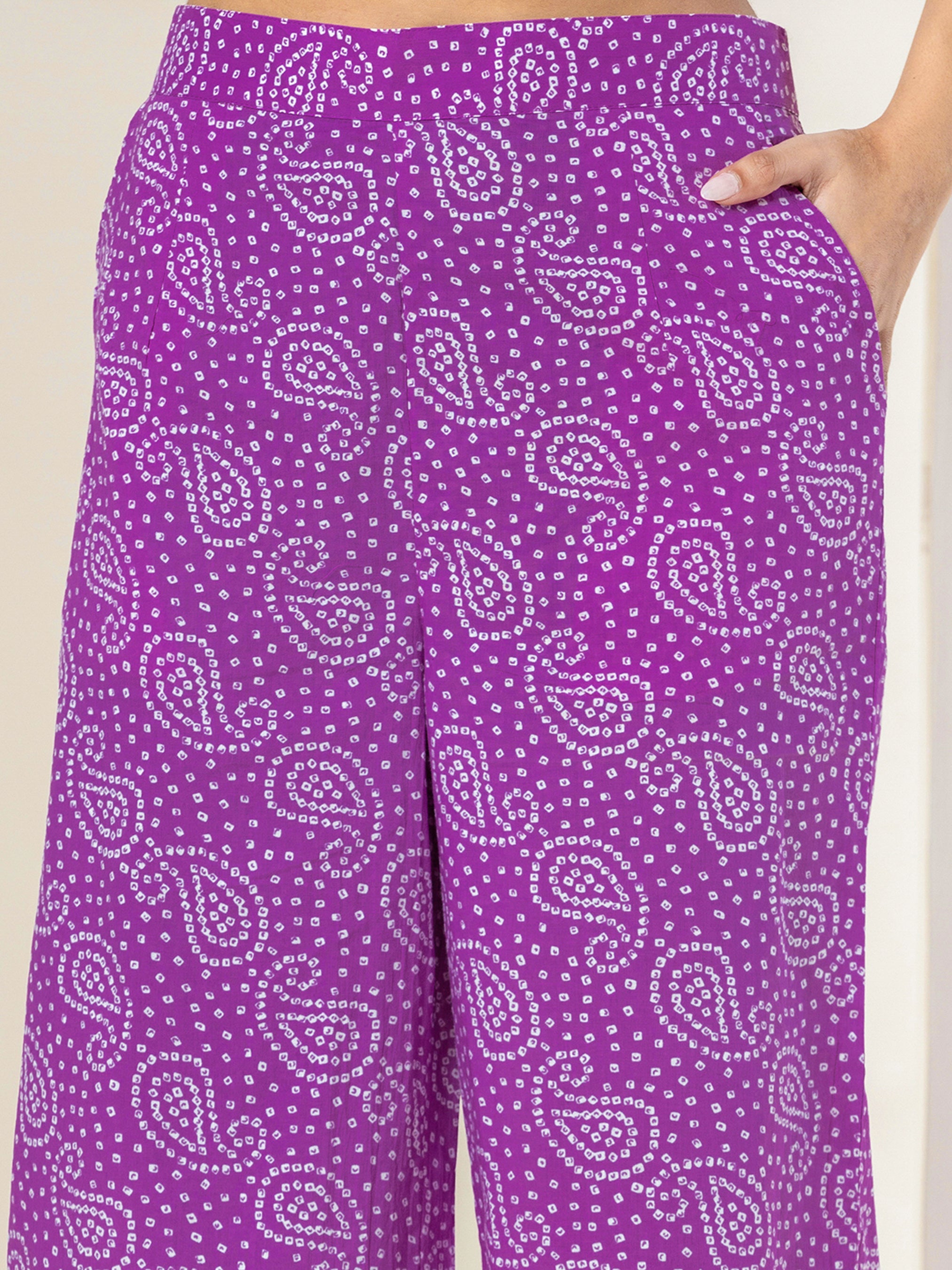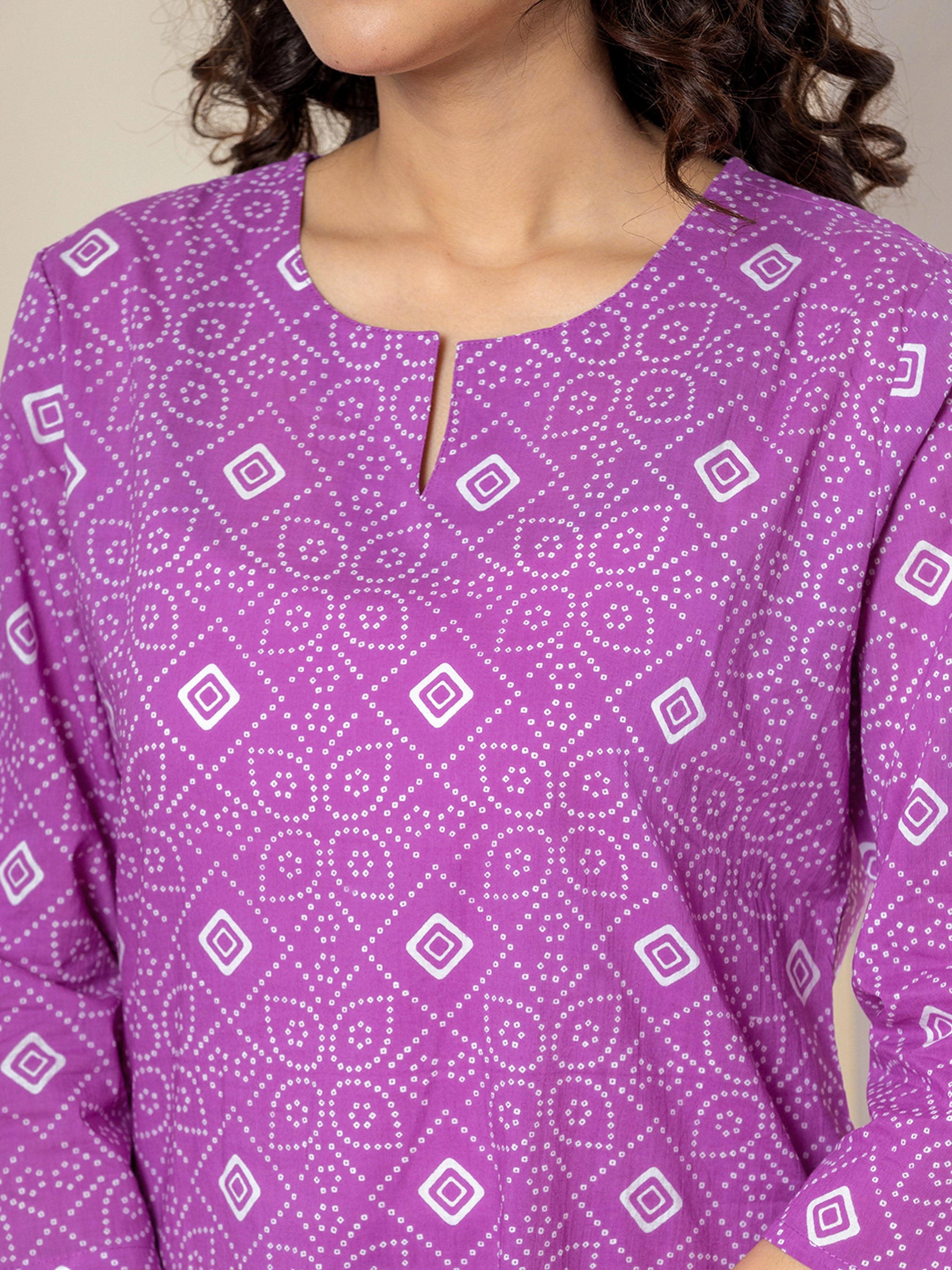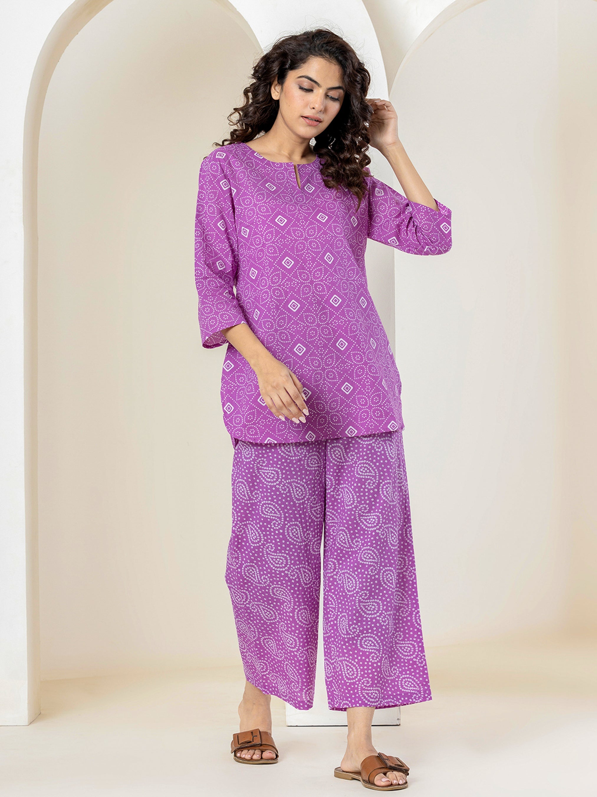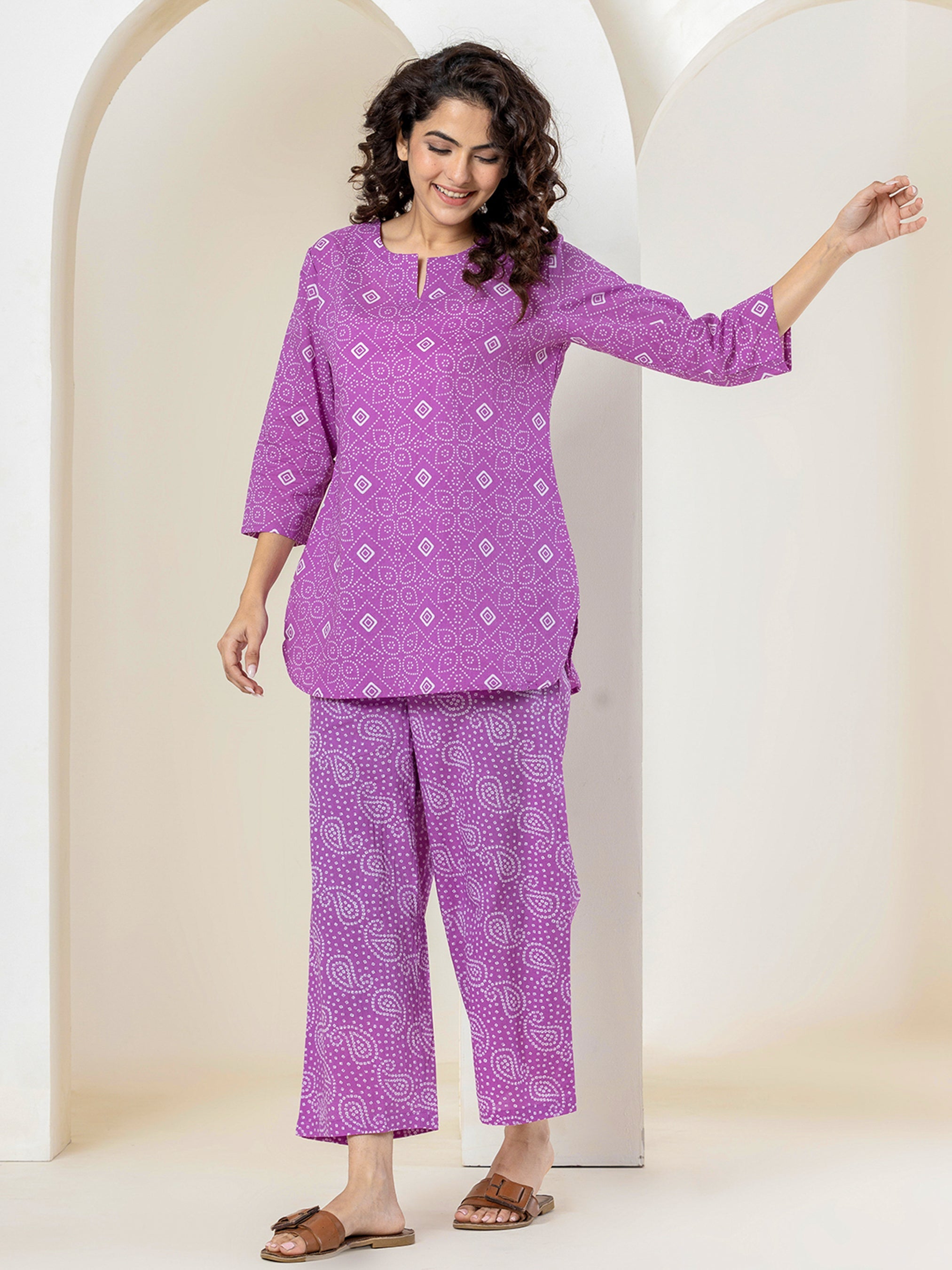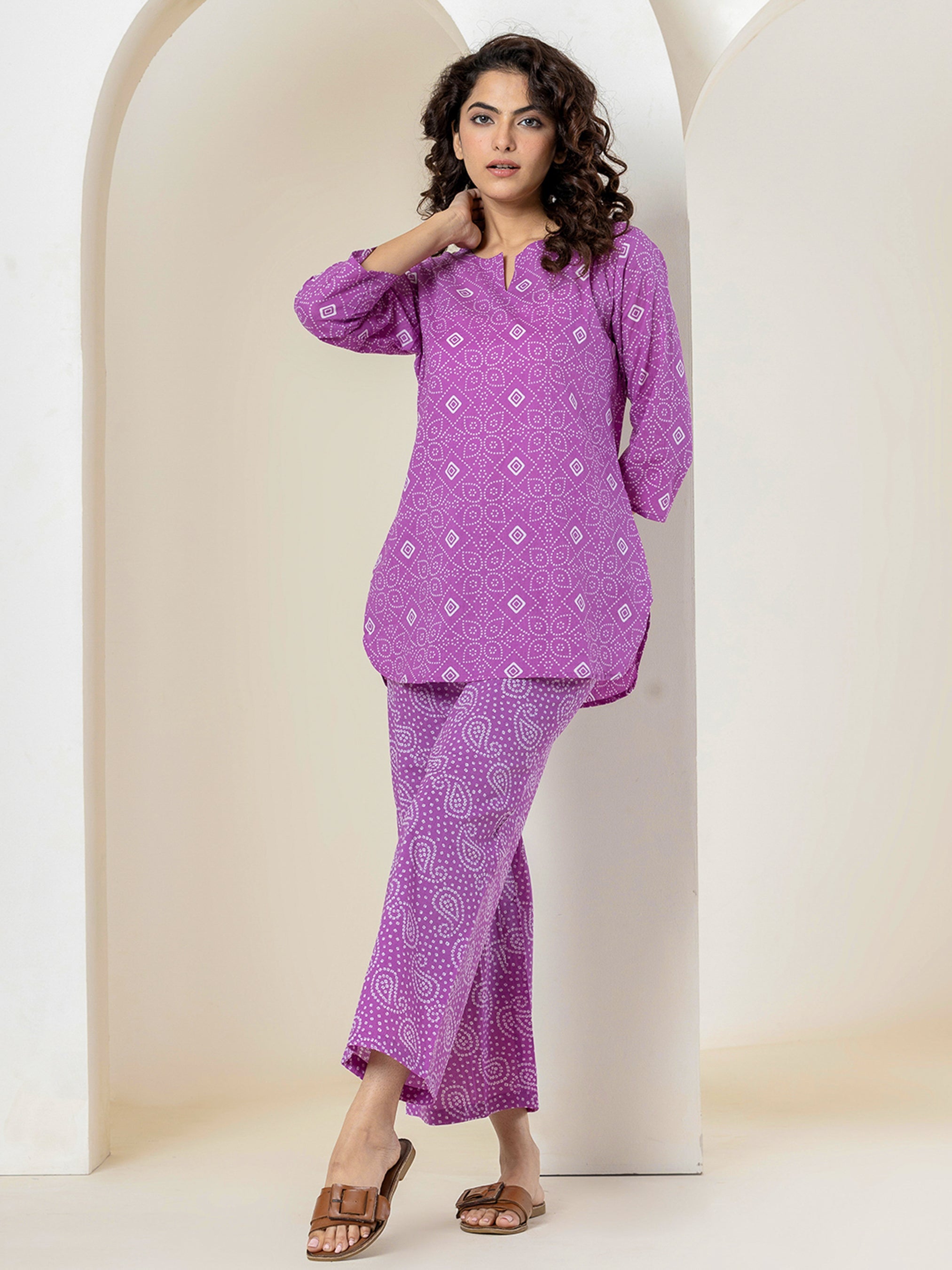 Lilac Leheriya Pure Cotton Hand Printed Loungewear