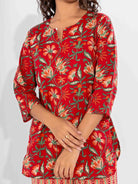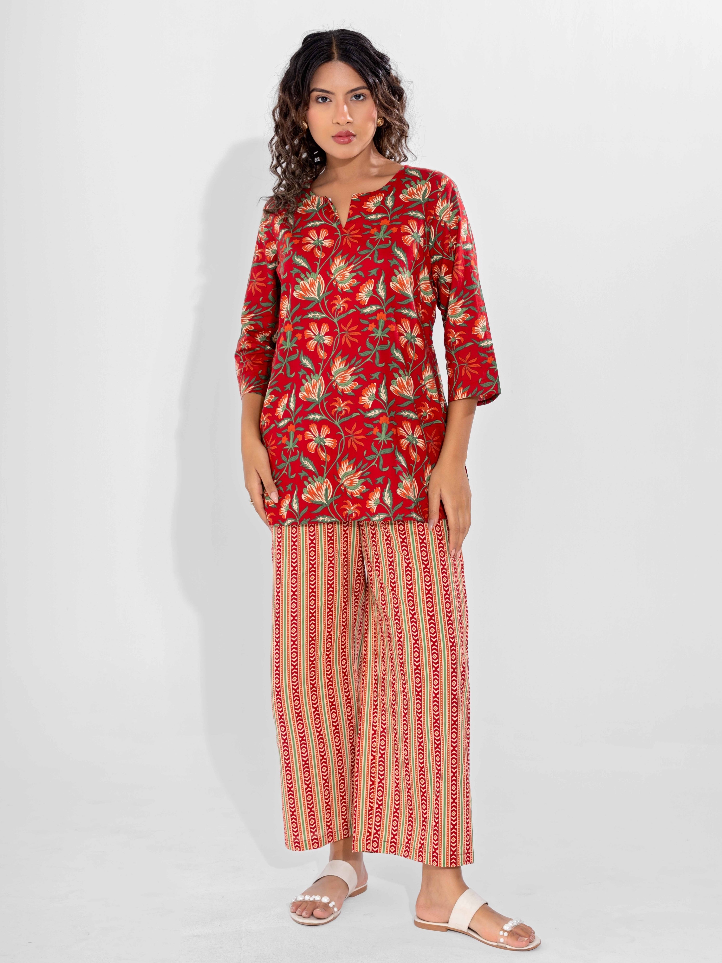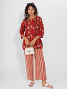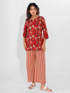Red Nazakat Pure Cotton Round Neck Co-ord set