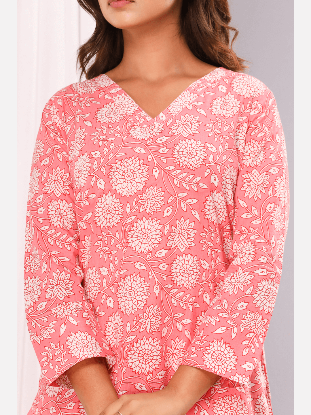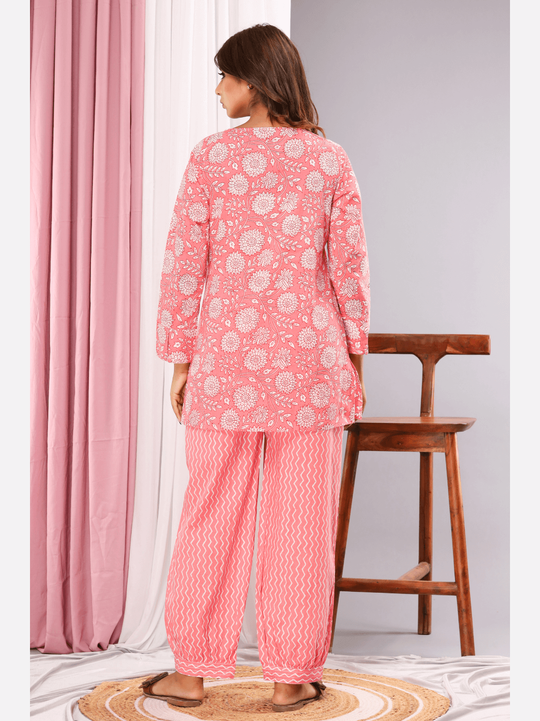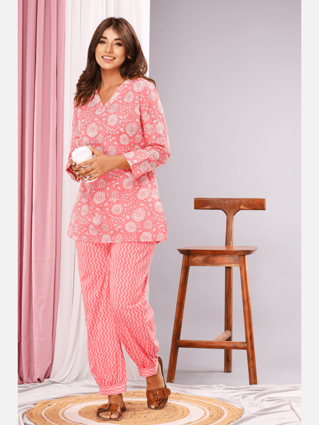 An ideal choice for your loungewear wardrobe, the Cotton Set comes in a soothing color palette. The hand block-printed pattern of the breezy Cotton top complements the matching Pants perfectly.