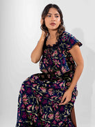 The Blue Jaal Pure Cotton Tieup Square Neck Night Maxi offers playful comfort with its soft cotton fabric and charming tie-up detail. Its square neck adds a fun, fresh touch for cozy nights in style.