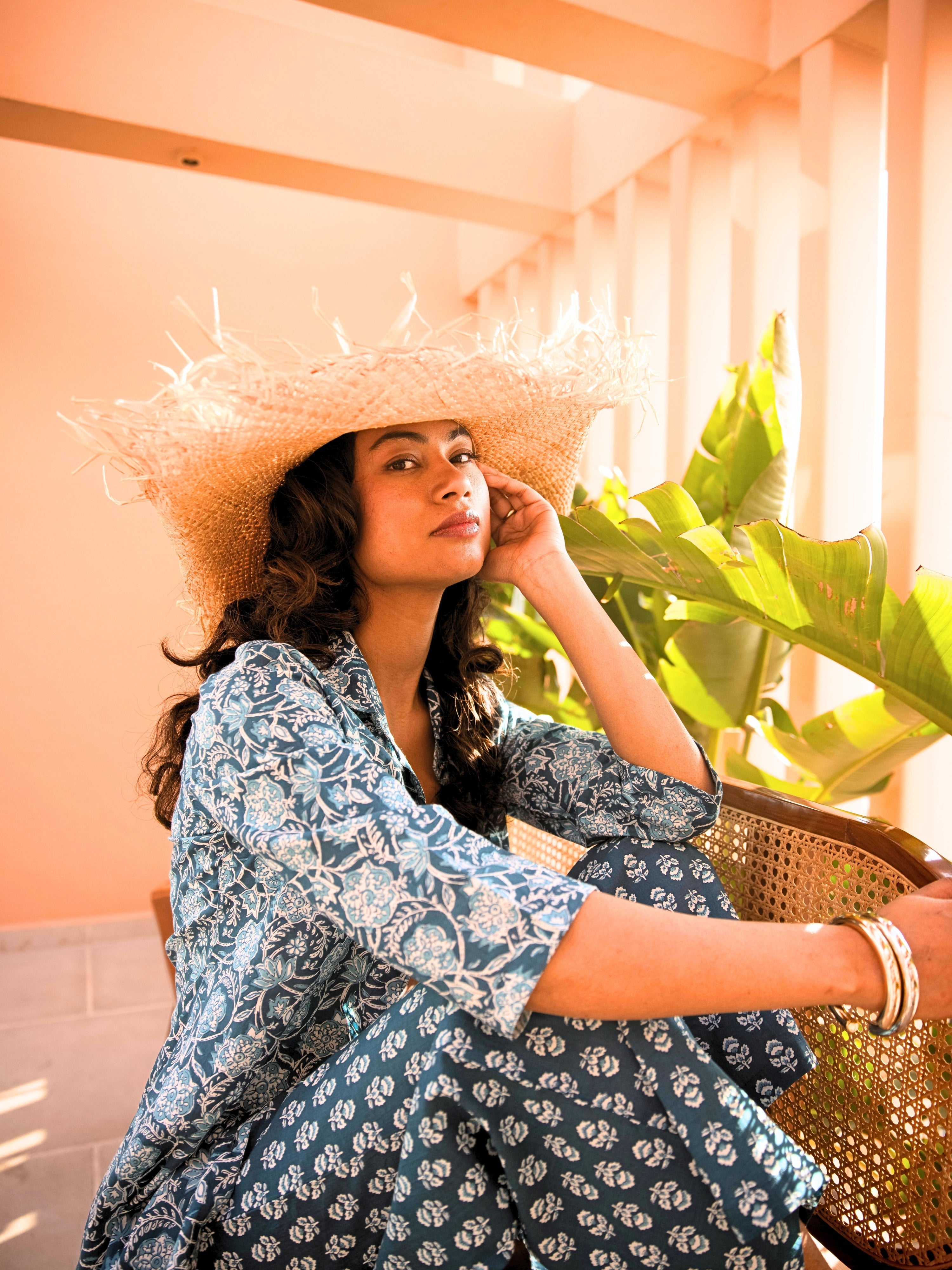 Sea Blue Breeze Print Pure Cotton Collar Shirt Co-ord set