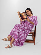 The Taffy Pink Printed Pure Cotton V-Neck Night Maxi is a playful and comfy choice for bedtime. Made from soft cotton with a flattering V-neck, it keeps you cozy and stylish all night long.