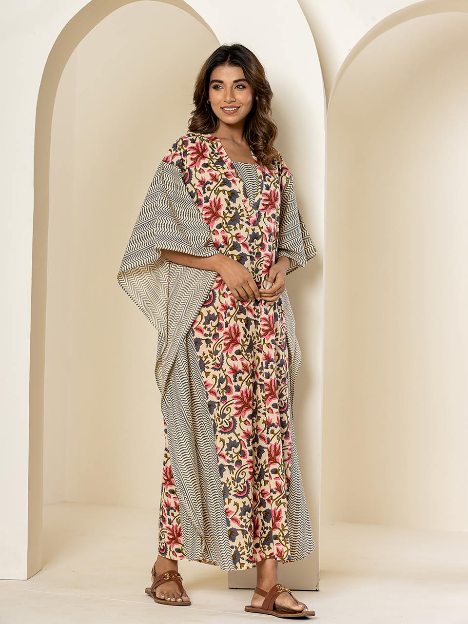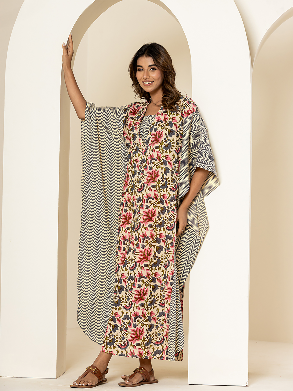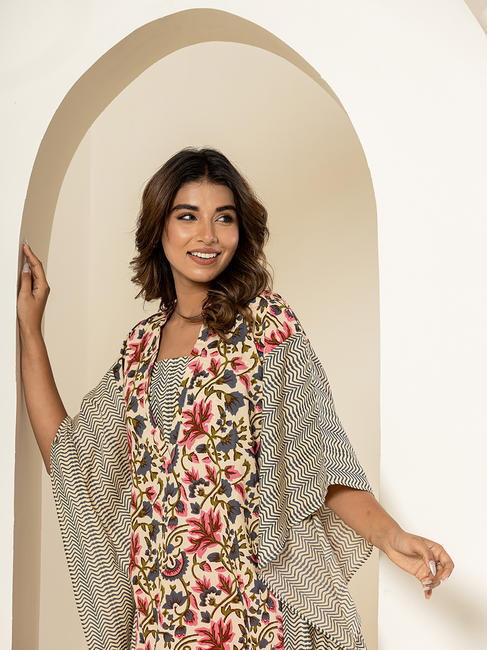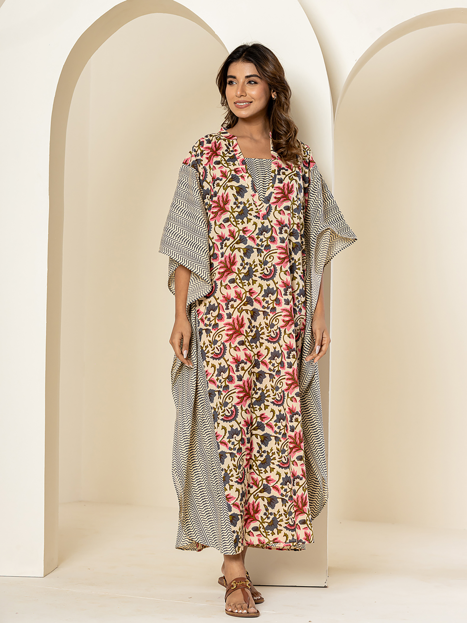 Elevate your loungewear game with our luxurious Cotton 2-piece Kaftan, available in a tranquil color scheme. "Unwind in style with our fabulously comfortable Cotton 2-piece Kaftan, boasting a serene color palette. Perfect for lounging or catching some Z's with a touch of elegance!"