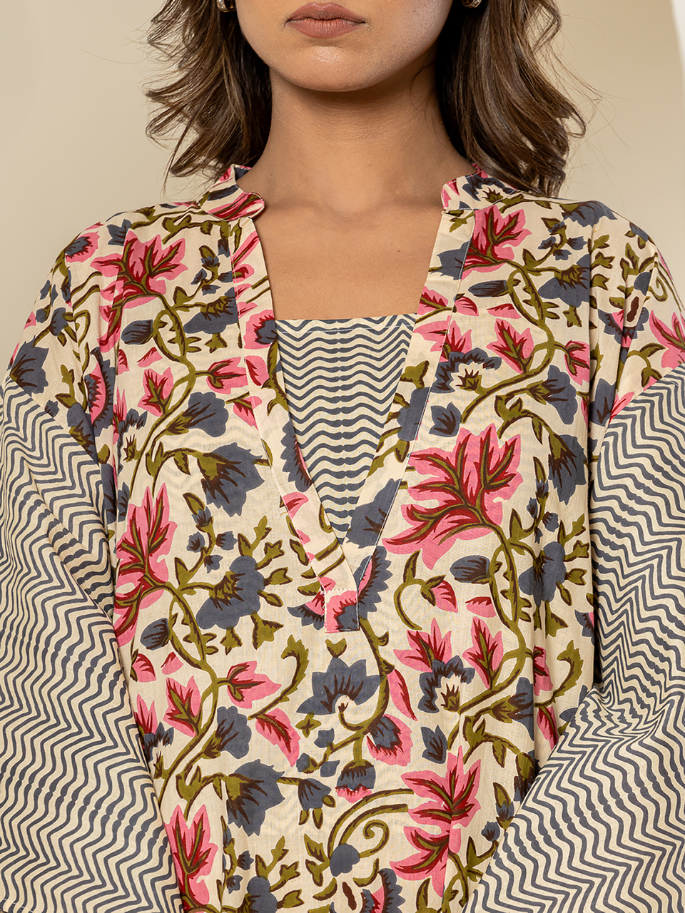 Chic off white slate - 2 piece Pure Cotton Kaftan Set