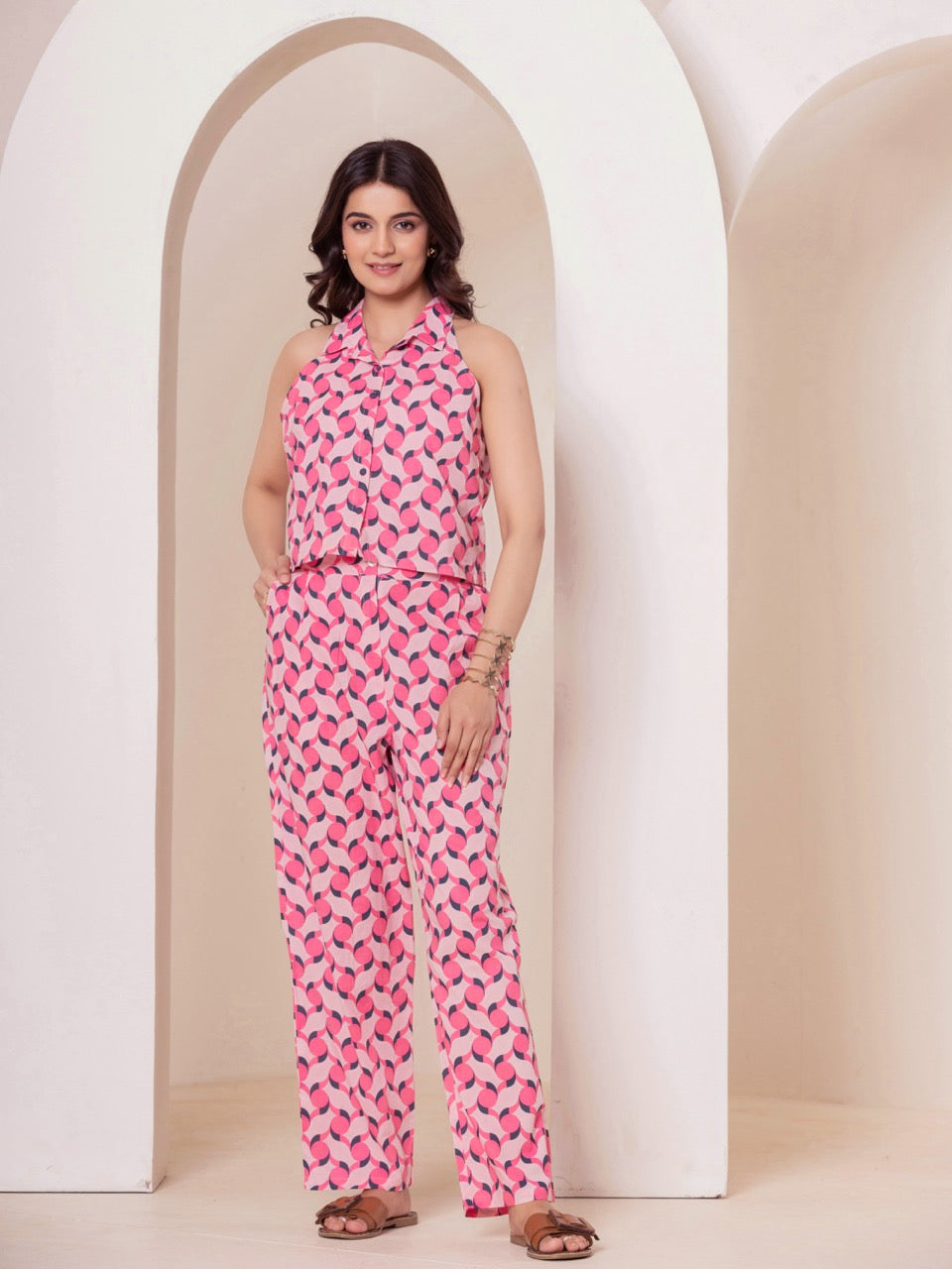 A perfect pick for your chill-out closet, the Cotton Set comes in a calming color scheme. The breezy Cotton top's hand block-printed design perfectly matches the accompanying Pants.