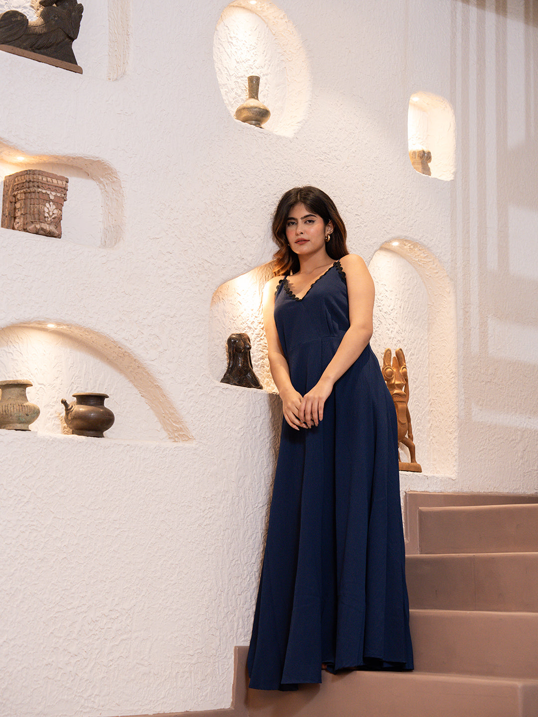 Experience luxurious comfort in our Sapphire Blue Soft Crepe Night Maxi. Made with the softest crepe fabric, this elegant maxi dress will keep you feeling pampered all night long. Its stunning sapphire blue hue and flowing silhouette create a sophisticated and exclusive look, perfect for any evening occasion. Elevate your wardrobe with this premium piece.