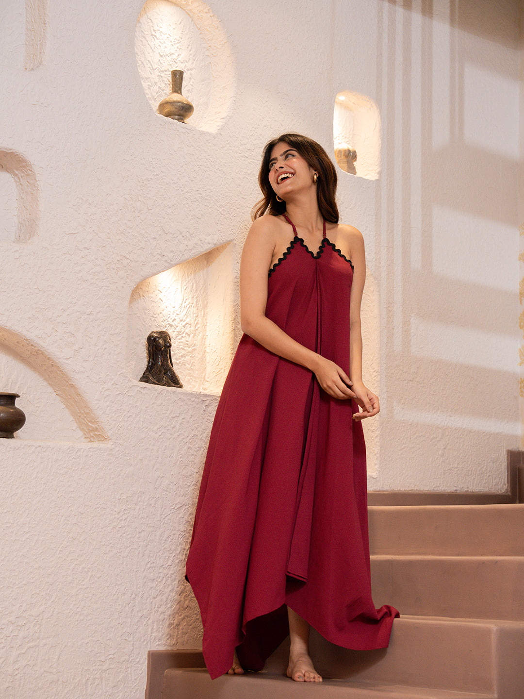 Indulge in luxury and elegance with our Cherry Red Soft Crepe Night Maxi. Crafted from delicate crepe fabric for a soft and delicate feel, this night gown is the epitome of sophistication. Slip into pure comfort and style with this stunning piece.