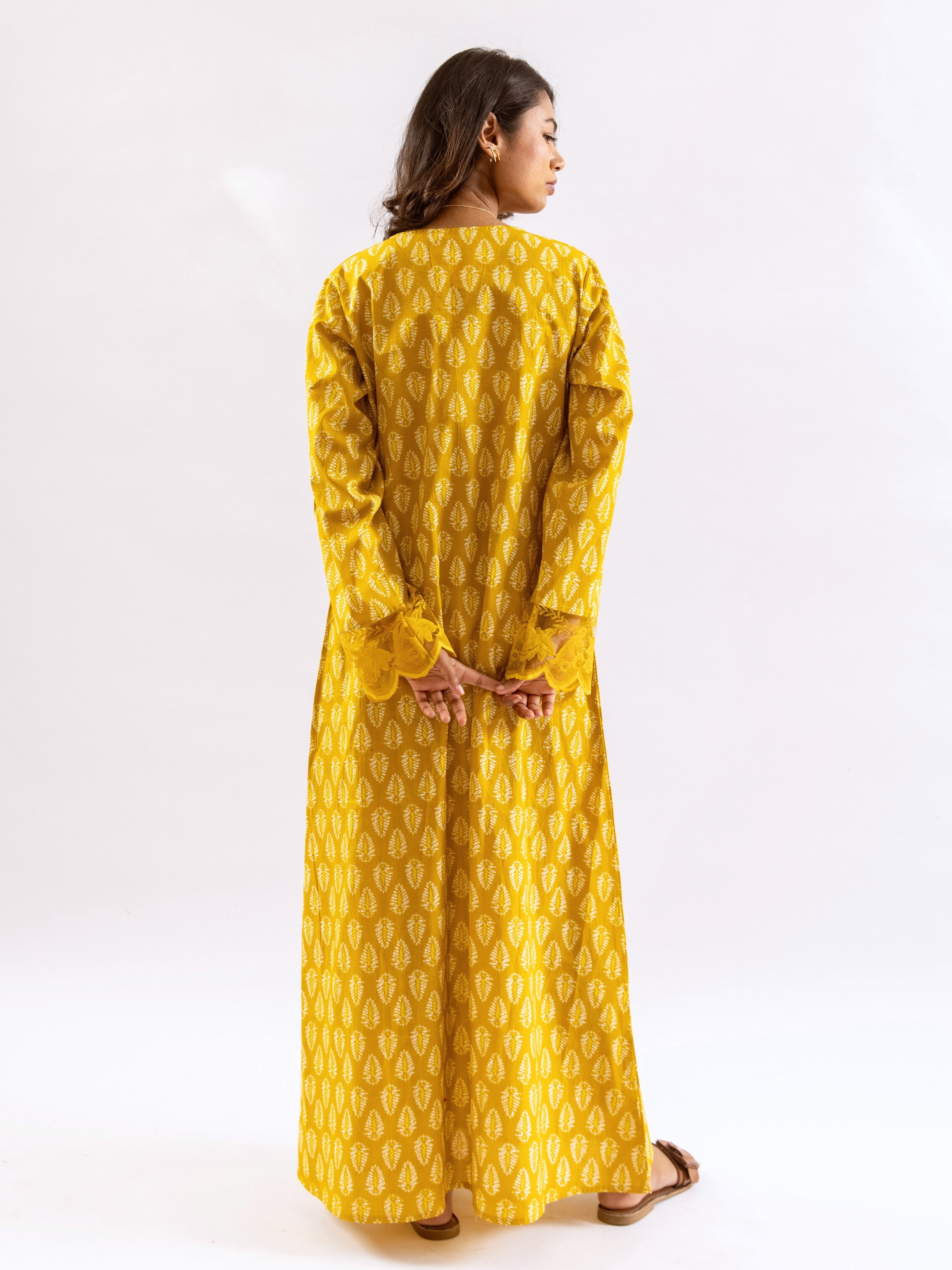 Yellow Bloom Lacy Pure Cotton V neck Night Maxi
