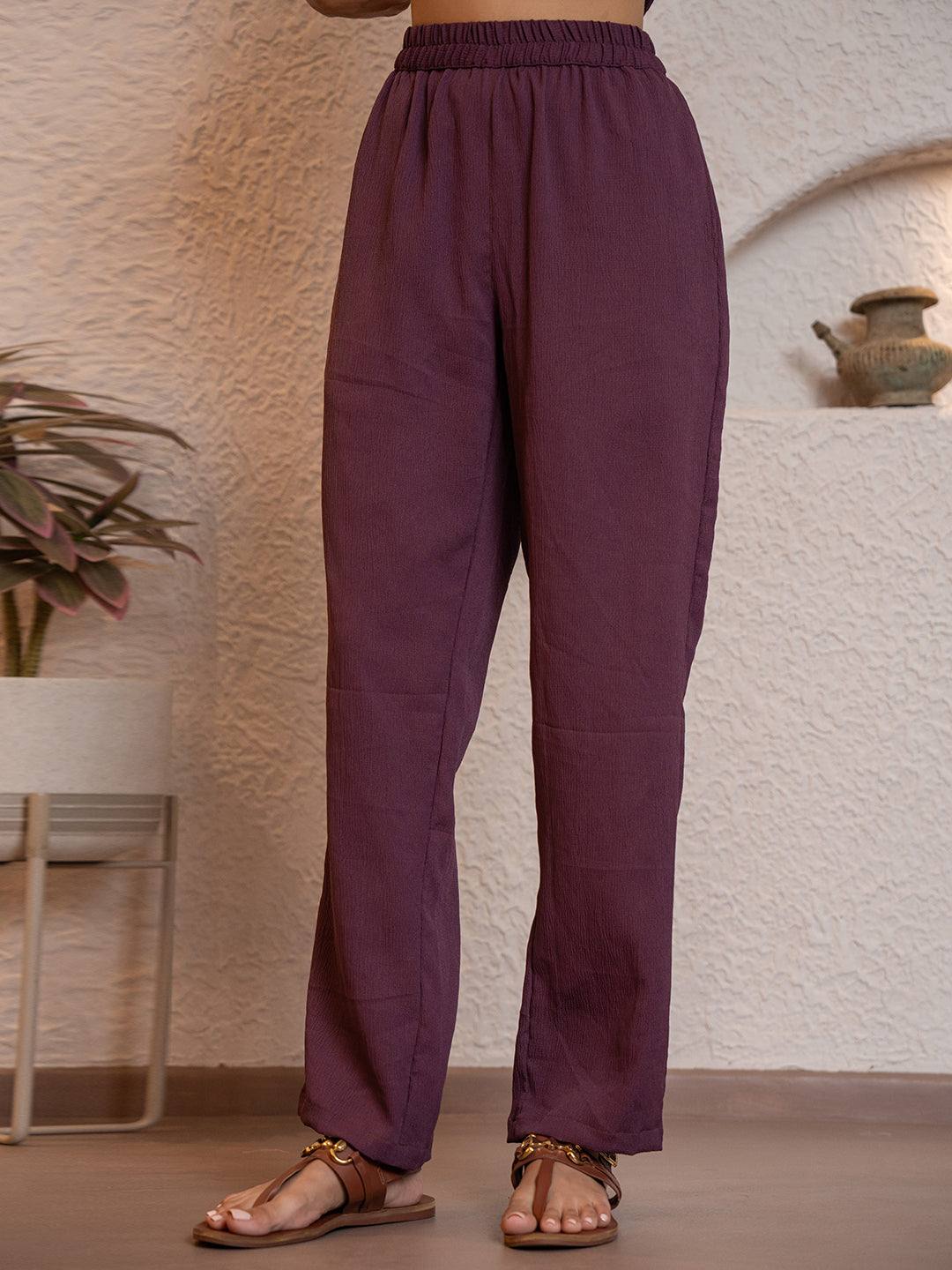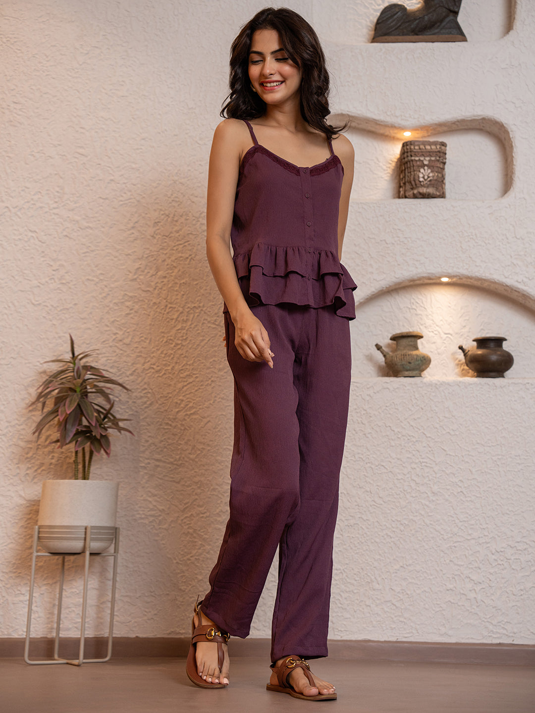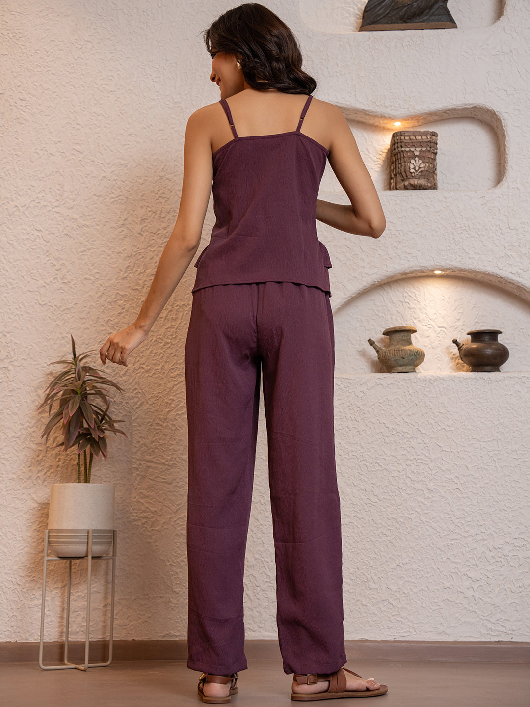 Plum Purple Soft Crepe Sleeveless Co-Ord Set