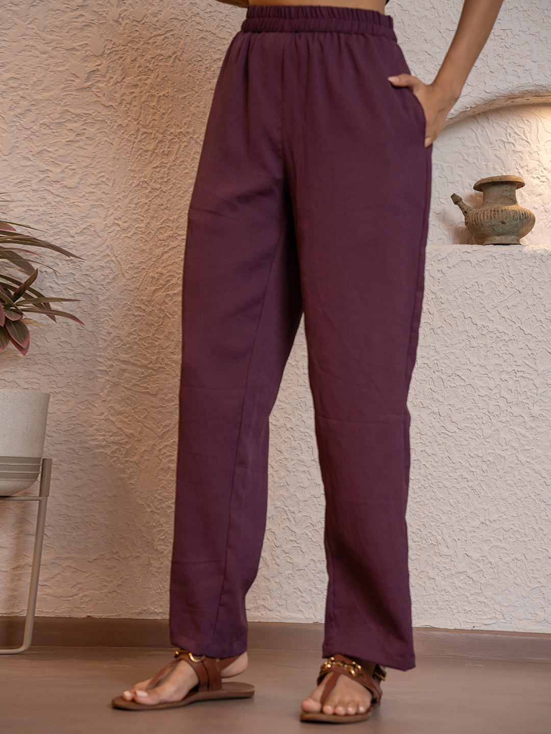 Be stylishly coordinated with this soft crepe sleeveless Co-Ord set in a playful plum purple shade. Perfect for any occasion, its comfortable and lightweight fabric will keep you looking and feeling cool all day (or night) long!