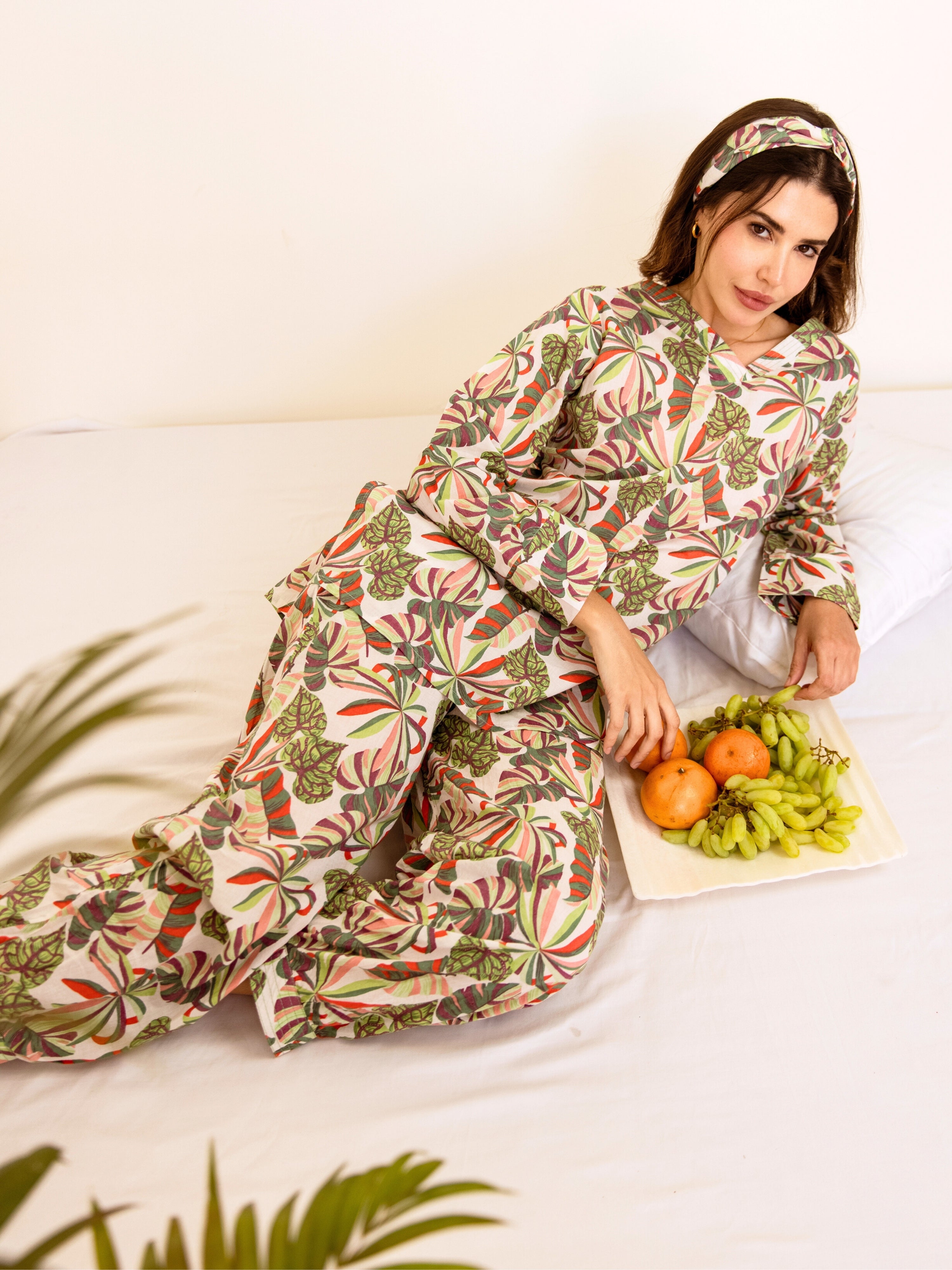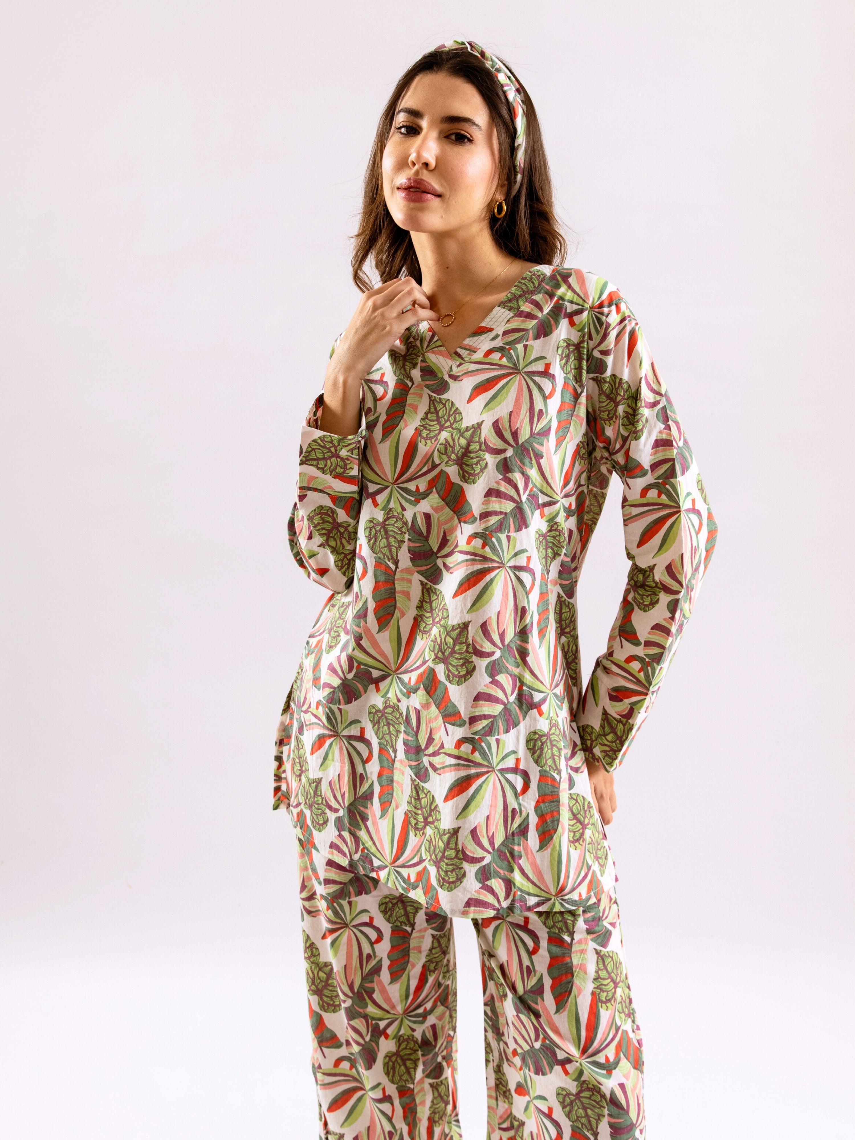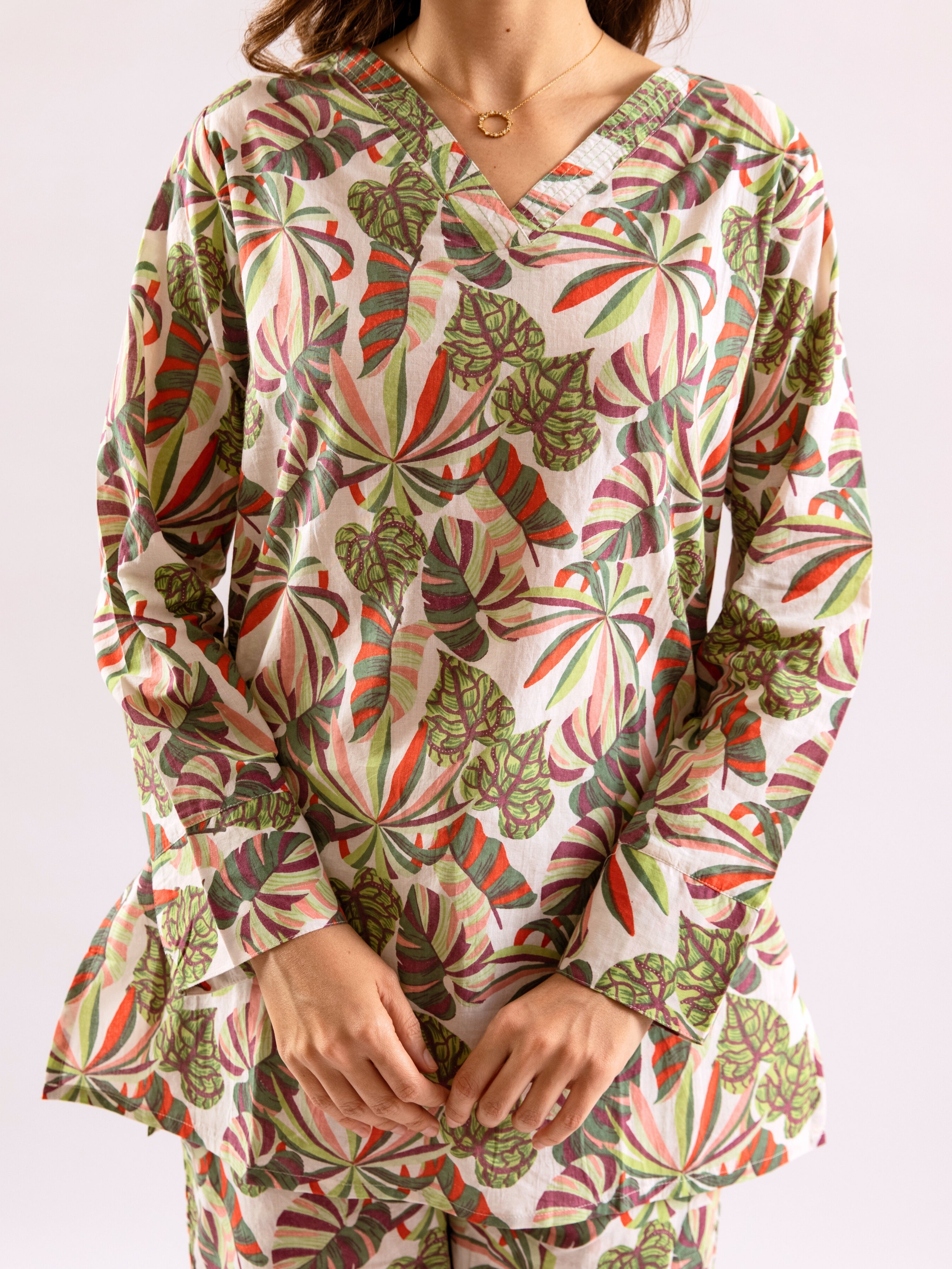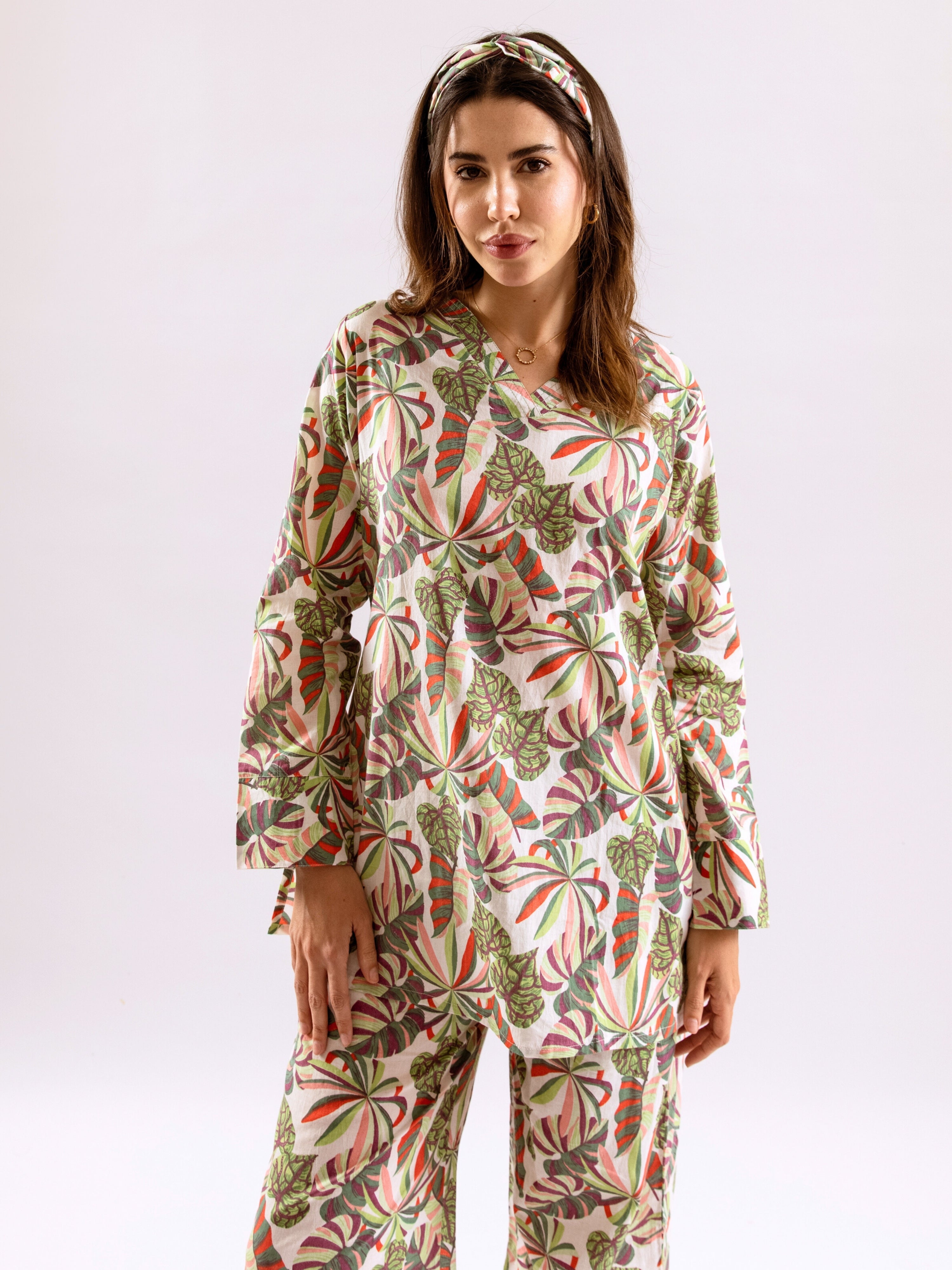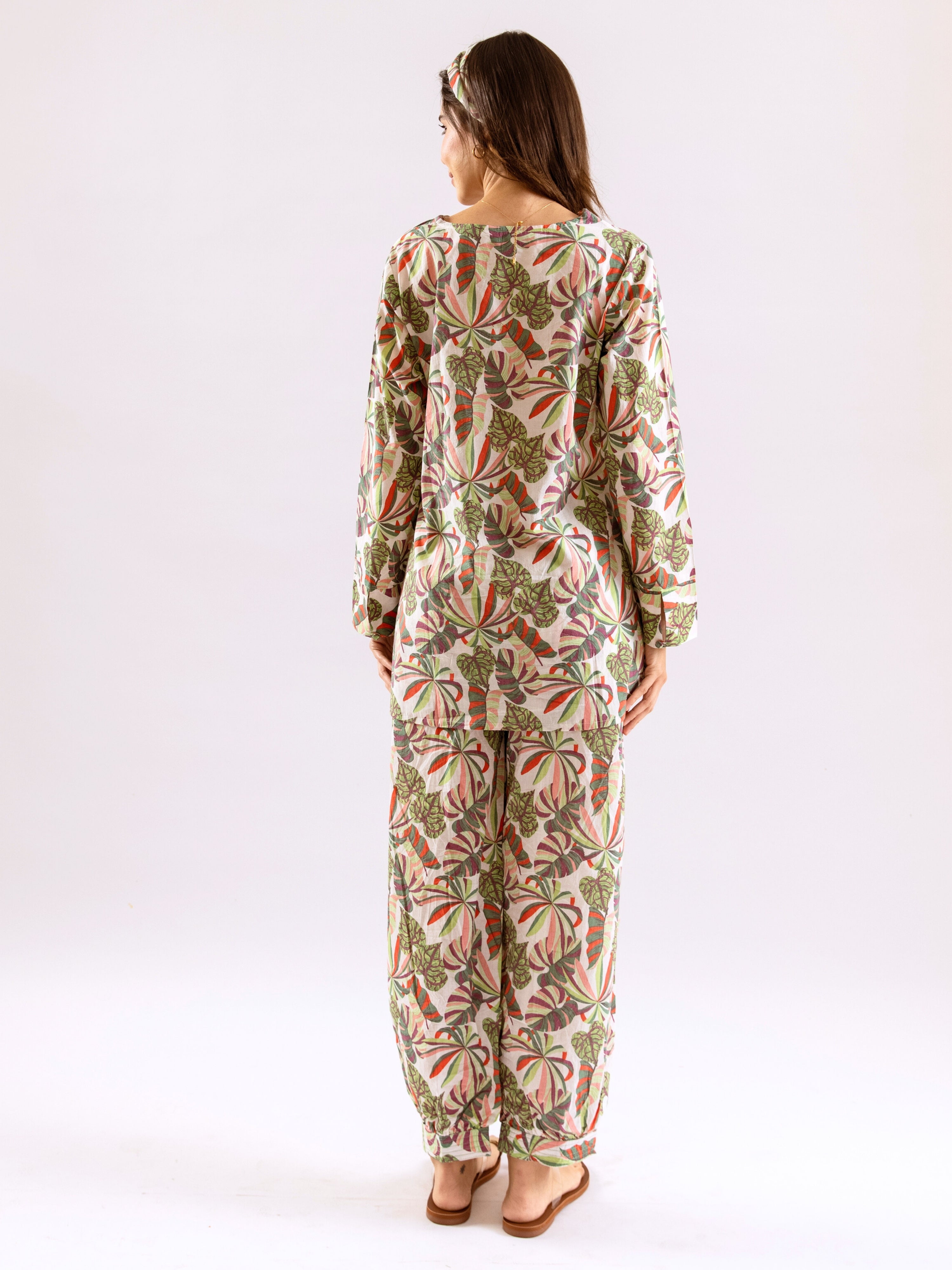 An ideal choice for your loungewear wardrobe, the Cotton Set comes in a soothing color palette. The hand block-printed pattern of the breezy Cotton top complements the matching Pants perfectly.