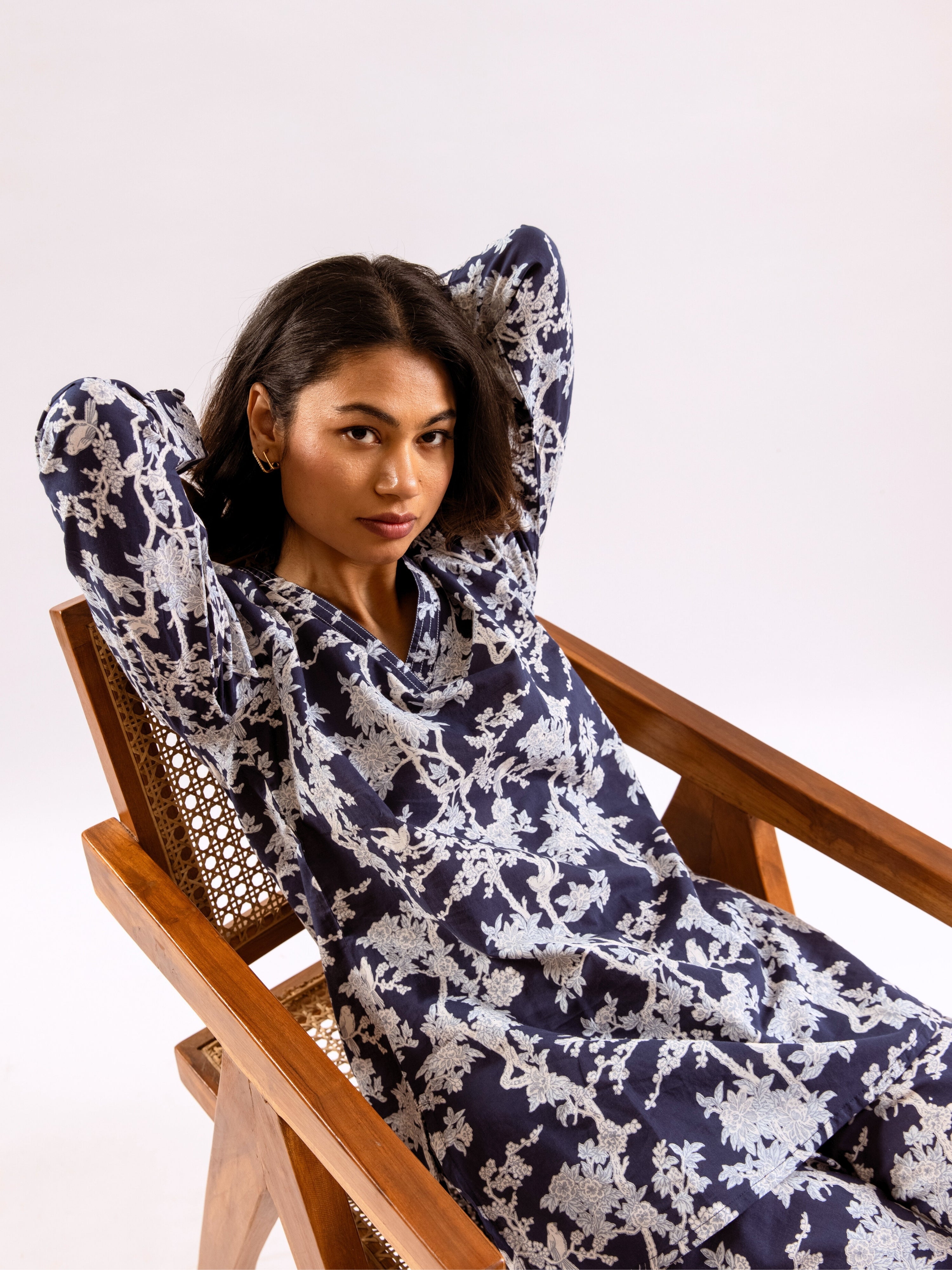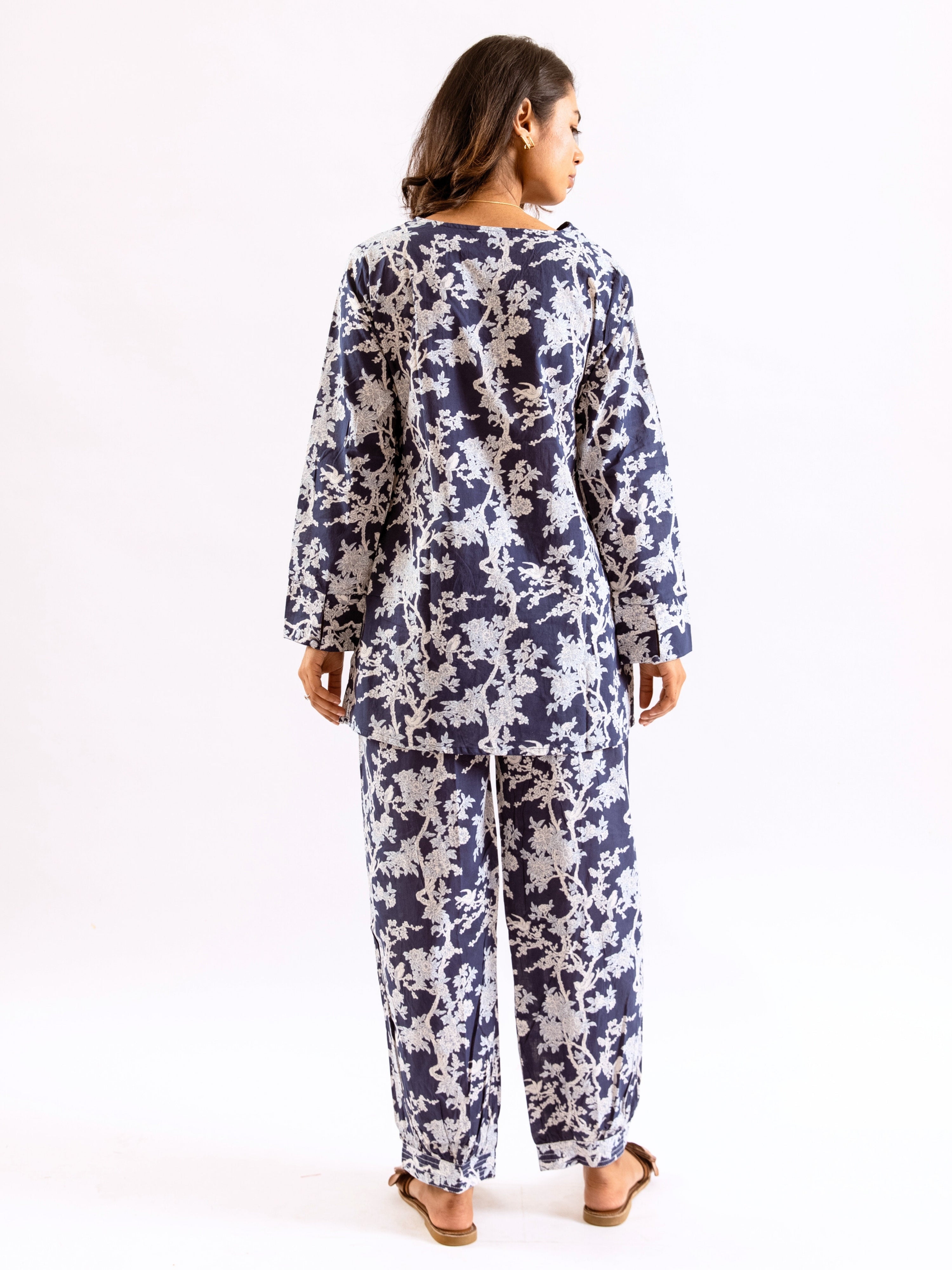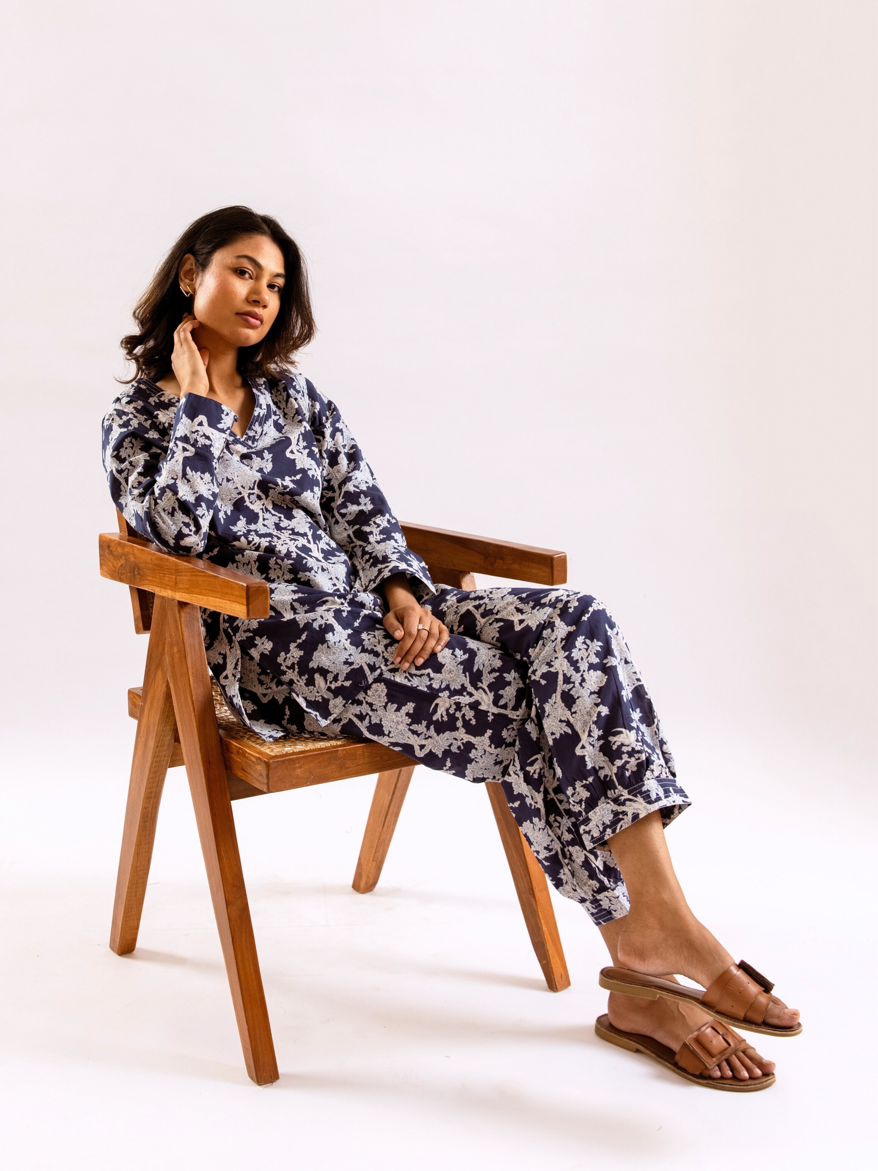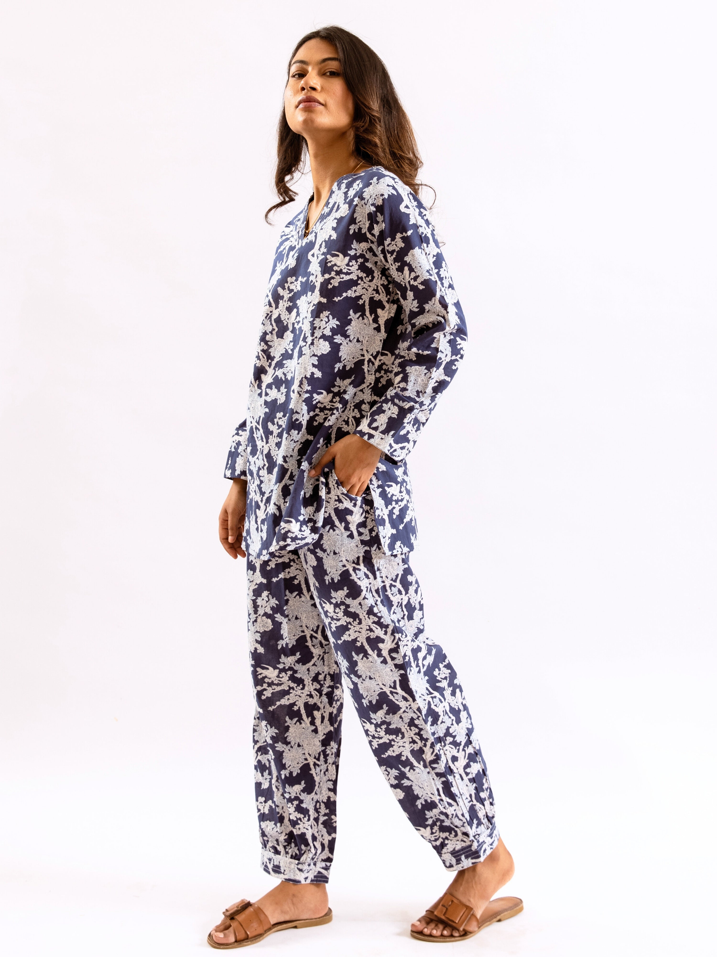 An ideal choice for your loungewear wardrobe, the Cotton Set comes in a soothing color palette. The hand block-printed pattern of the breezy Cotton top complements the matching Pants perfectly.