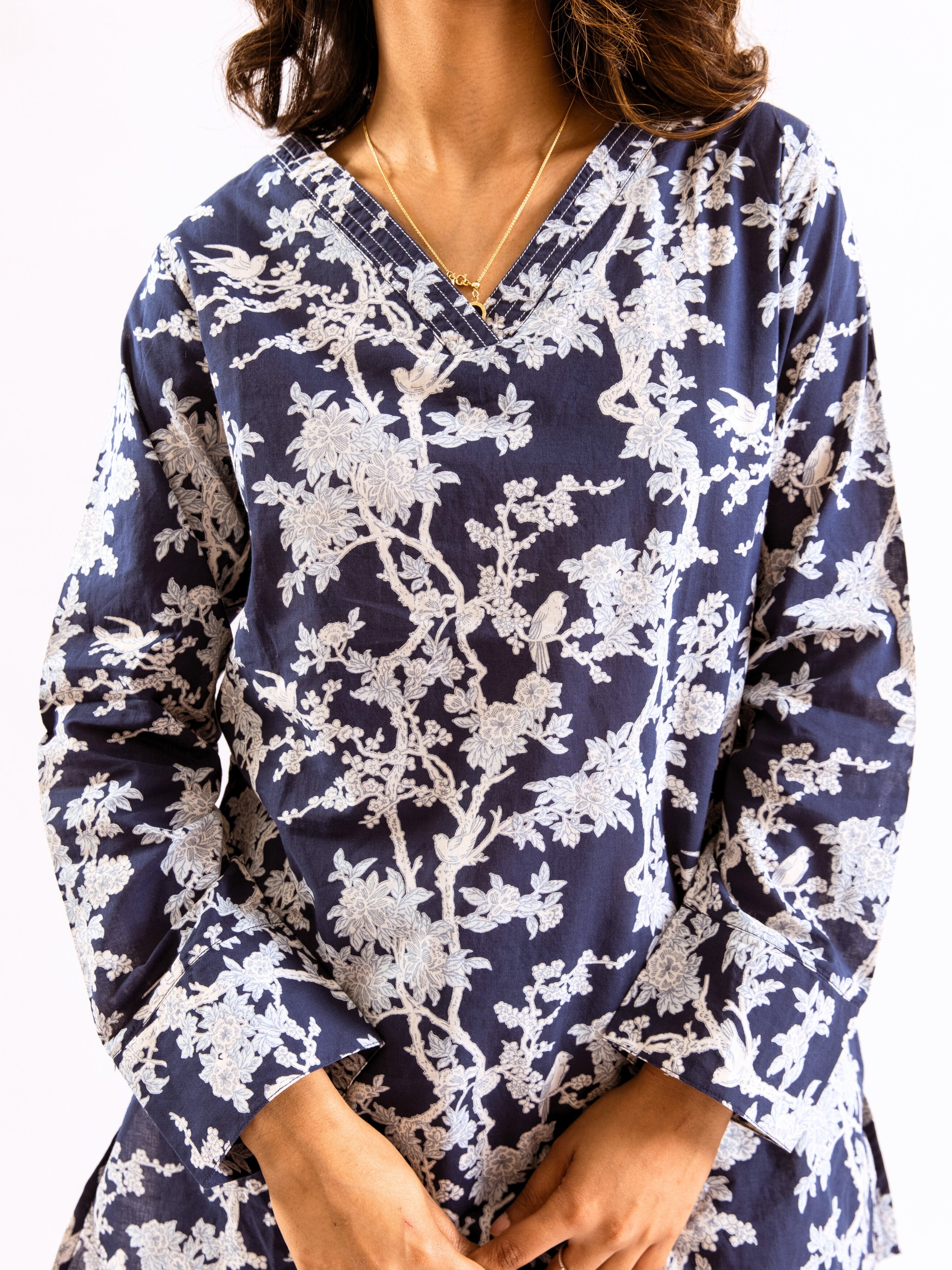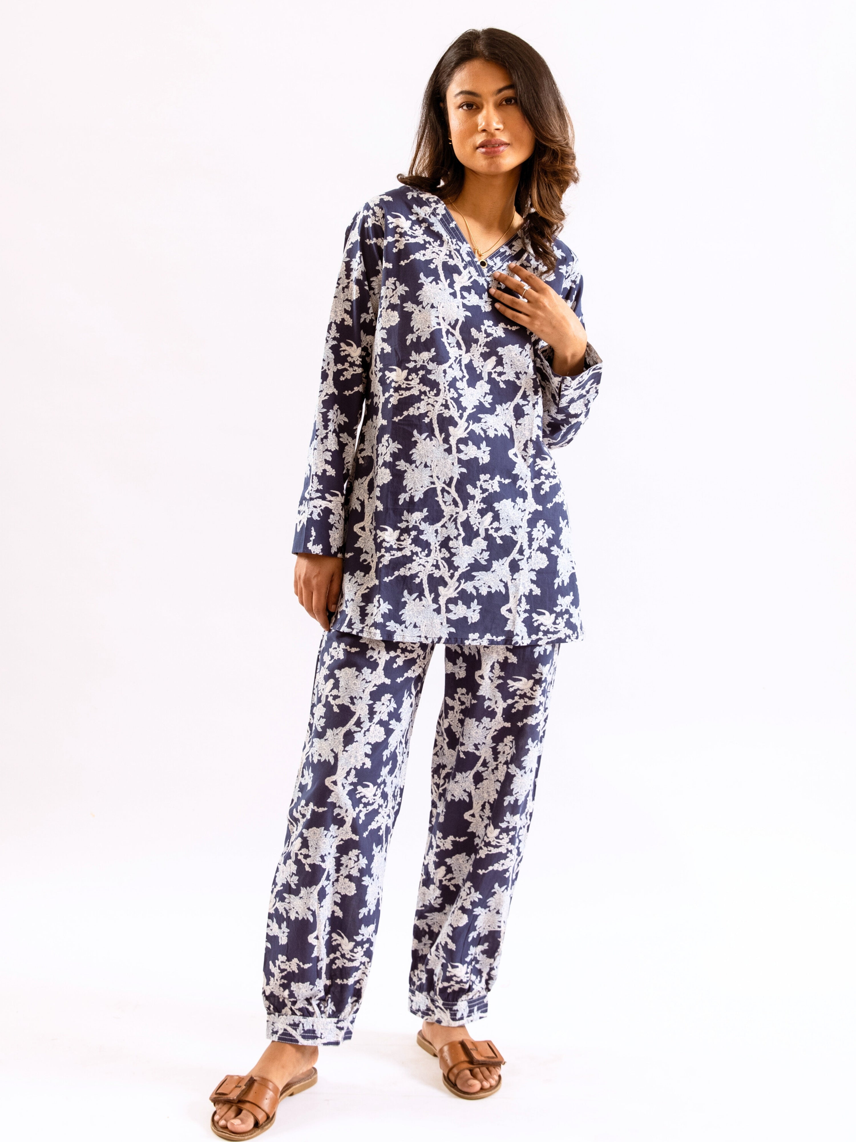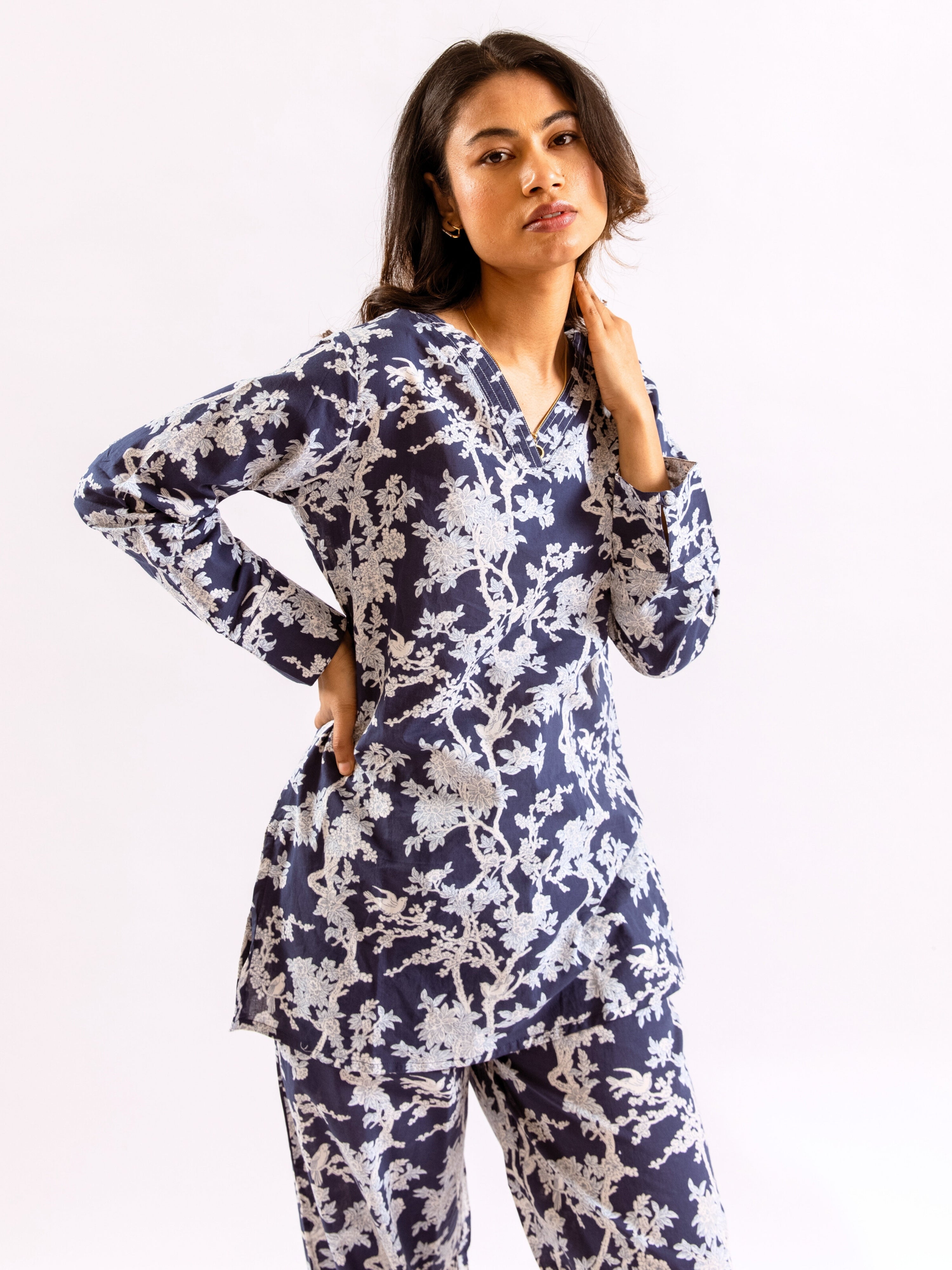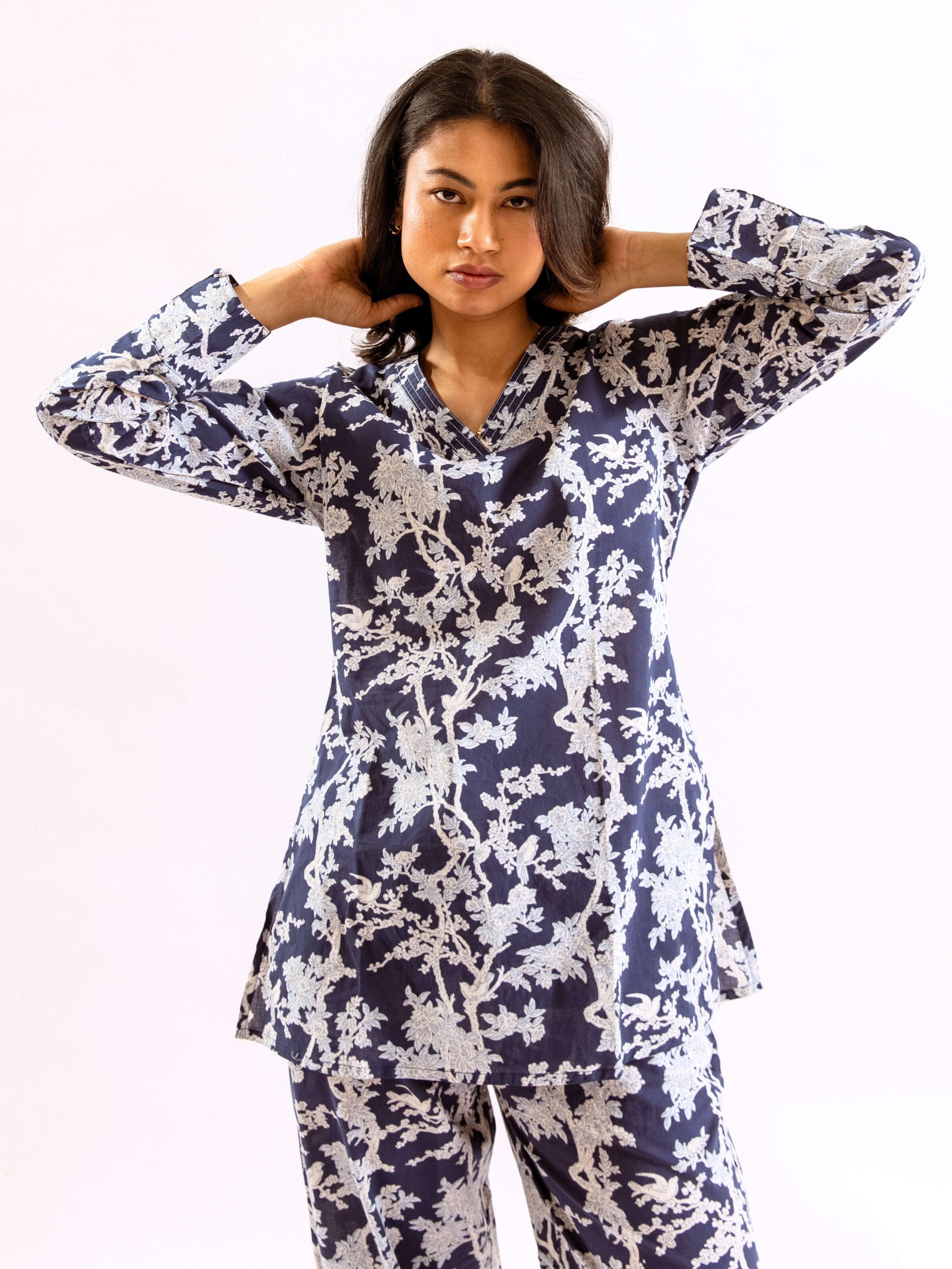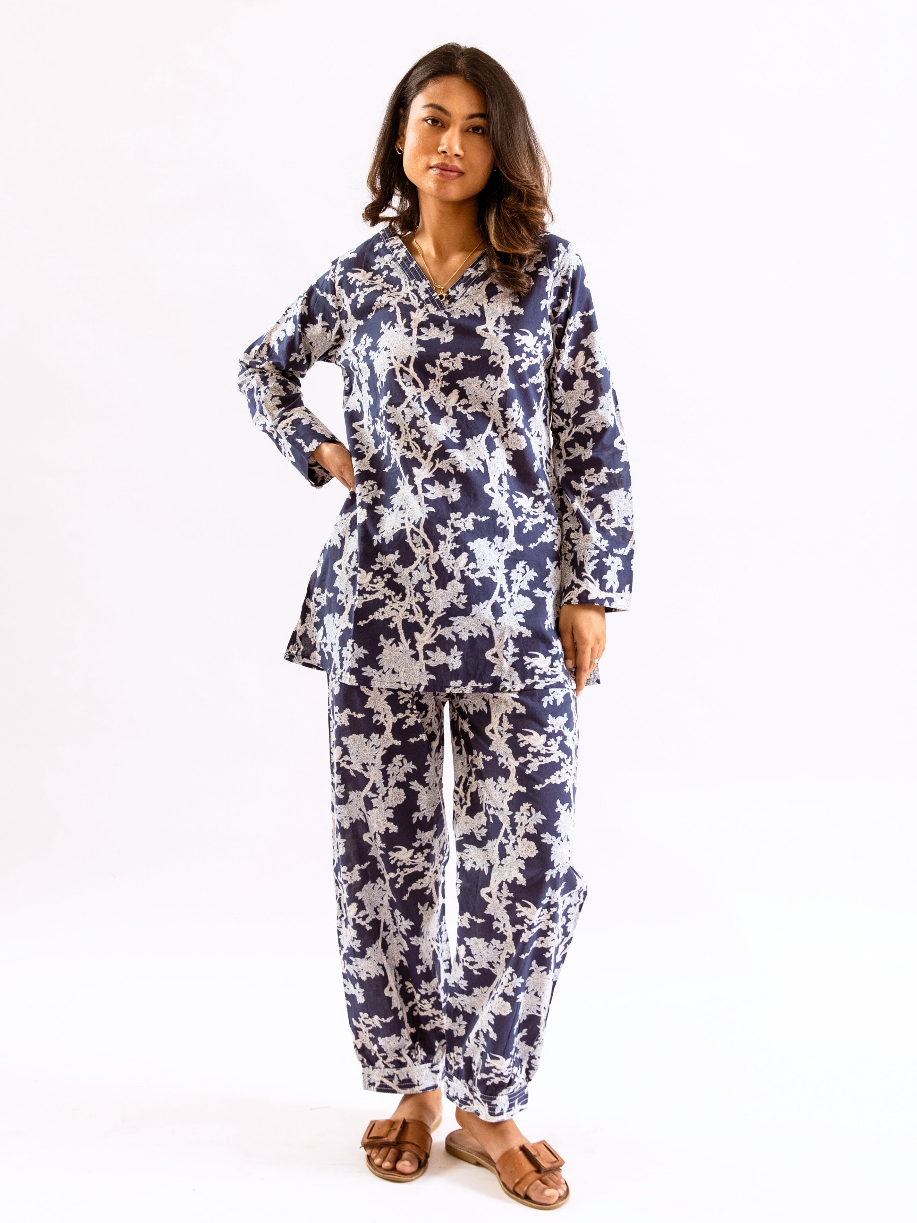 An ideal choice for your loungewear wardrobe, the Cotton Set comes in a soothing color palette. The hand block-printed pattern of the breezy Cotton top complements the matching Pants perfectly.