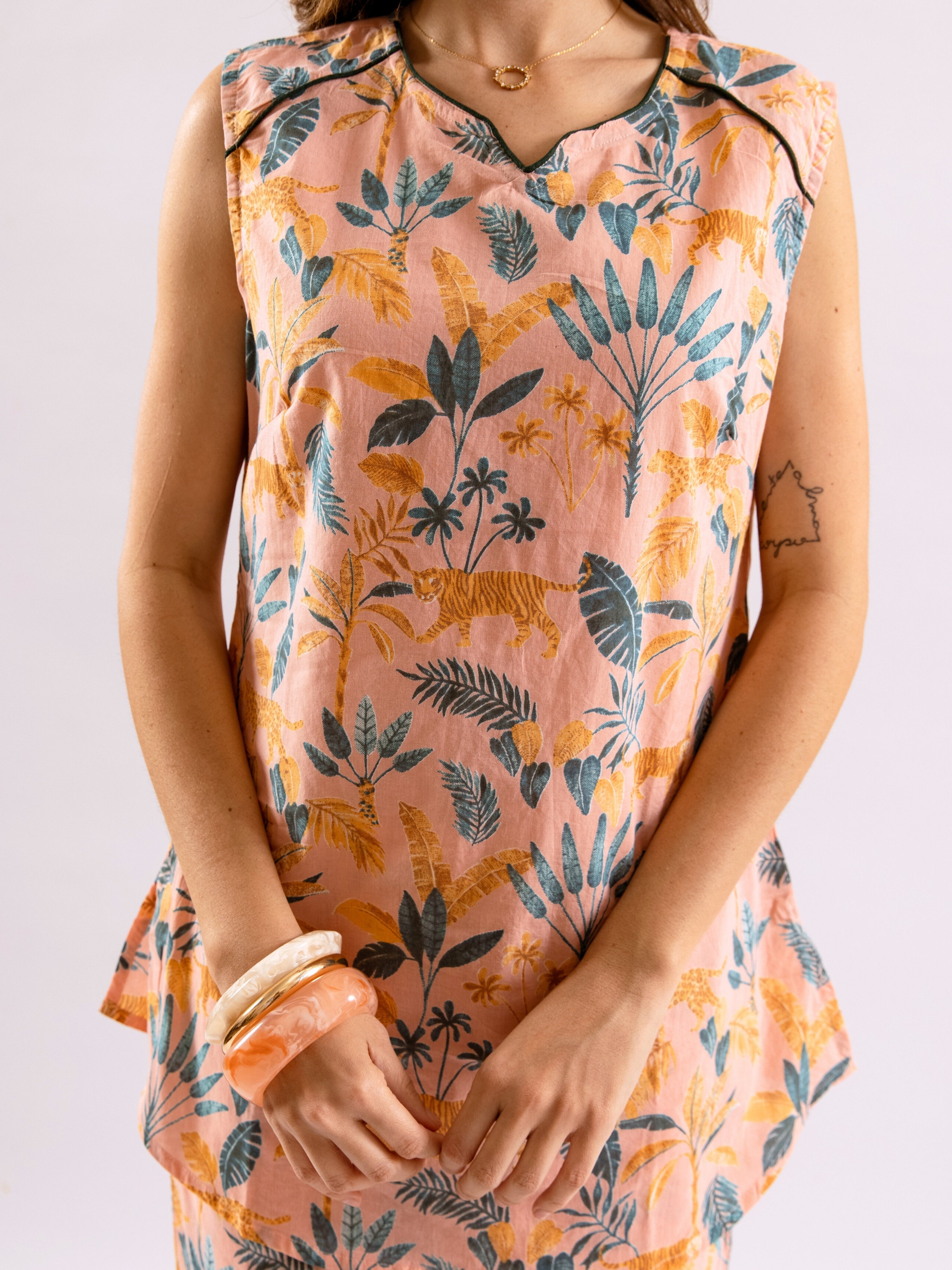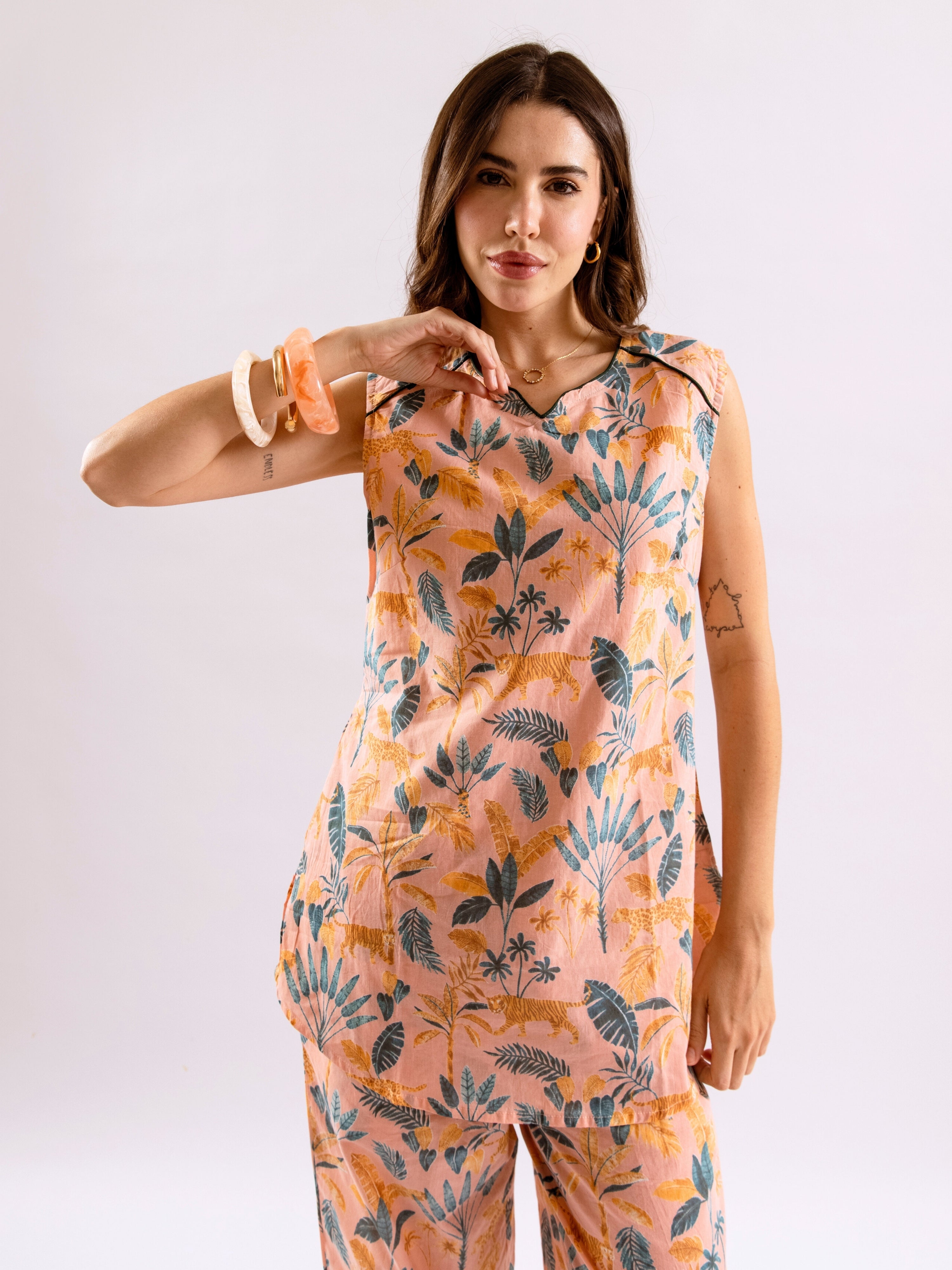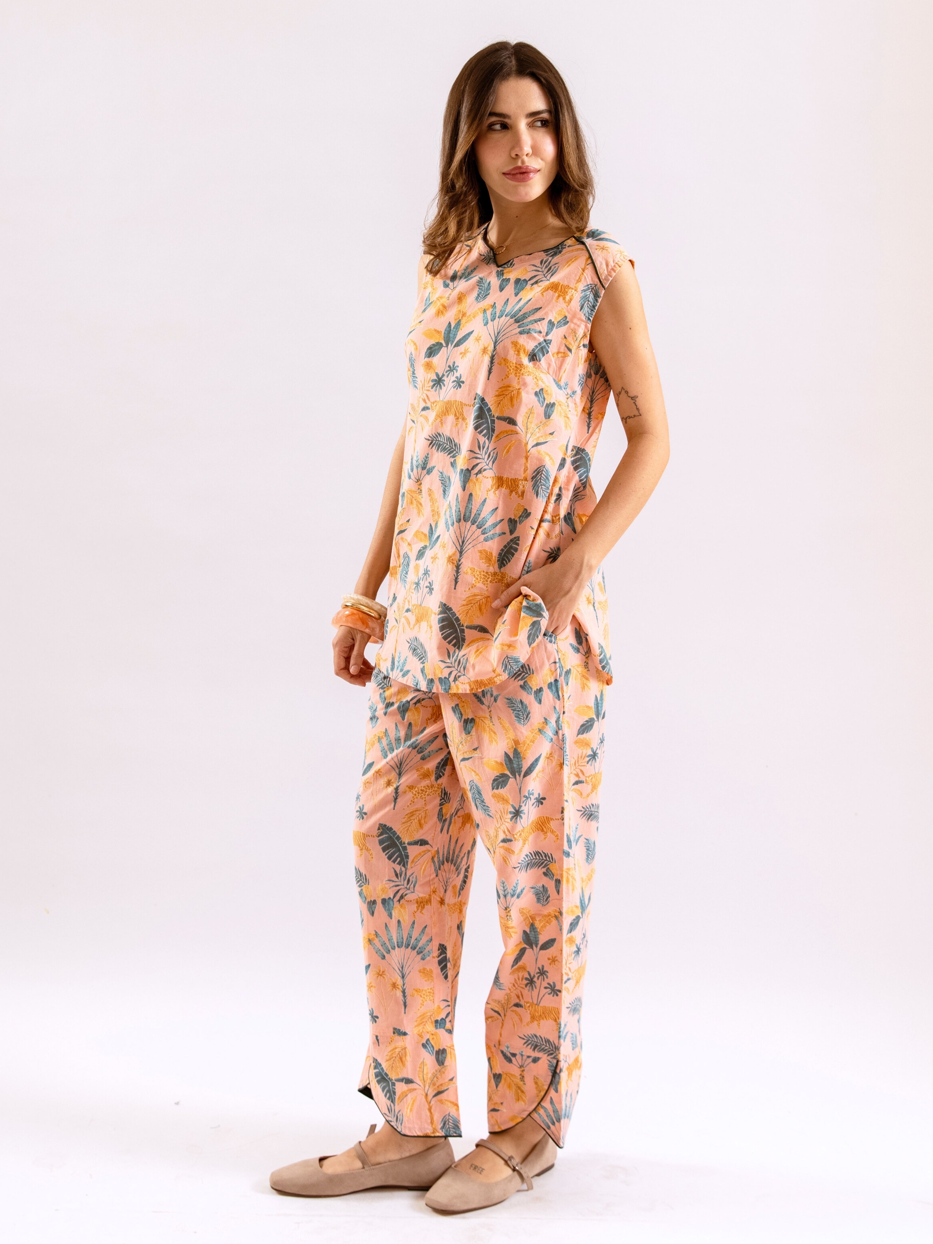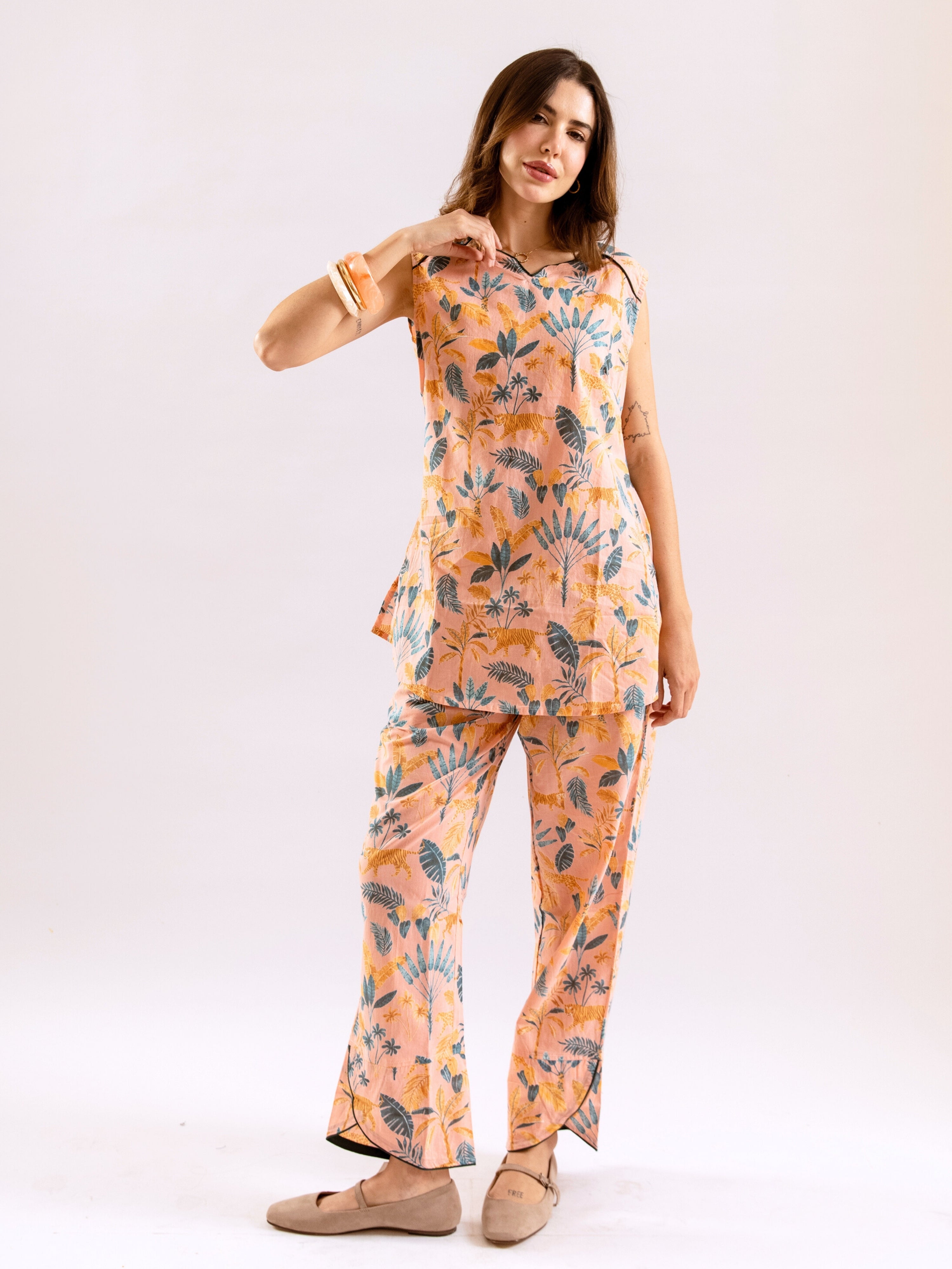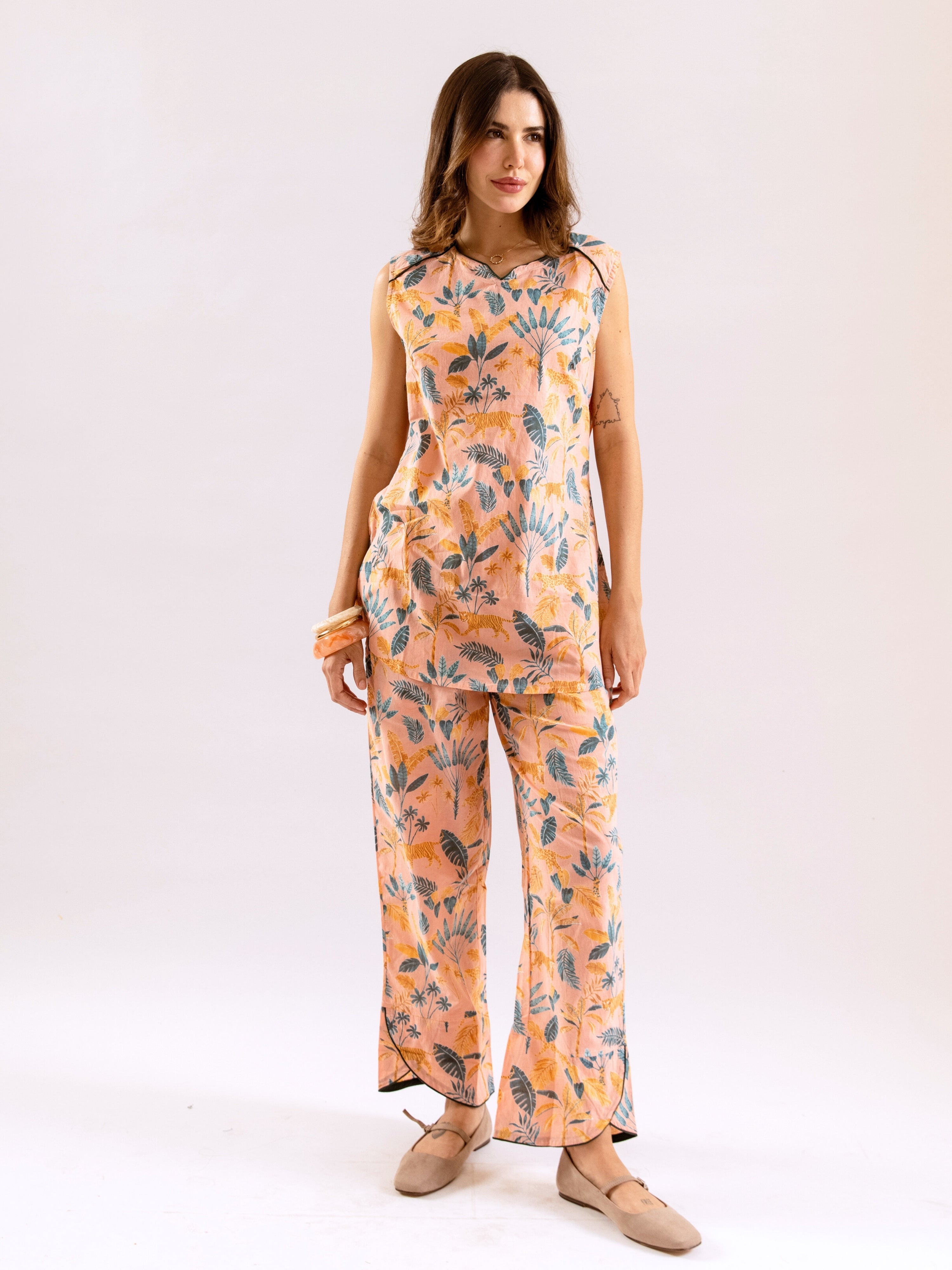 Tropical Apricot Peach Sleeveless Co-Ord Set