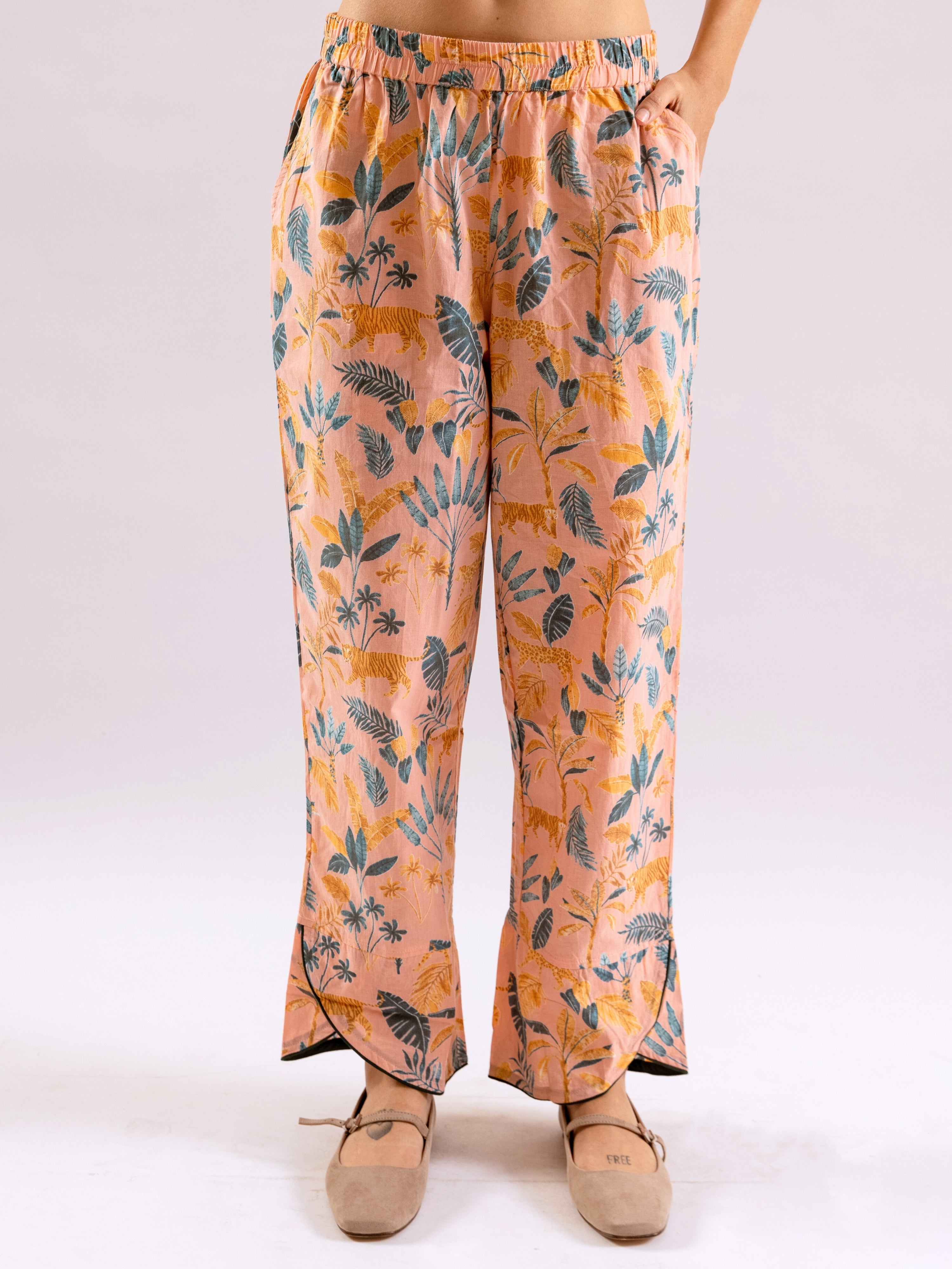 An ideal choice for your loungewear wardrobe, the Cotton Set comes in a soothing color palette. The hand-block-printed pattern of the breezy Cotton top complements the matching Pants perfectly.