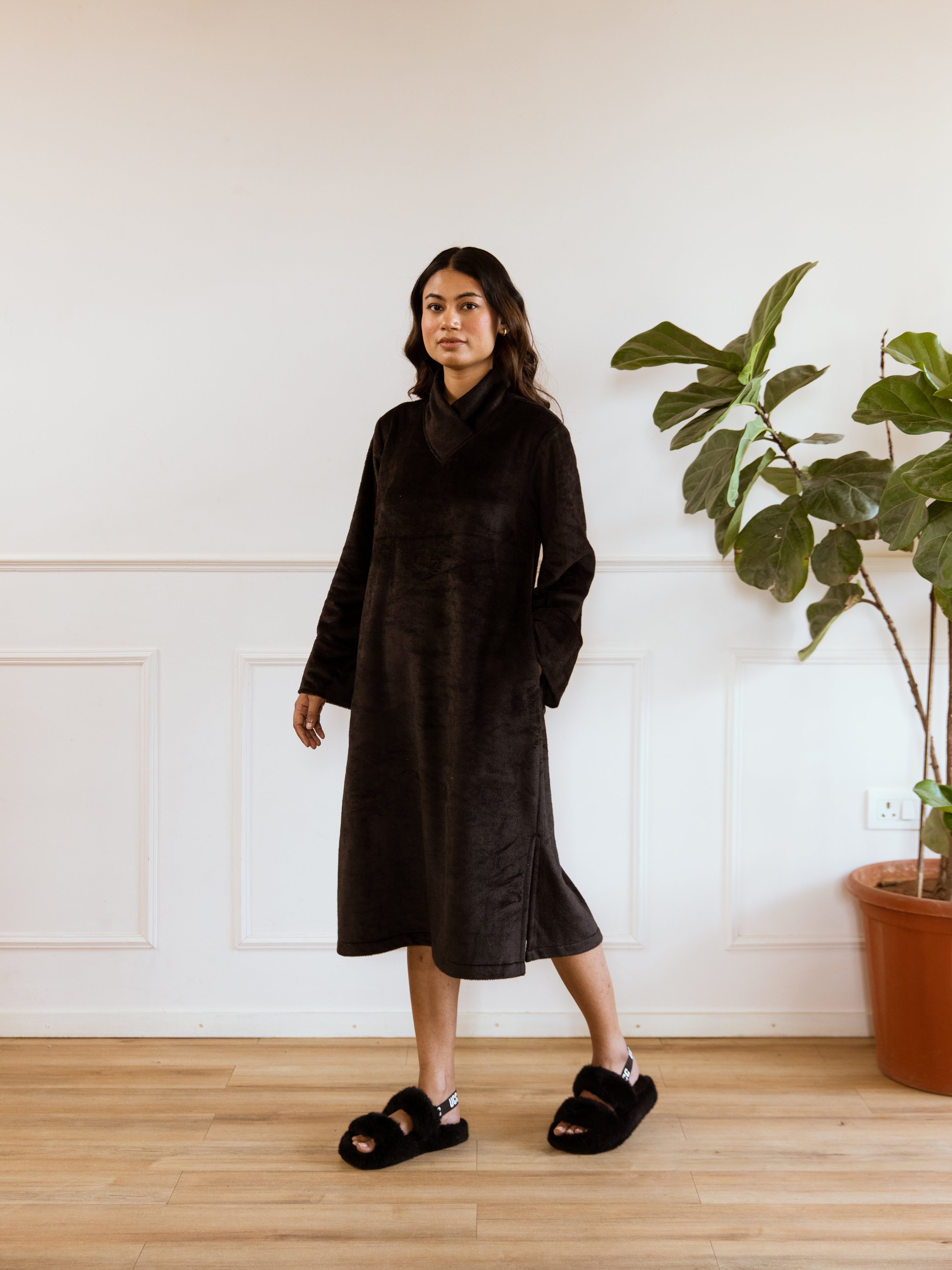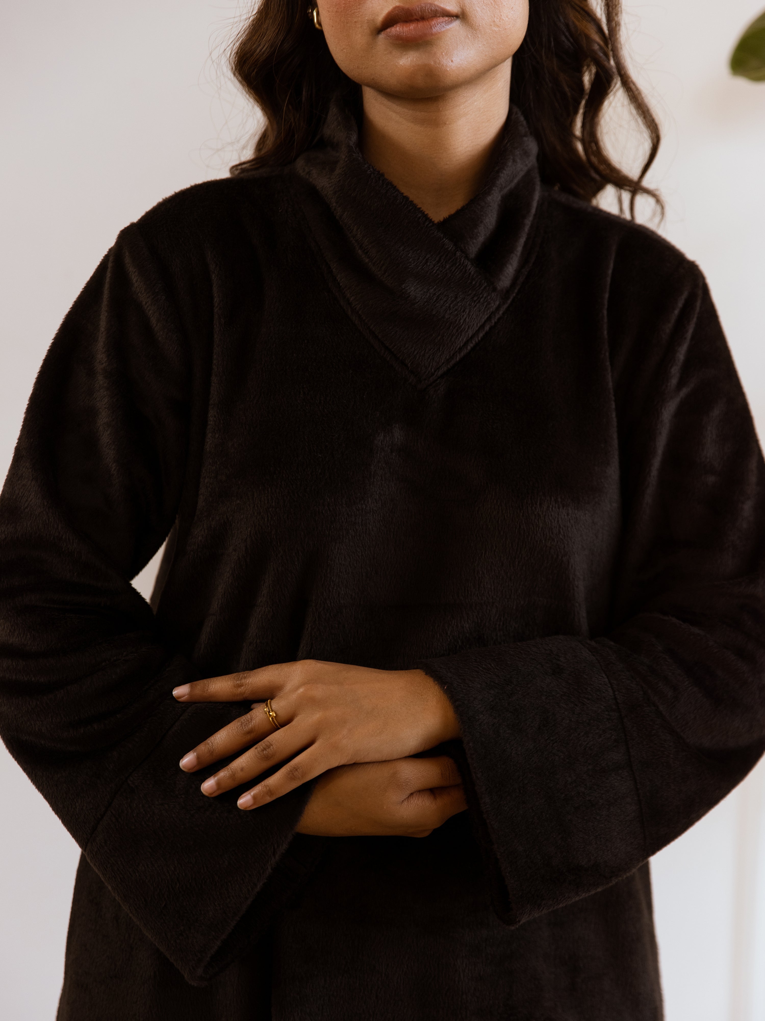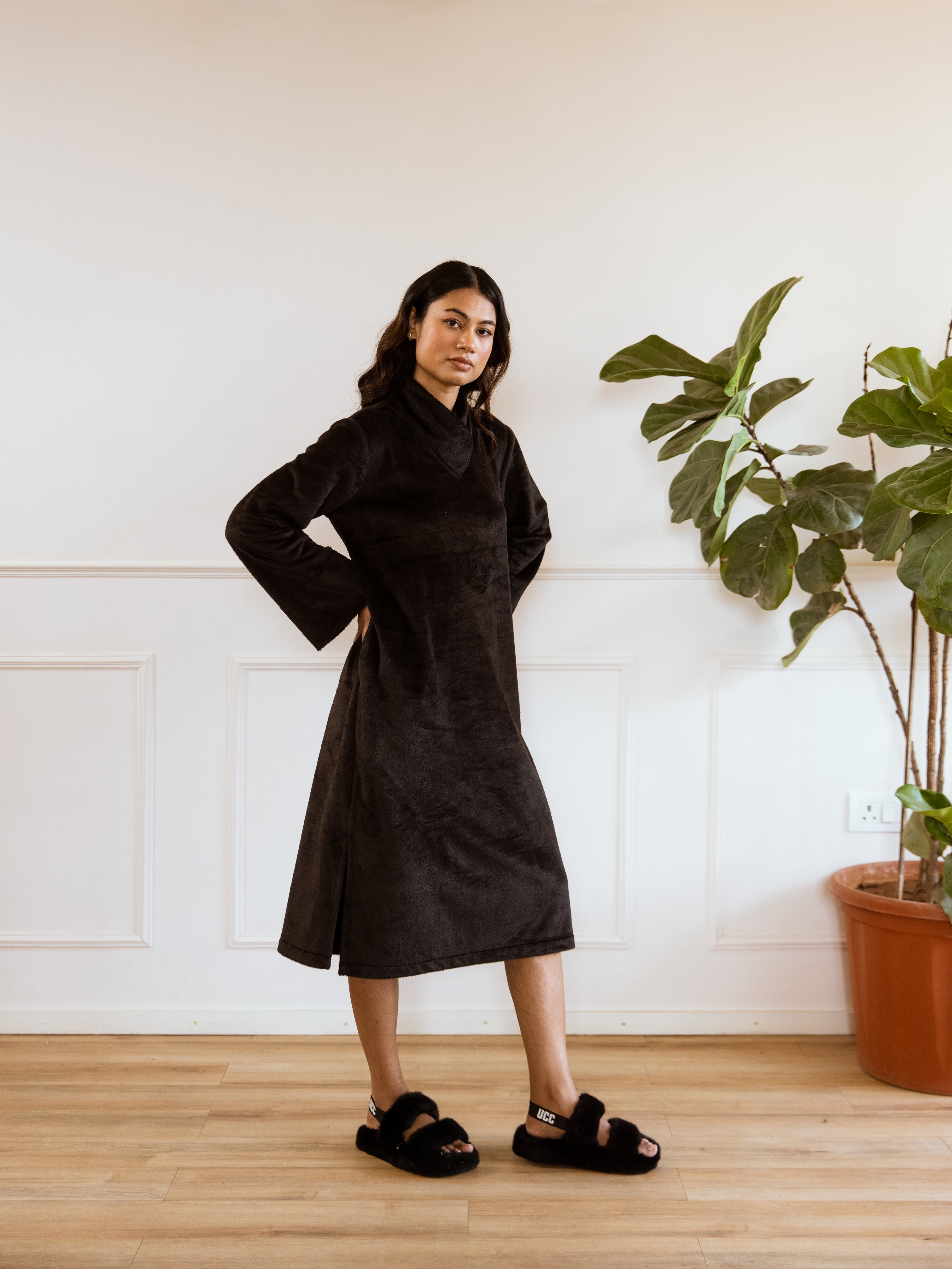 Unleash your inner fashionista with our Super Soft Black Woollen Cross Neck Midi Dress. Made with ultra-soft material, this dress will keep you warm and stylish. The cross neck detail adds a touch of elegance to any outfit. Perfect for any occasion, this dress will have you looking effortlessly chic!