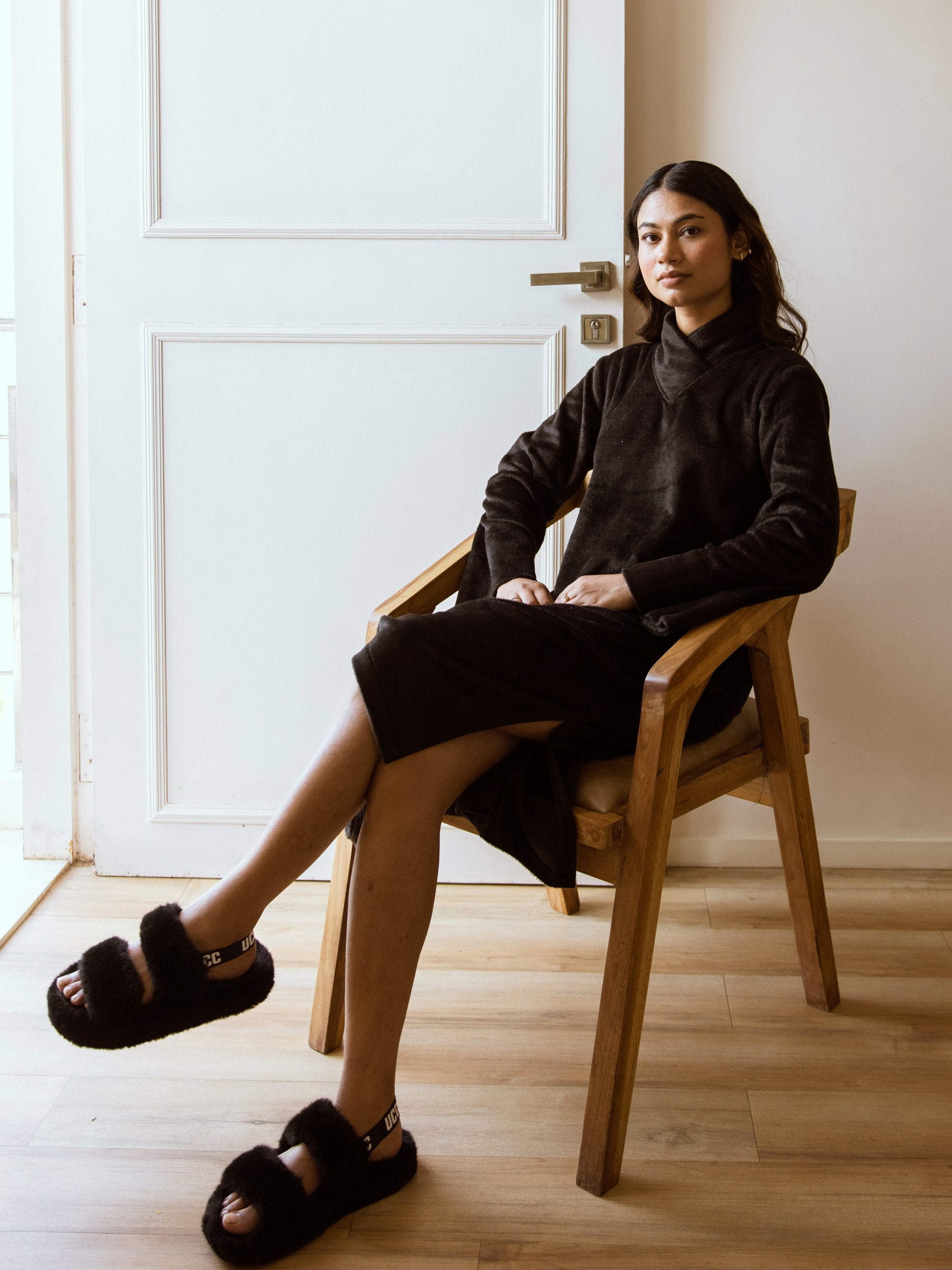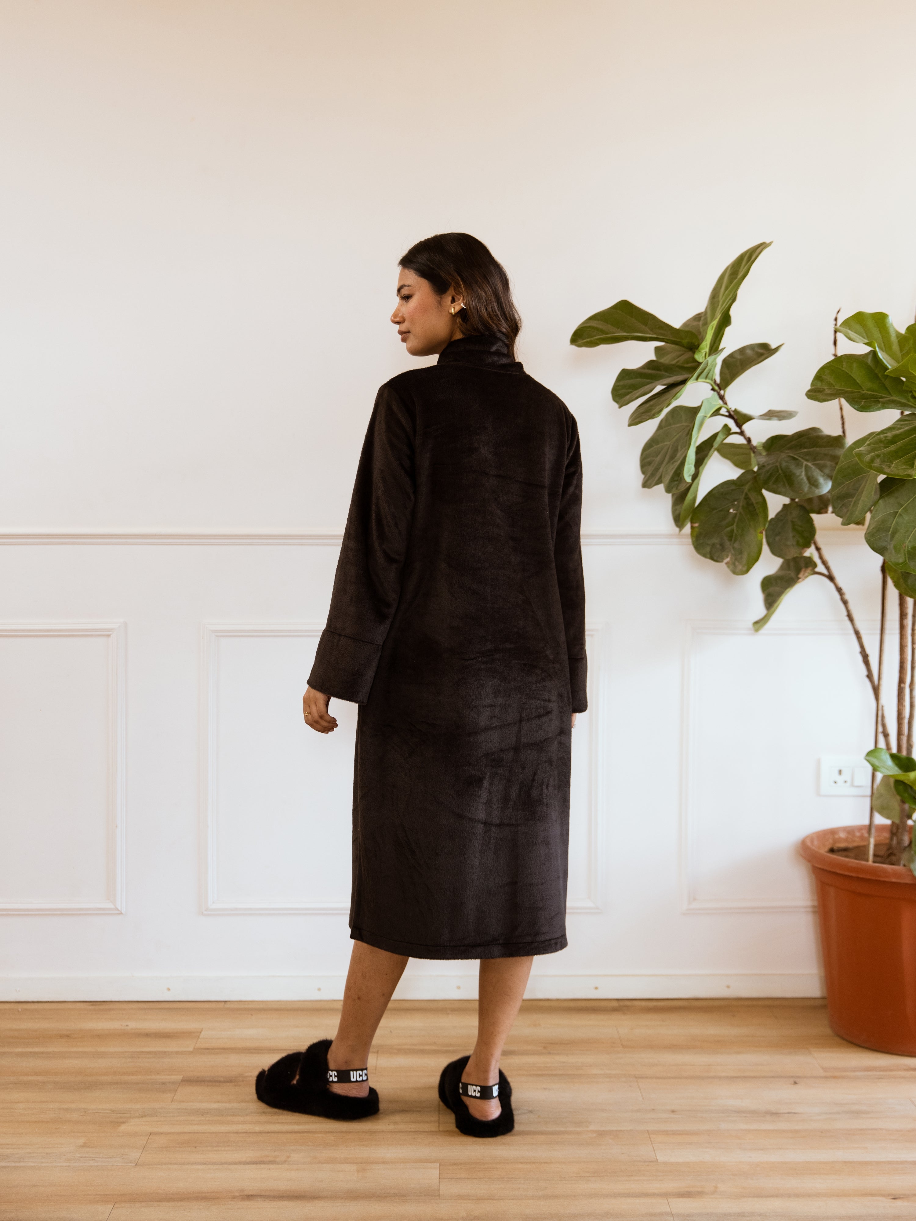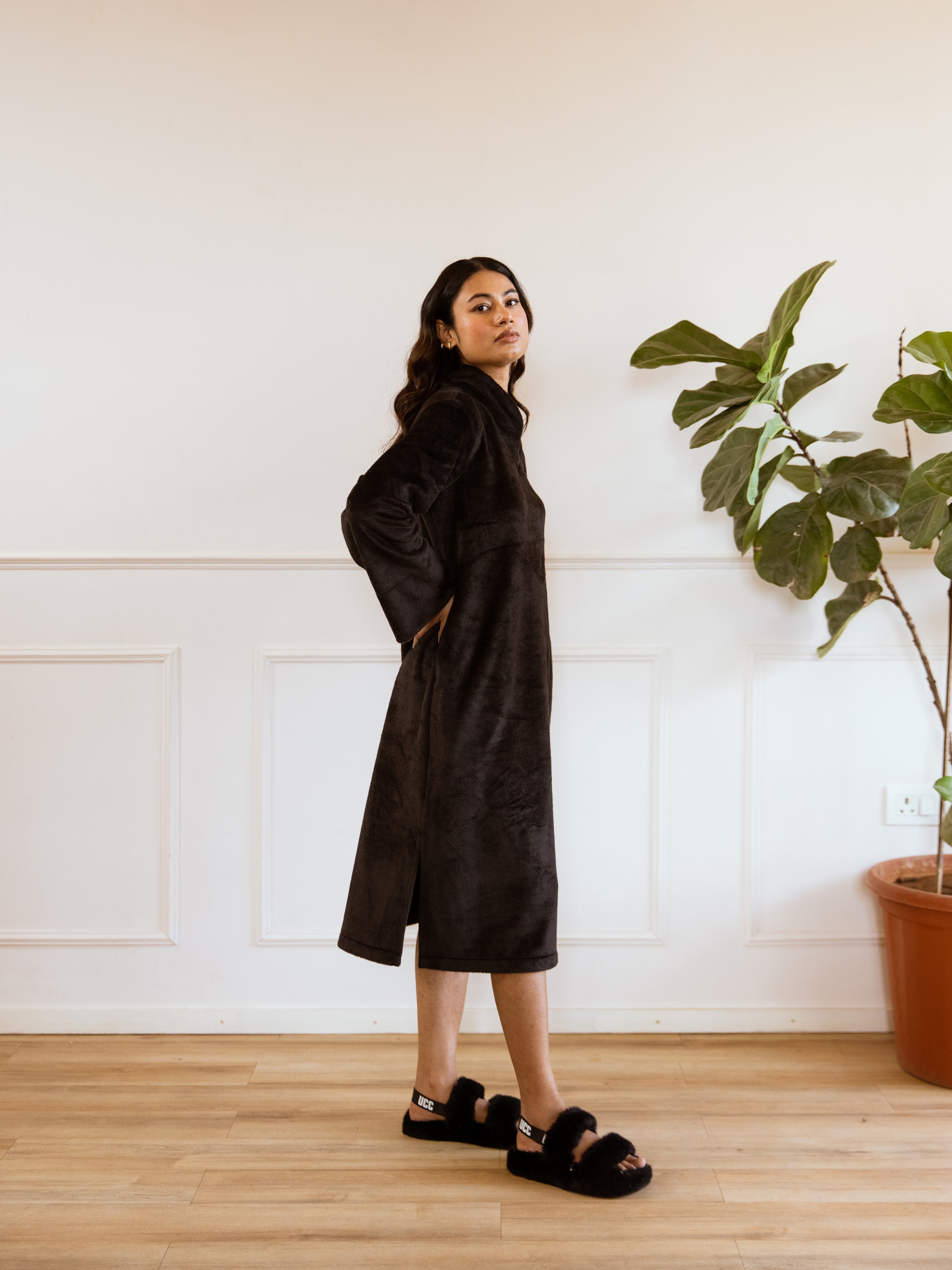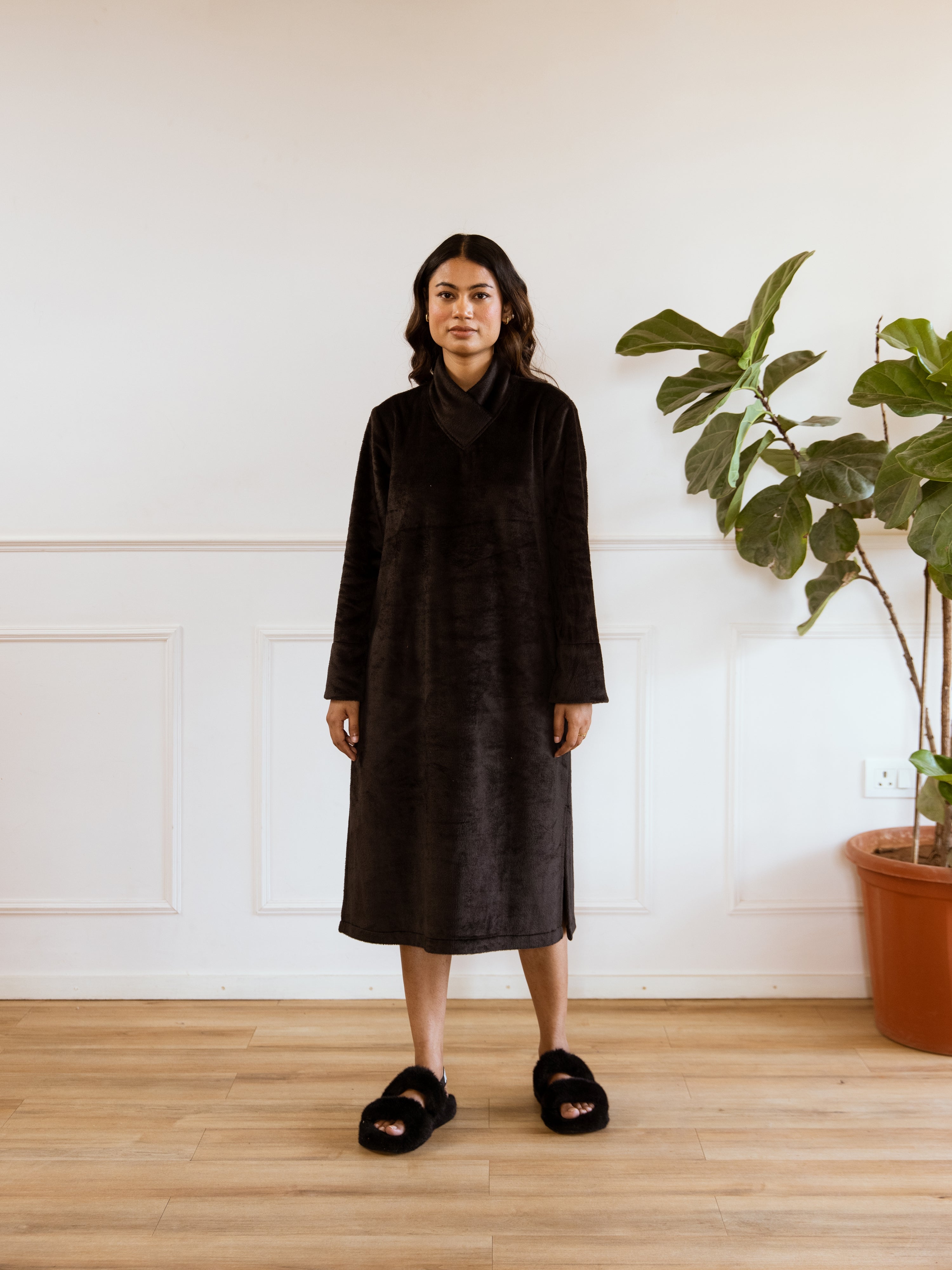 Unleash your inner fashionista with our Super Soft Black Woollen Cross Neck Midi Dress. Made with ultra-soft material, this dress will keep you warm and stylish. The cross neck detail adds a touch of elegance to any outfit. Perfect for any occasion, this dress will have you looking effortlessly chic!