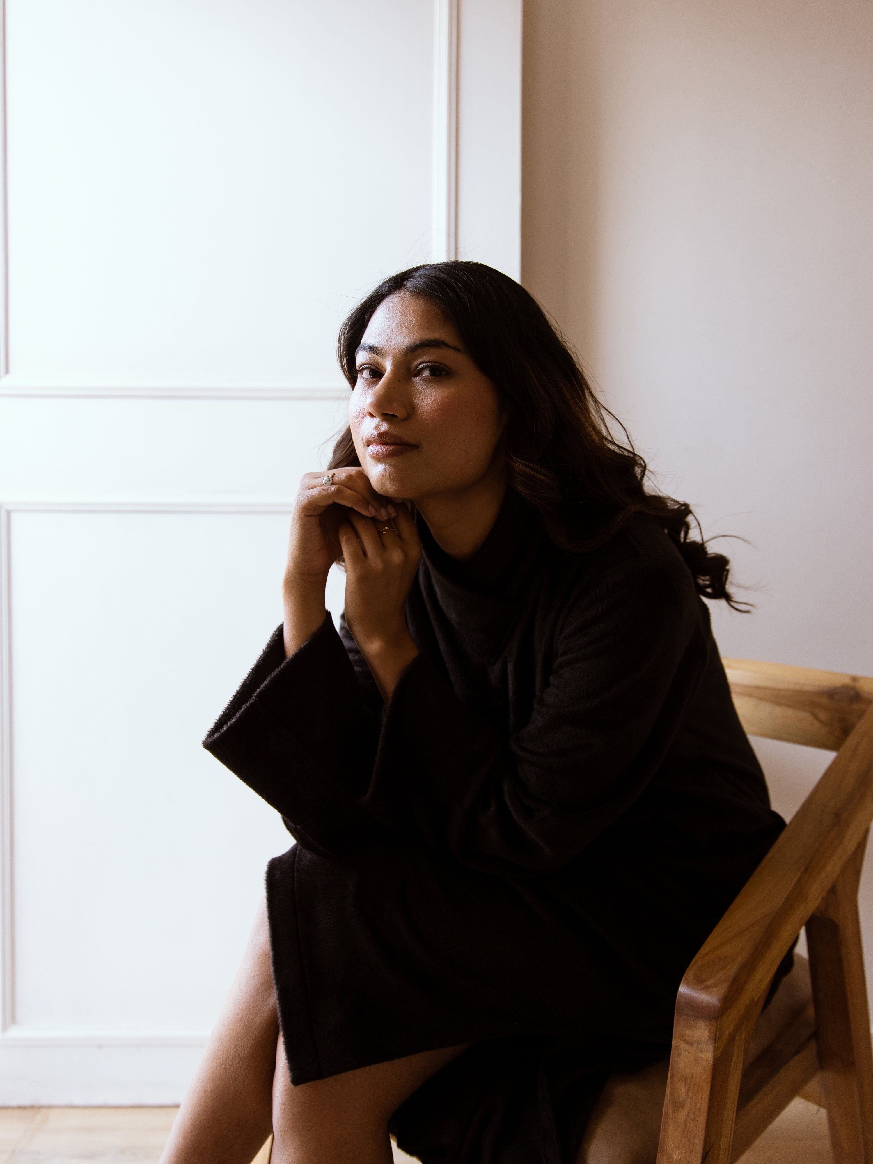 Super Soft Black Woollen Cross Neck Midi Dress