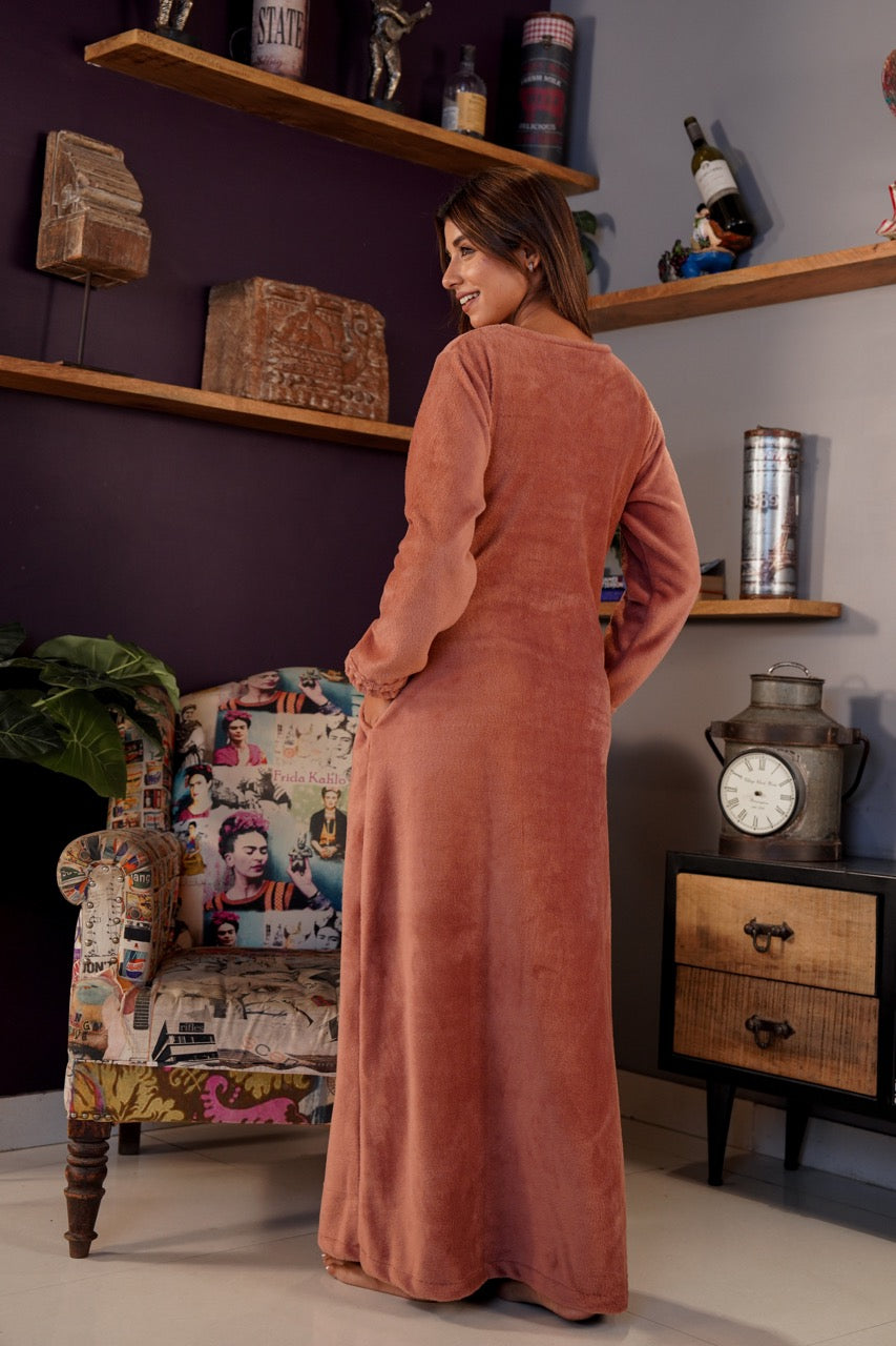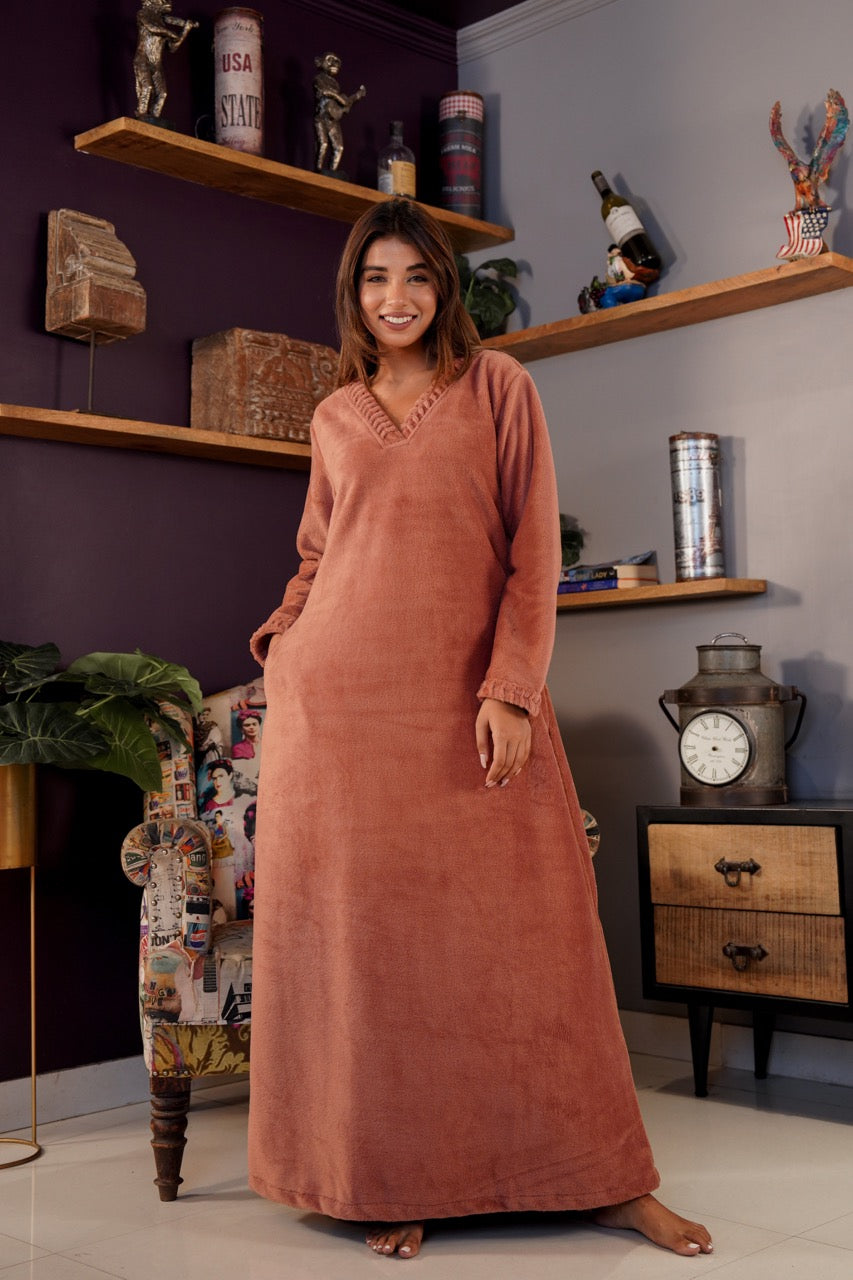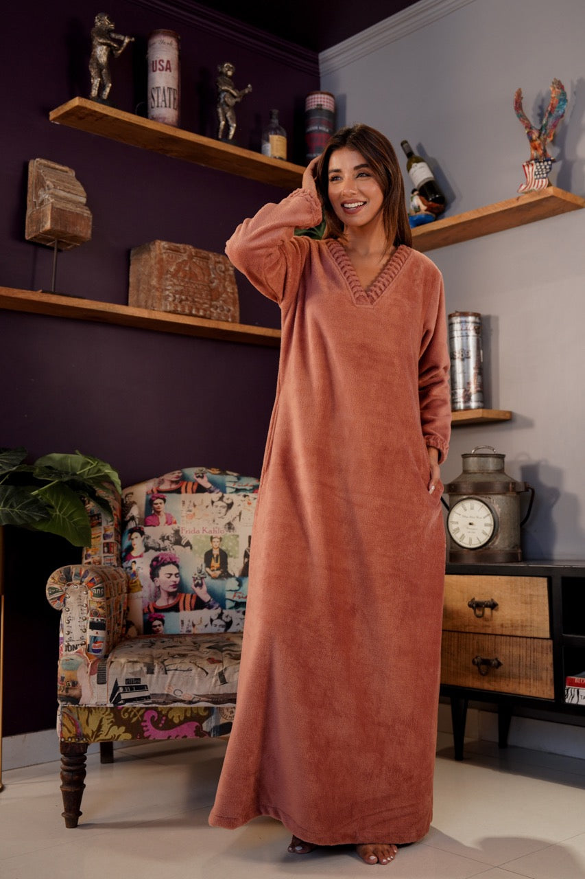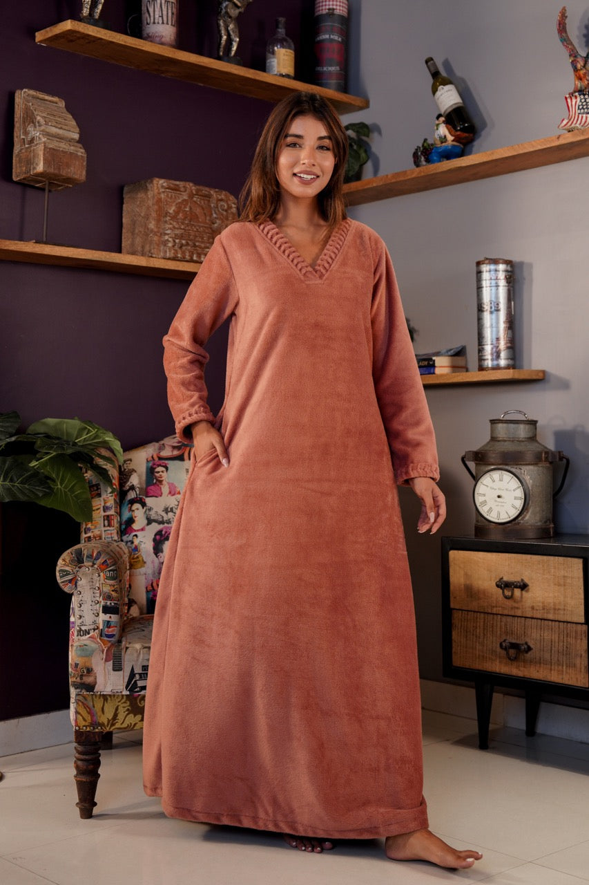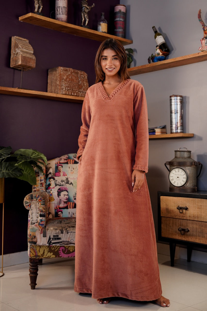 Super Soft Dusty Pink V Neck Woollen Maxi