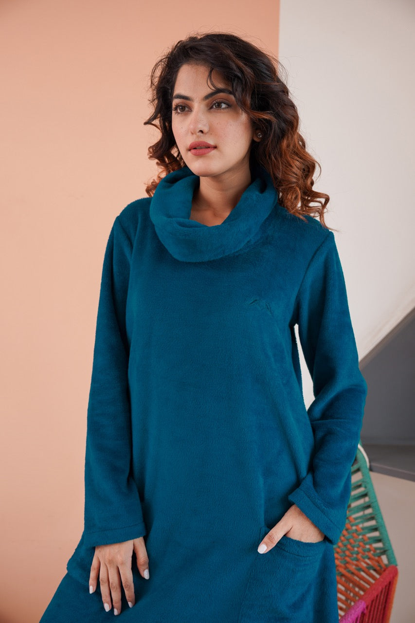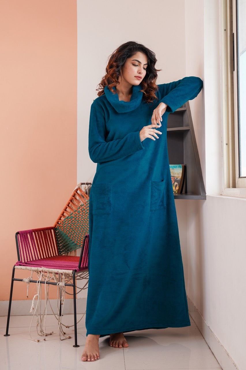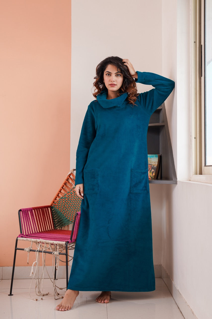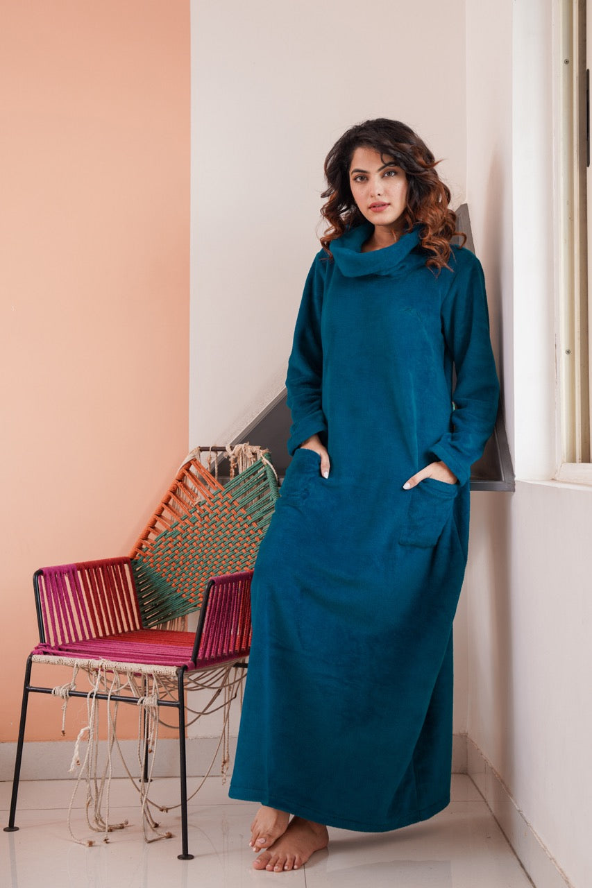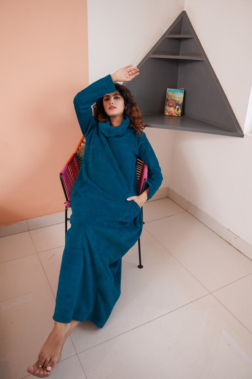Super Soft Teal High Neck Woollen Maxi