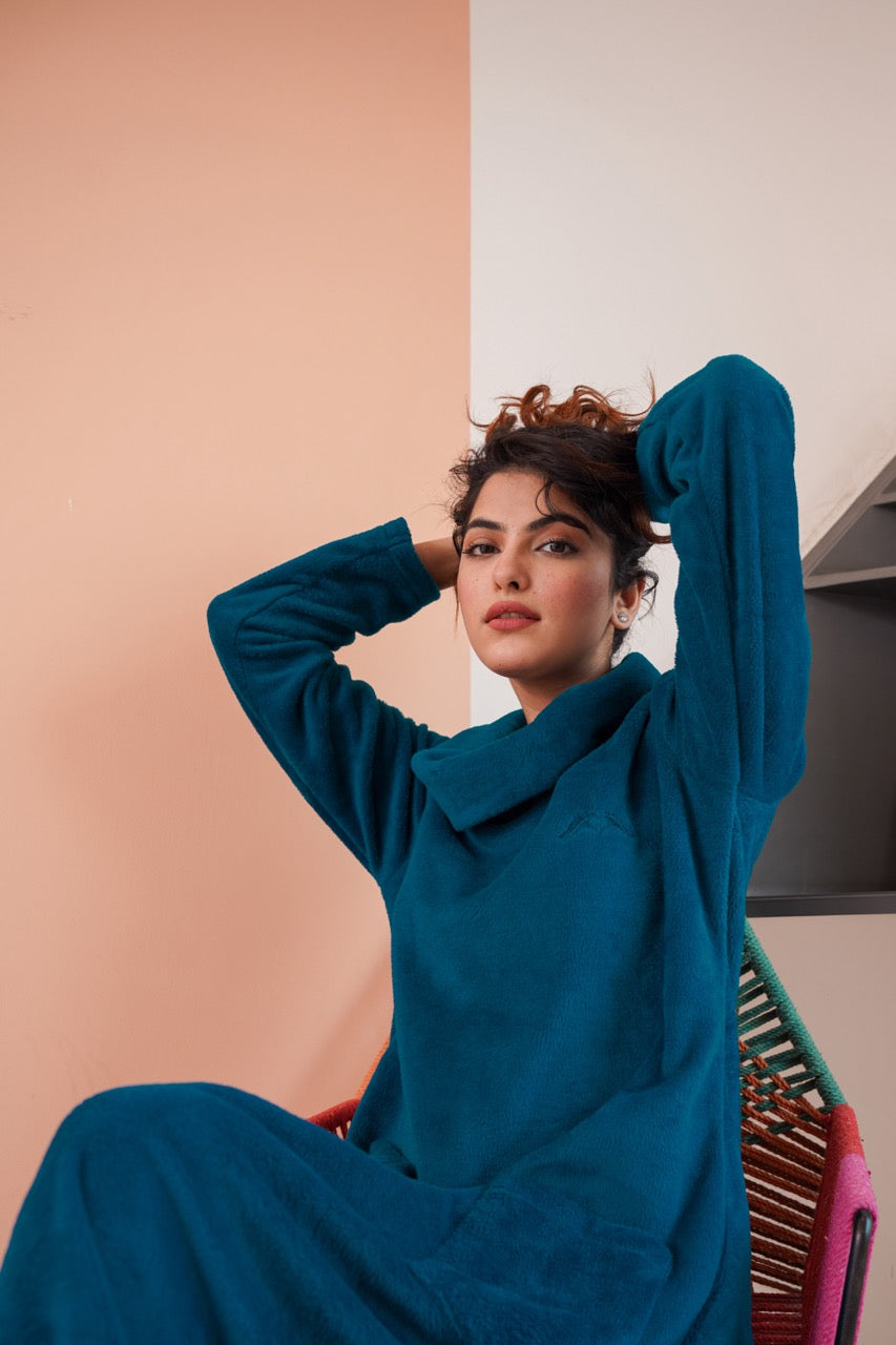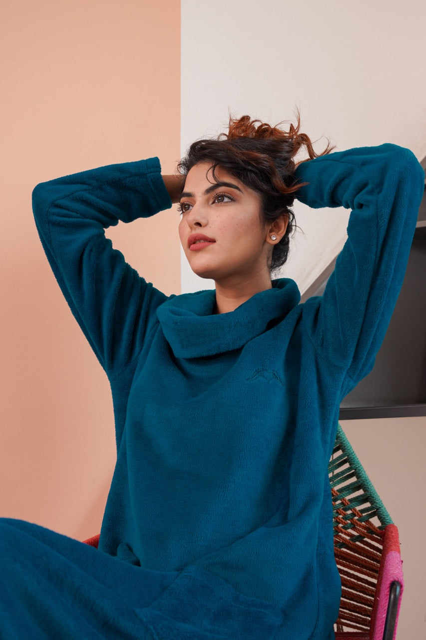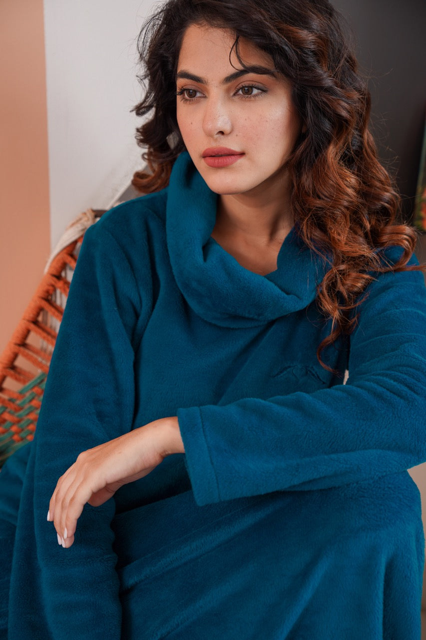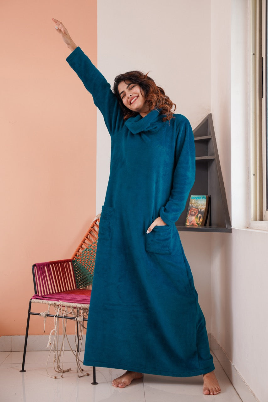 Super Soft Teal High Neck Woollen Maxi