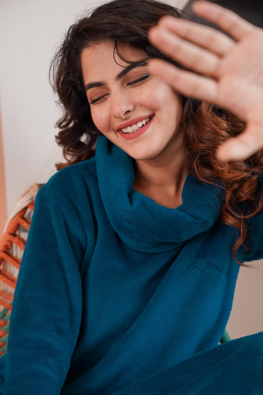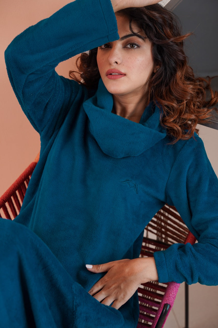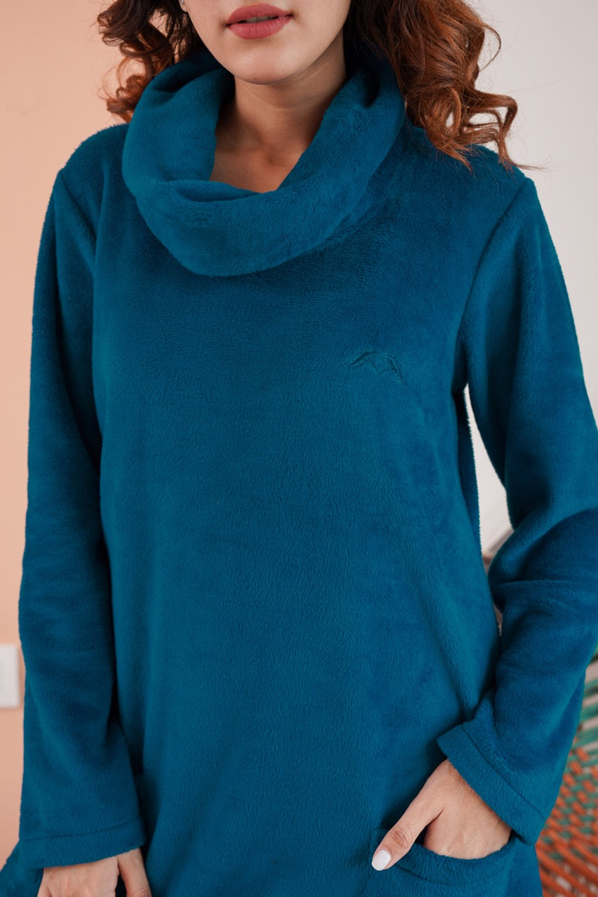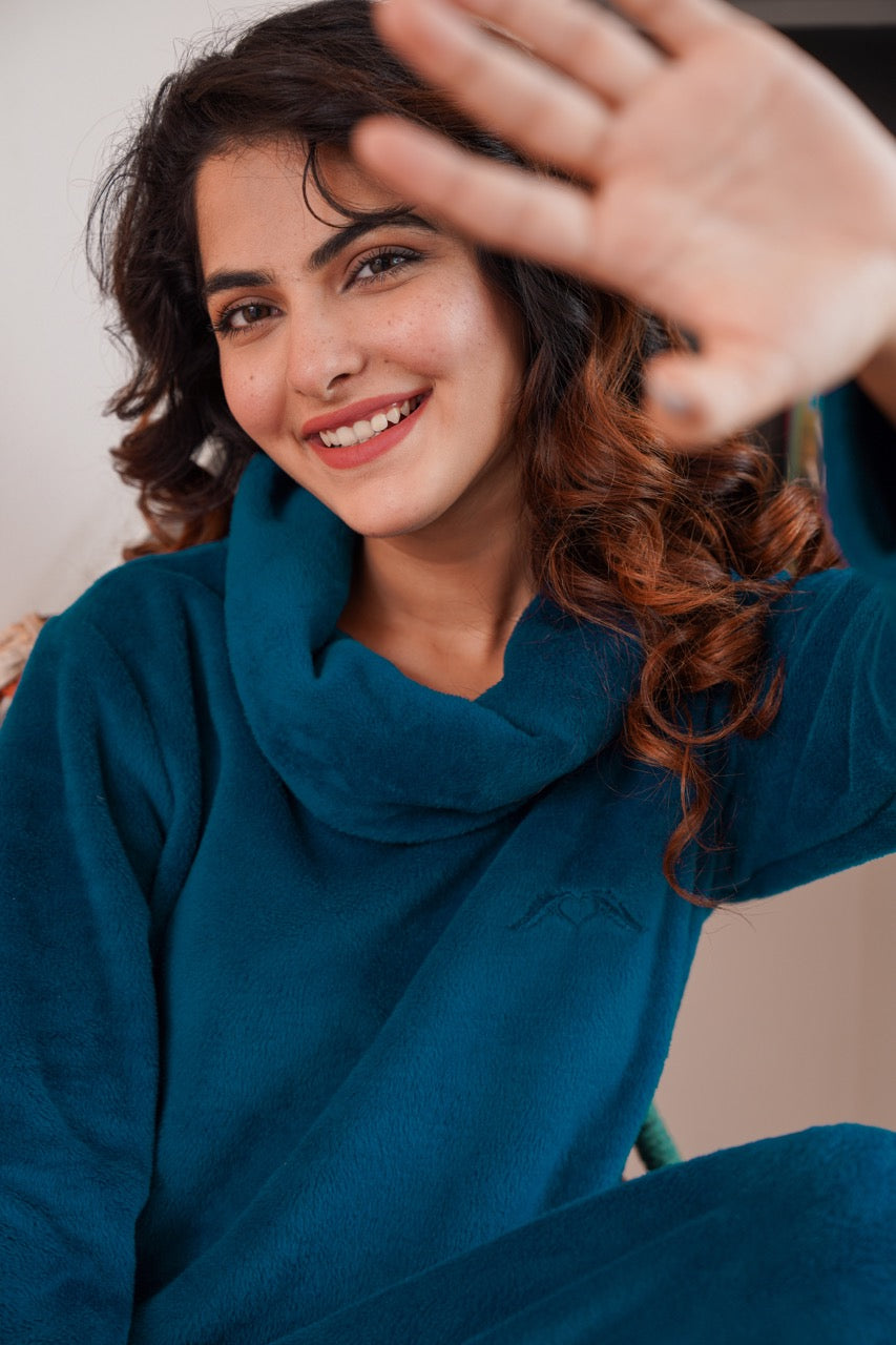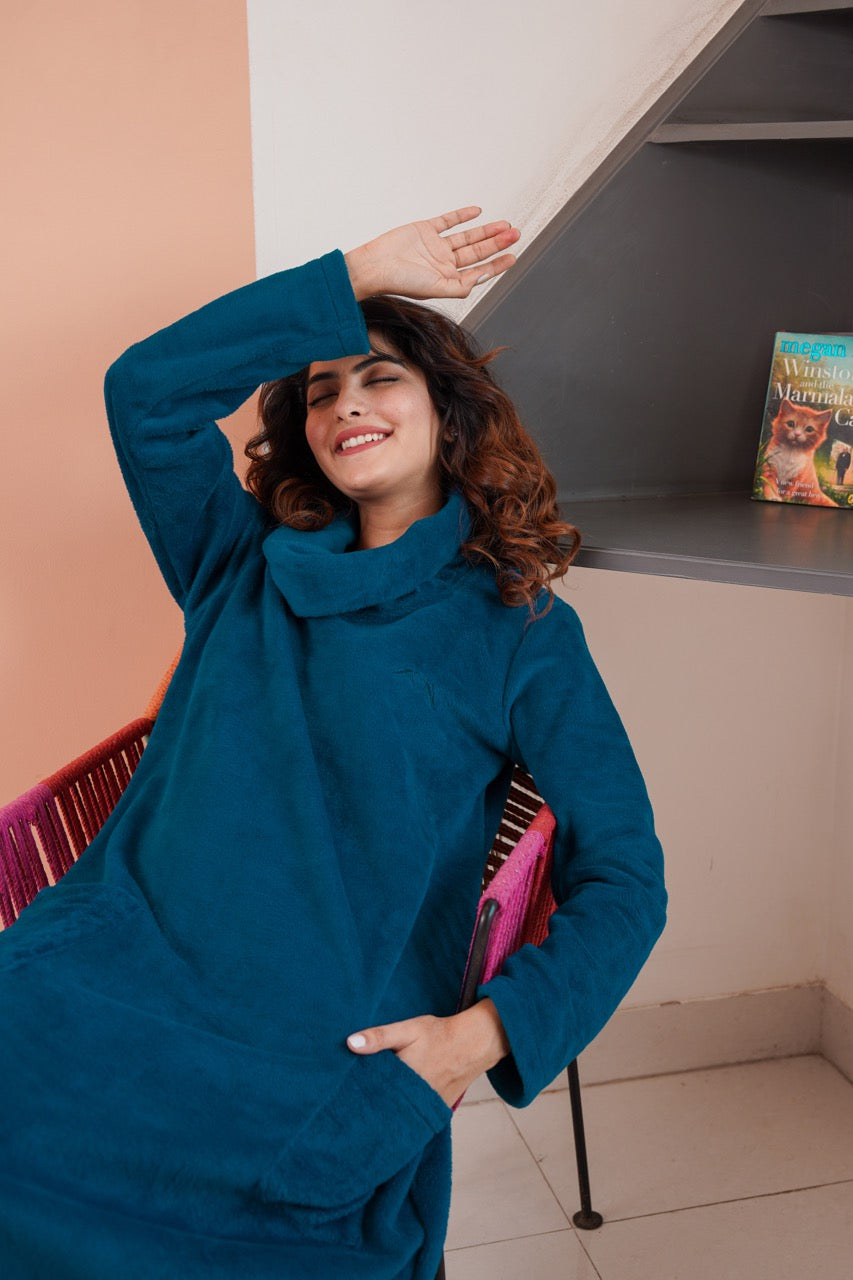 Super Soft Teal High Neck Woollen Maxi