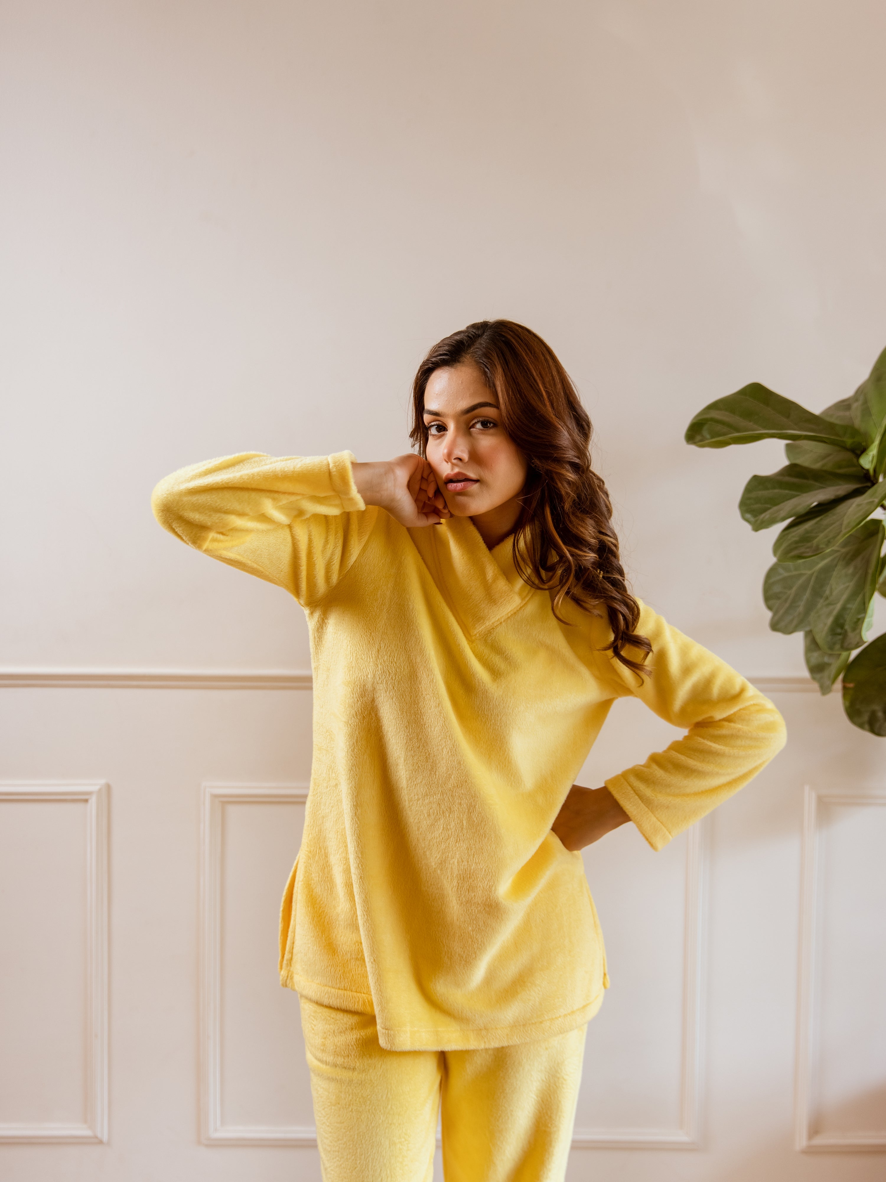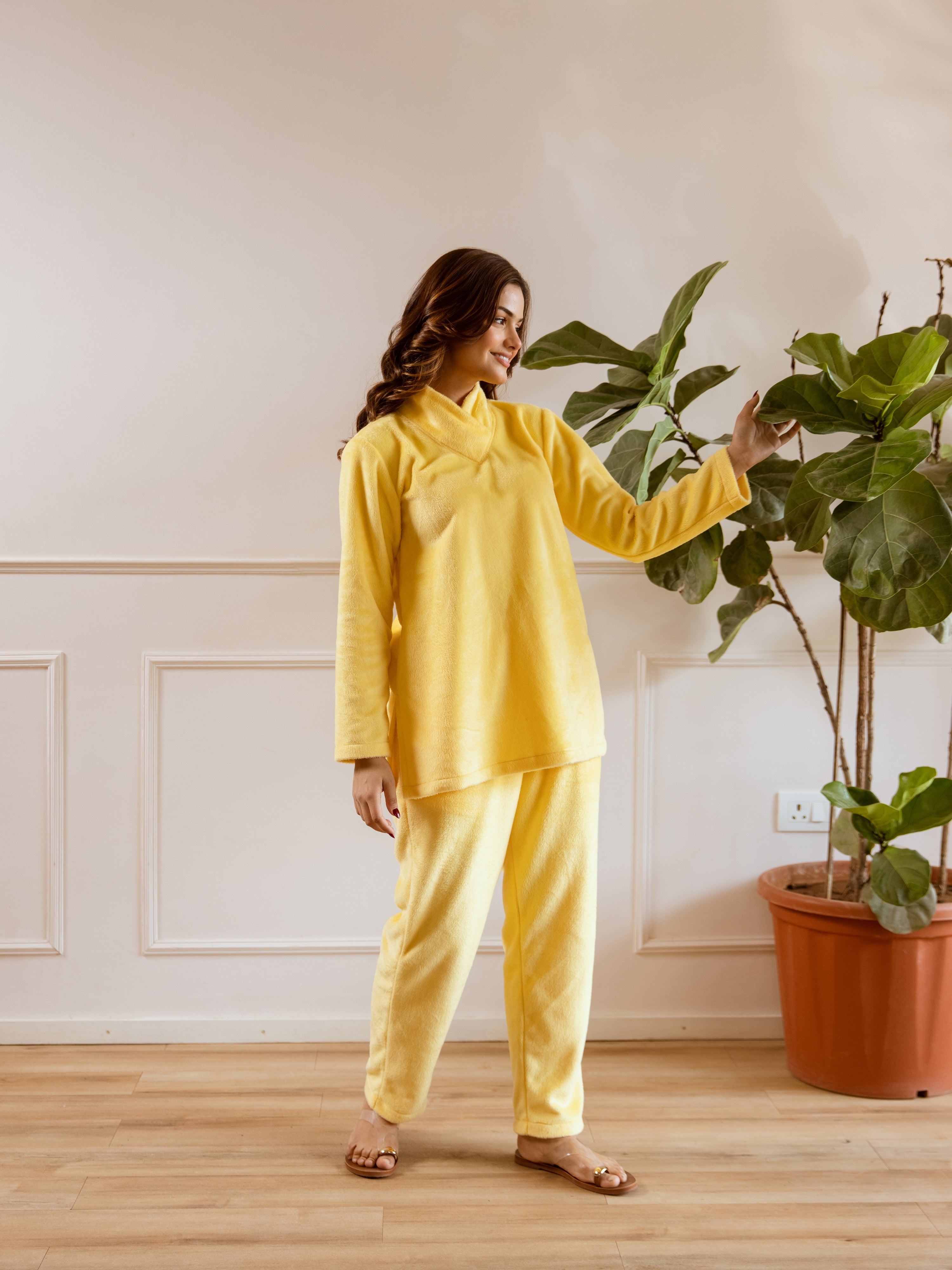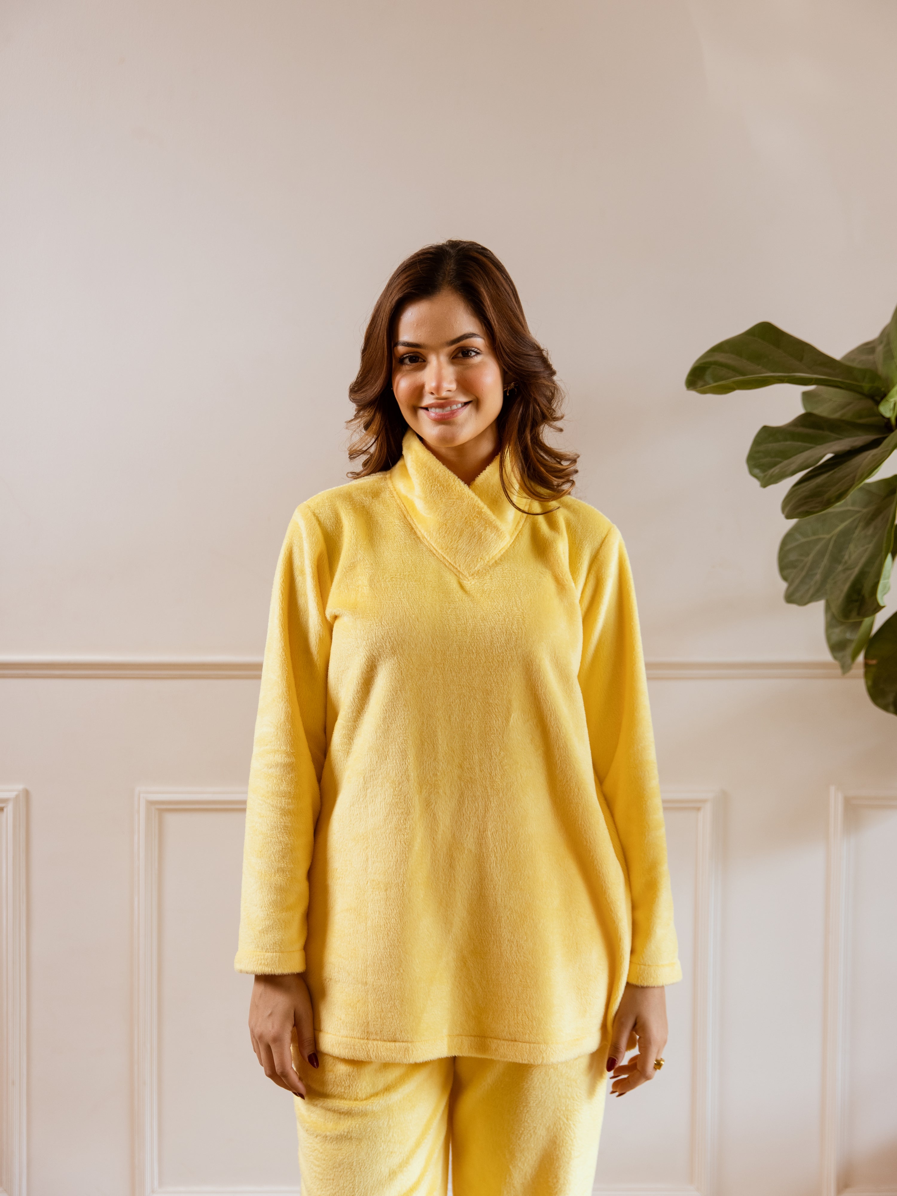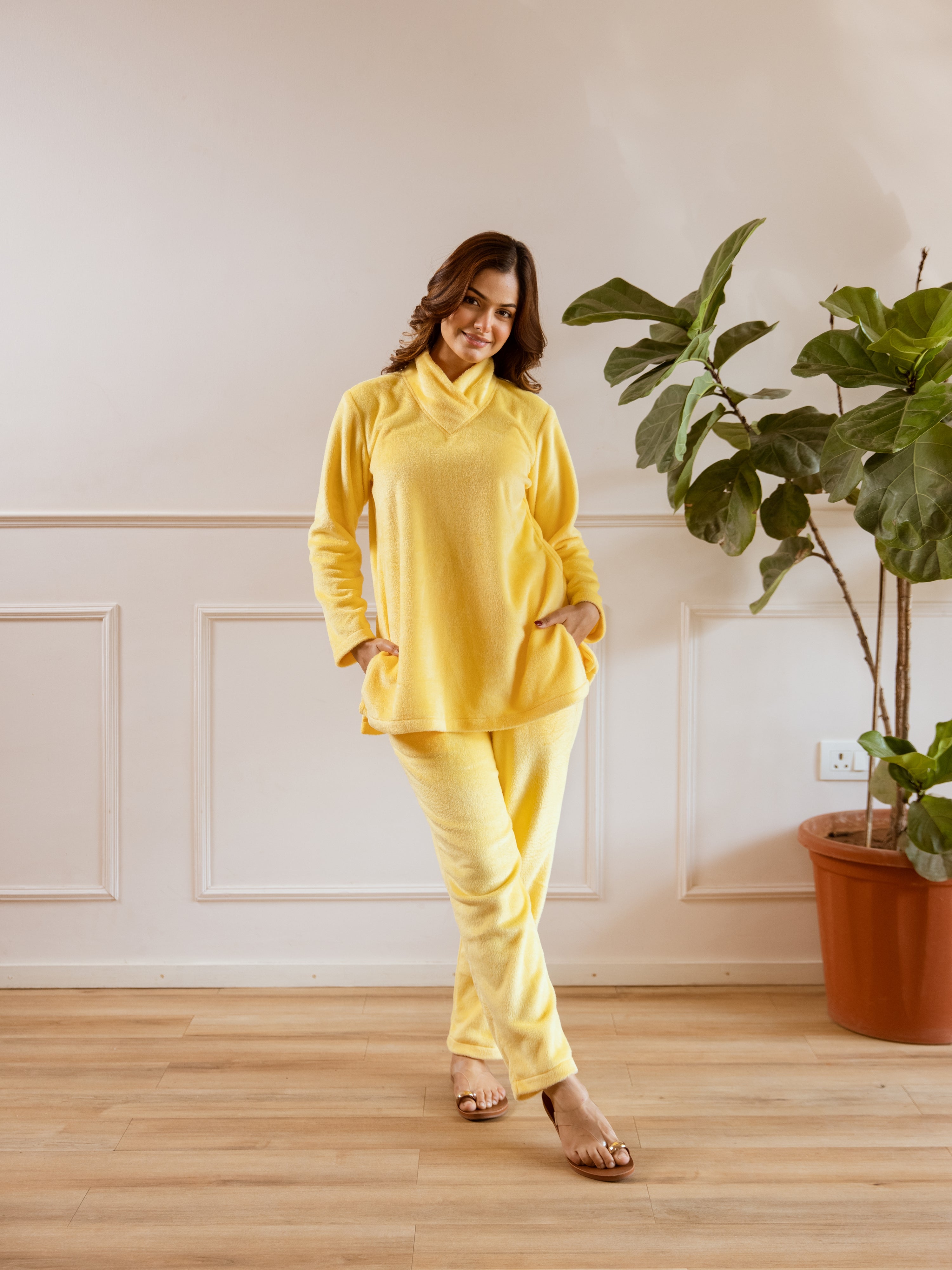 Cross Neck Super Soft Yellow Woollen Set