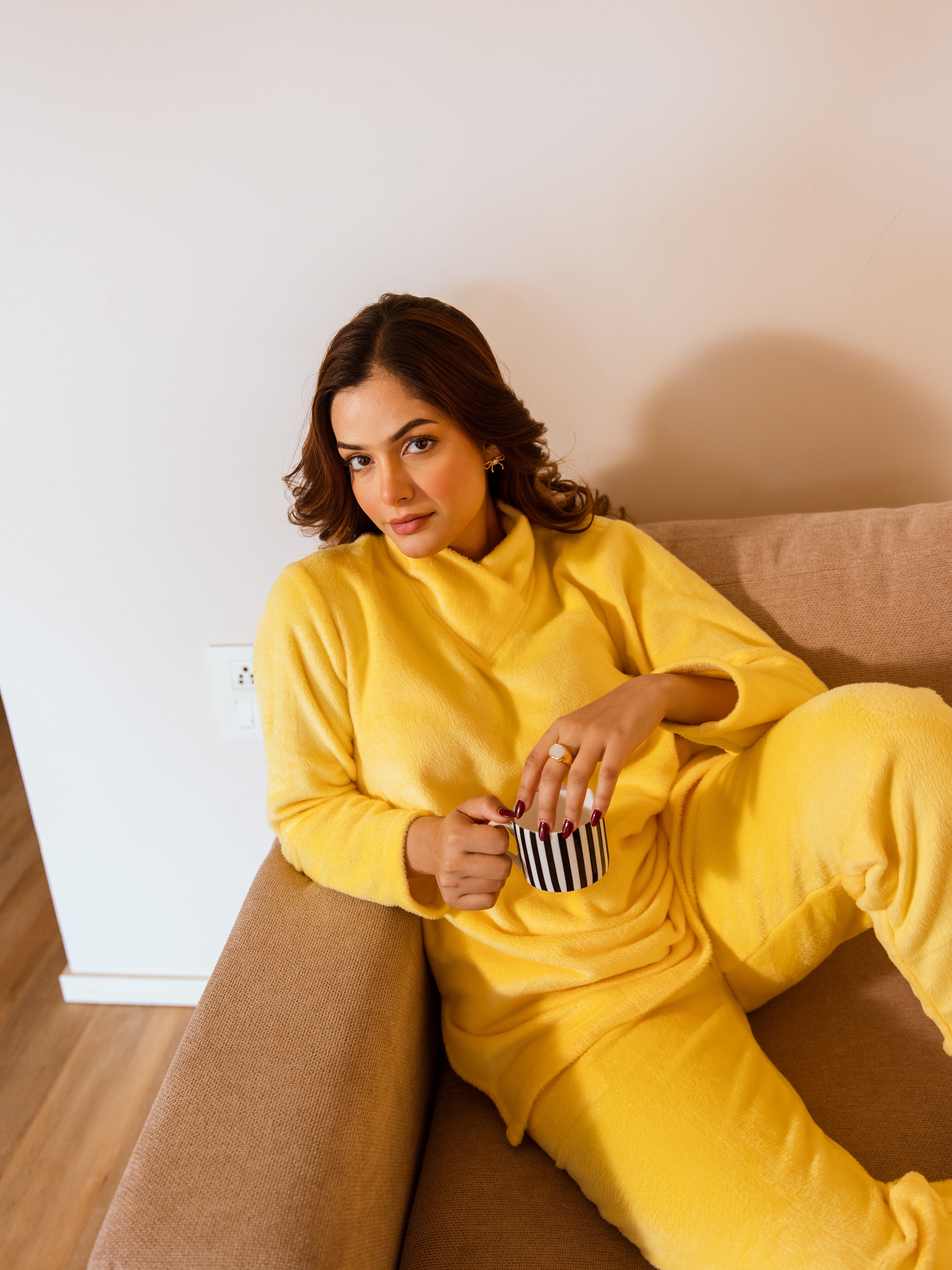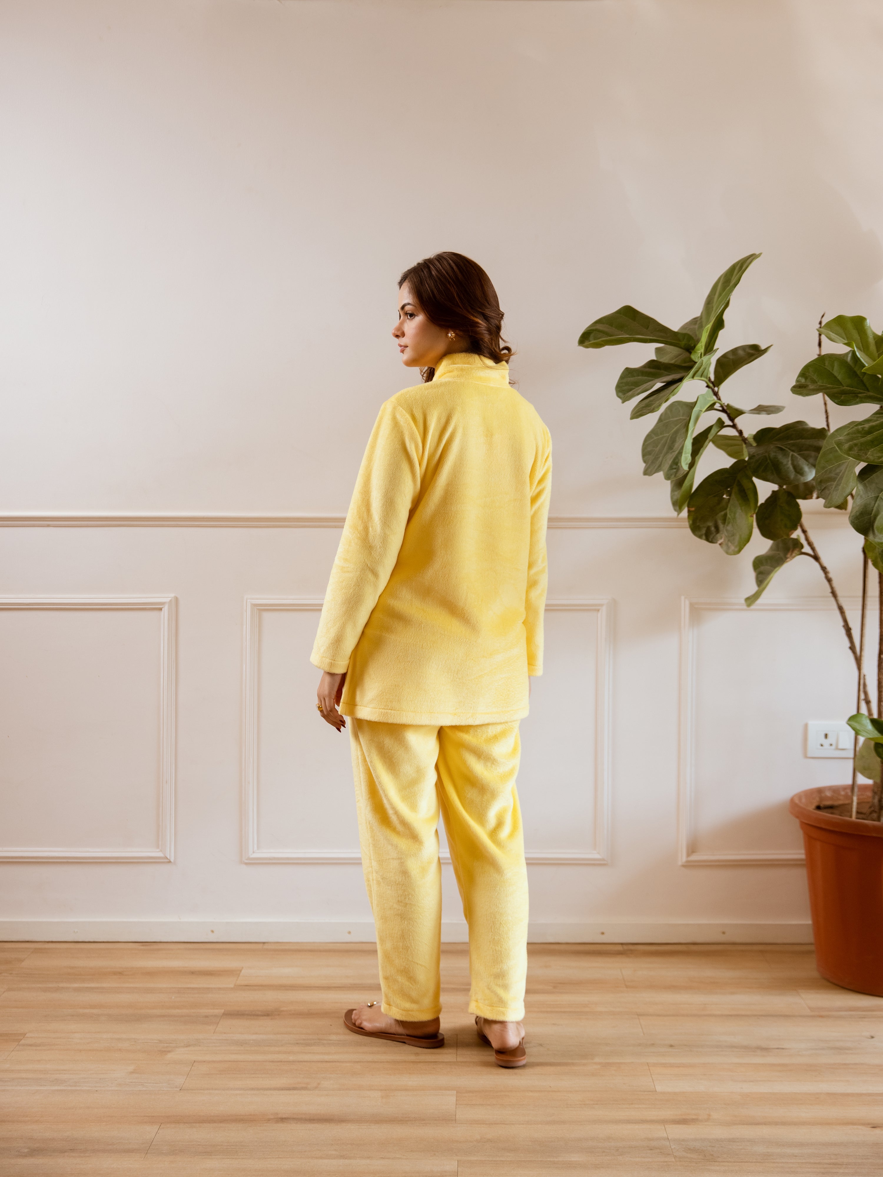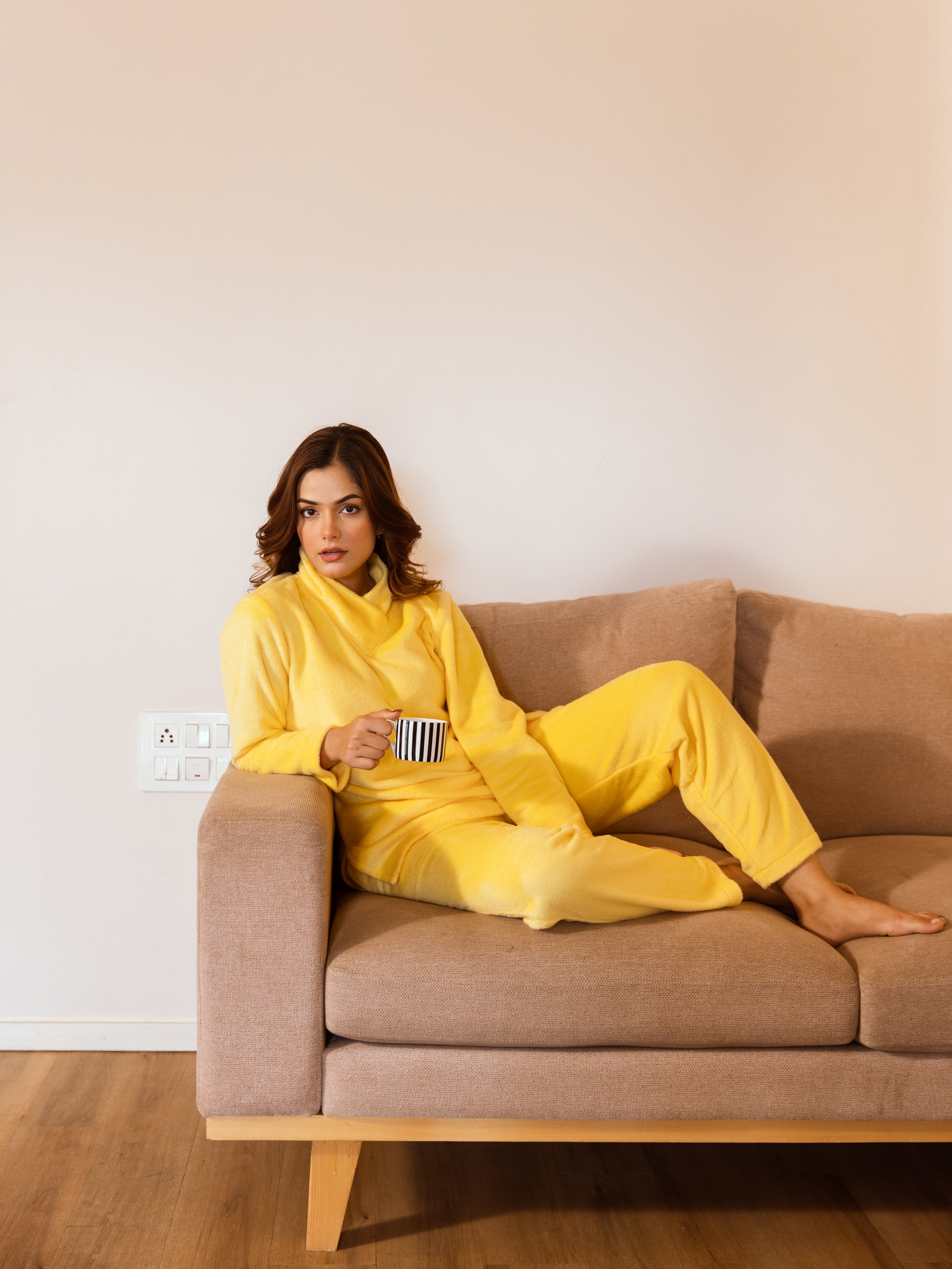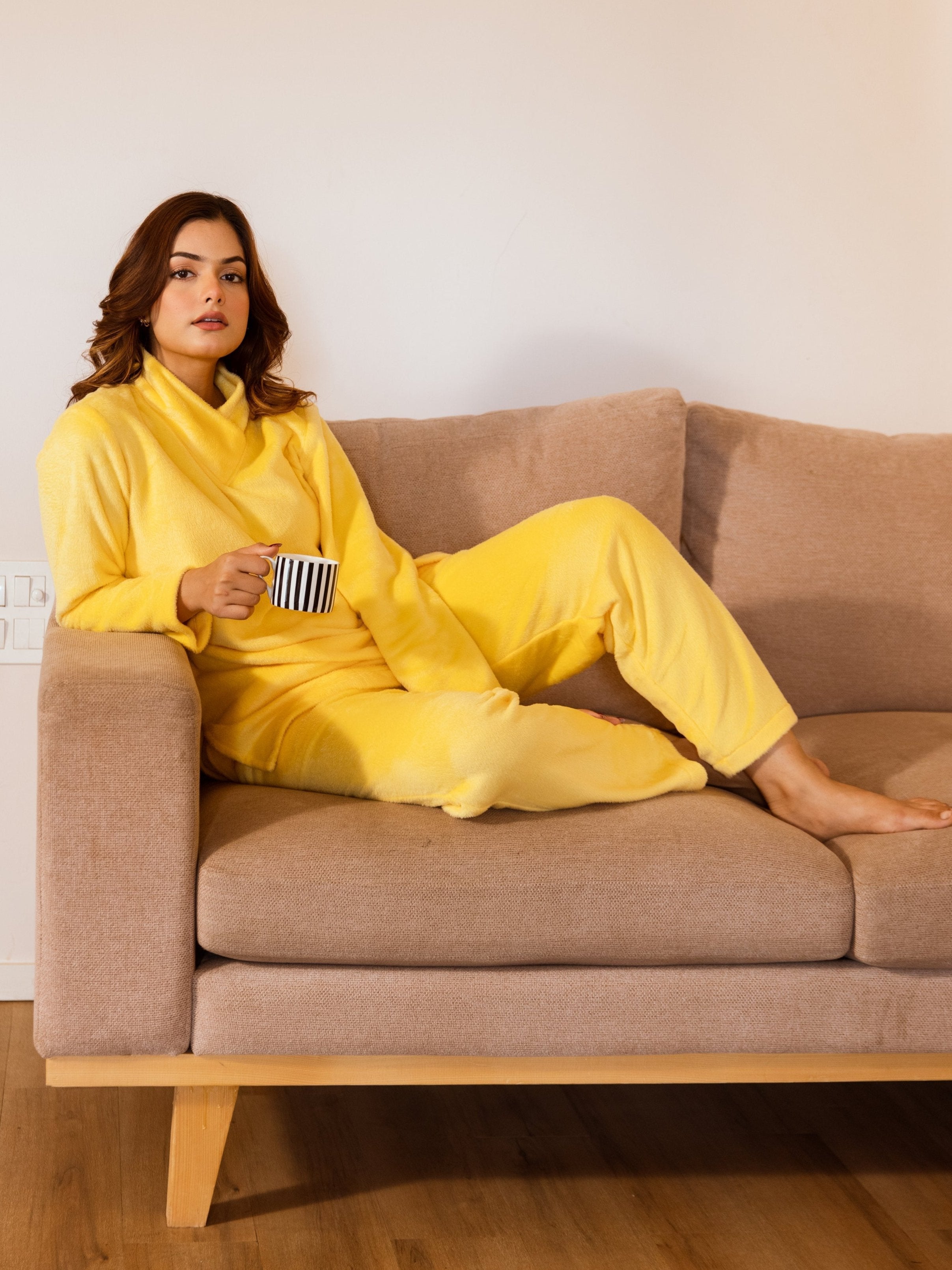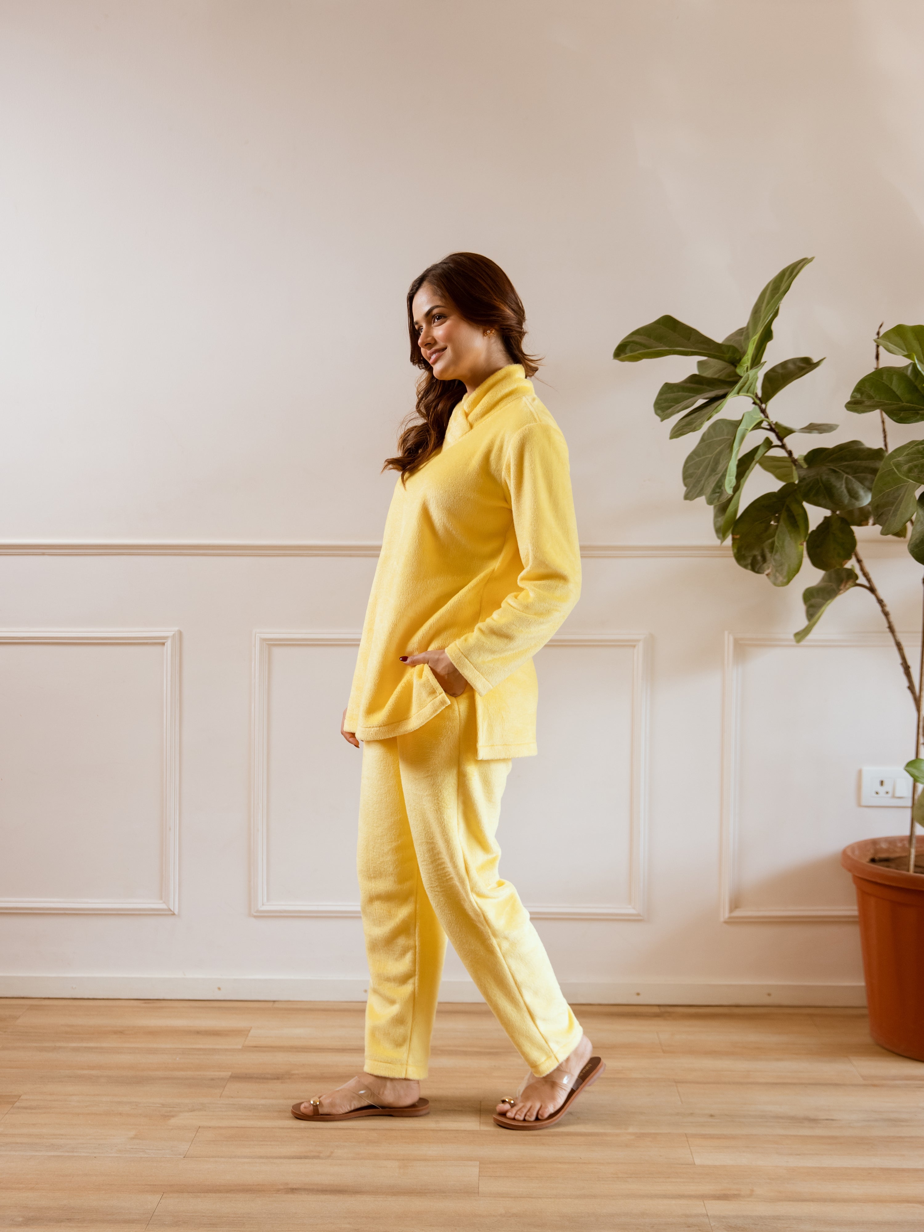 Cross Neck Super Soft Yellow Woollen Set