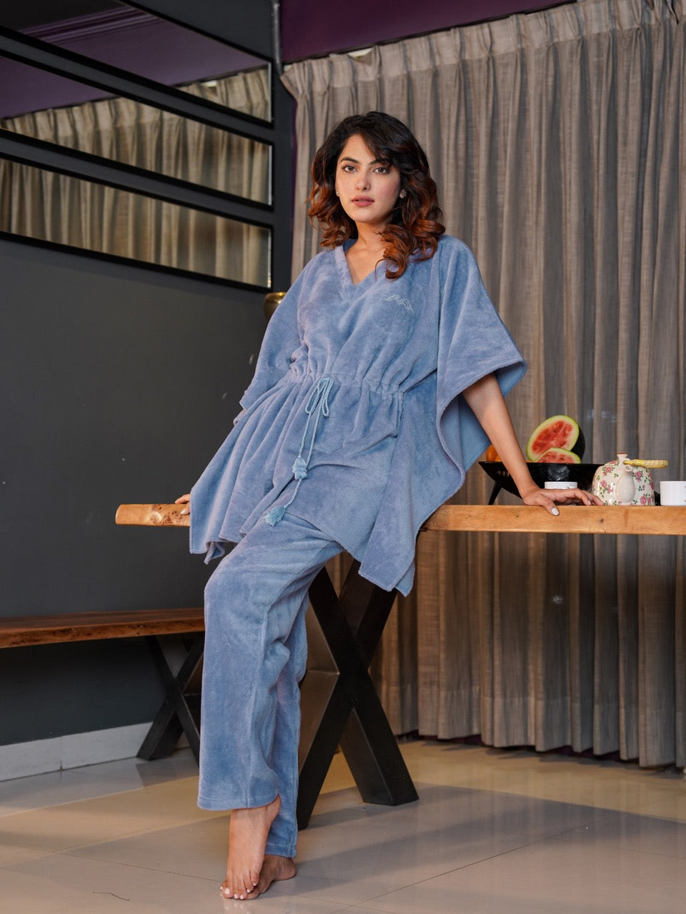 Light Blue Super Soft Woollen Kaftan Set
